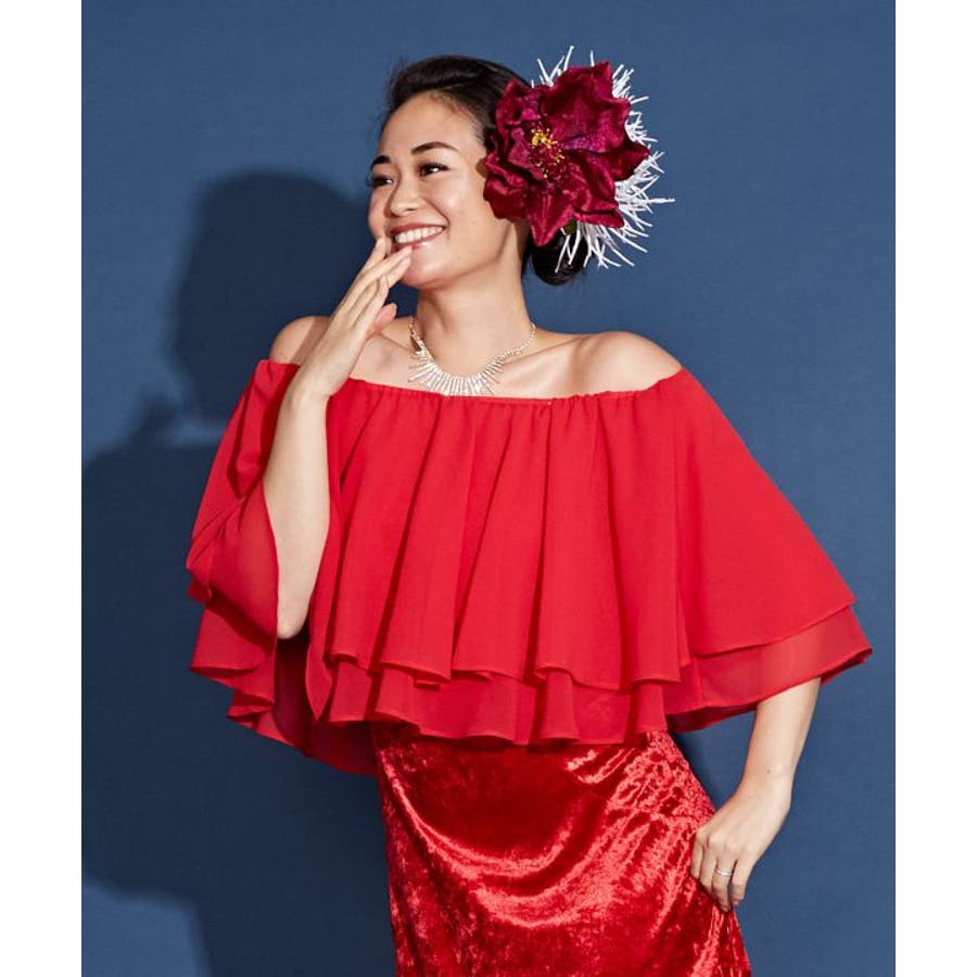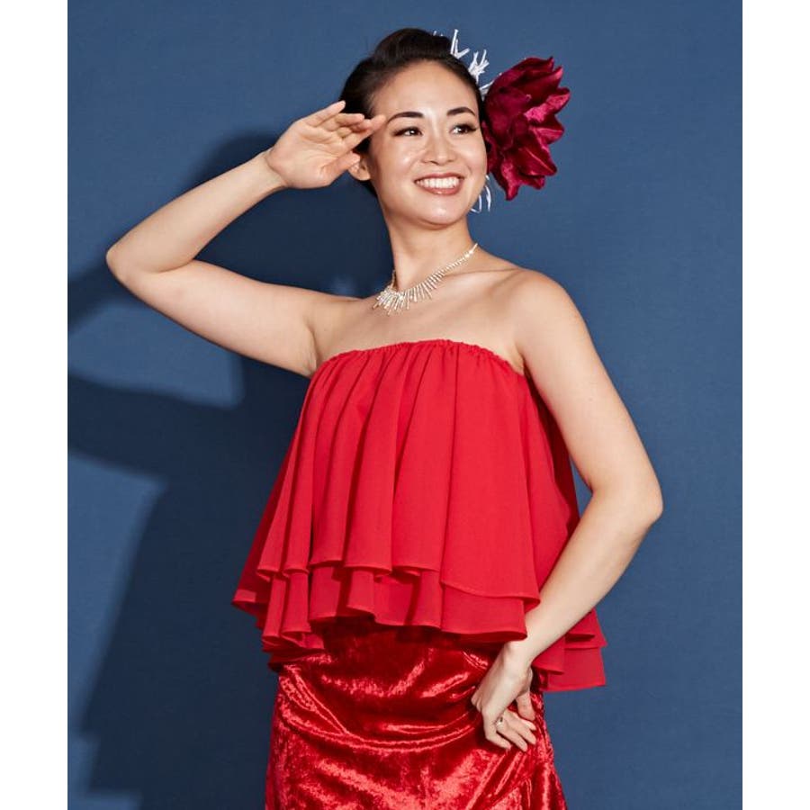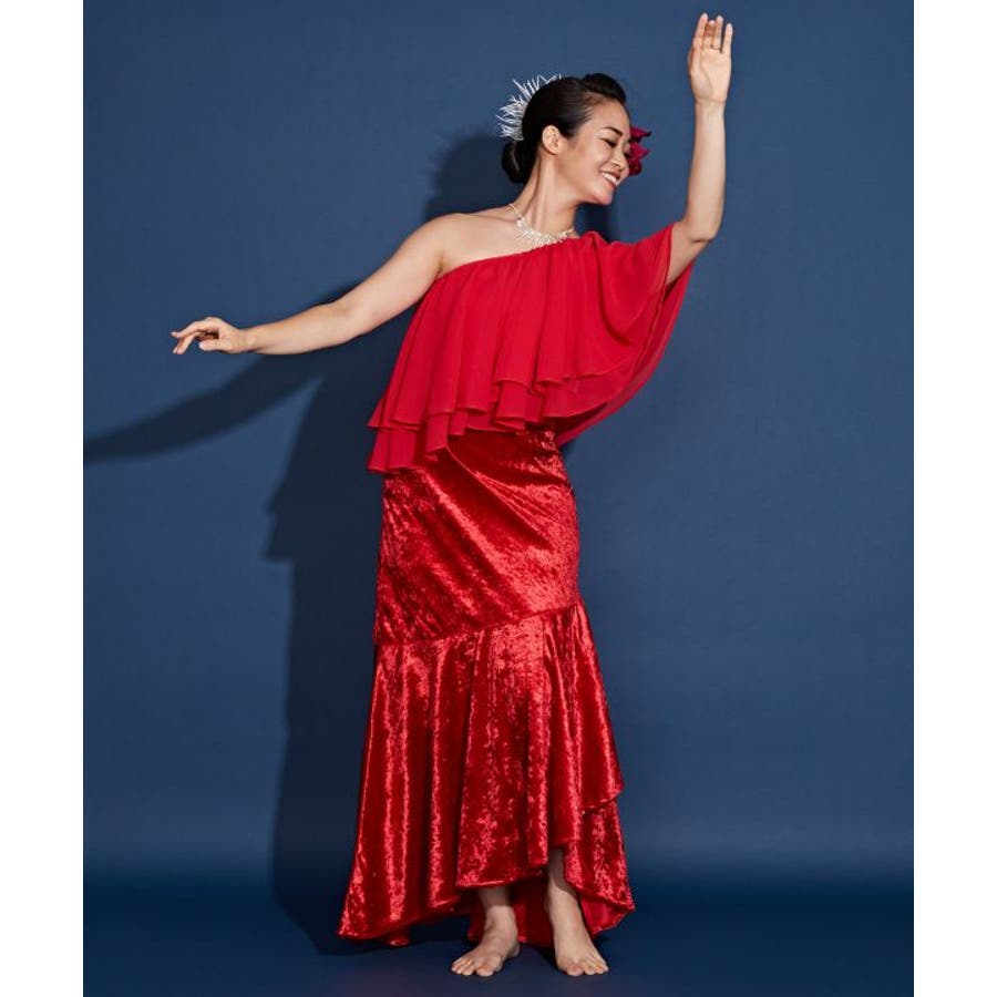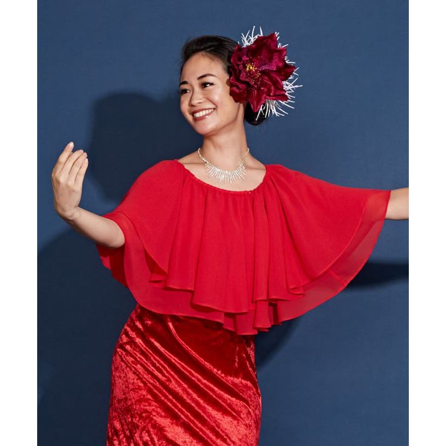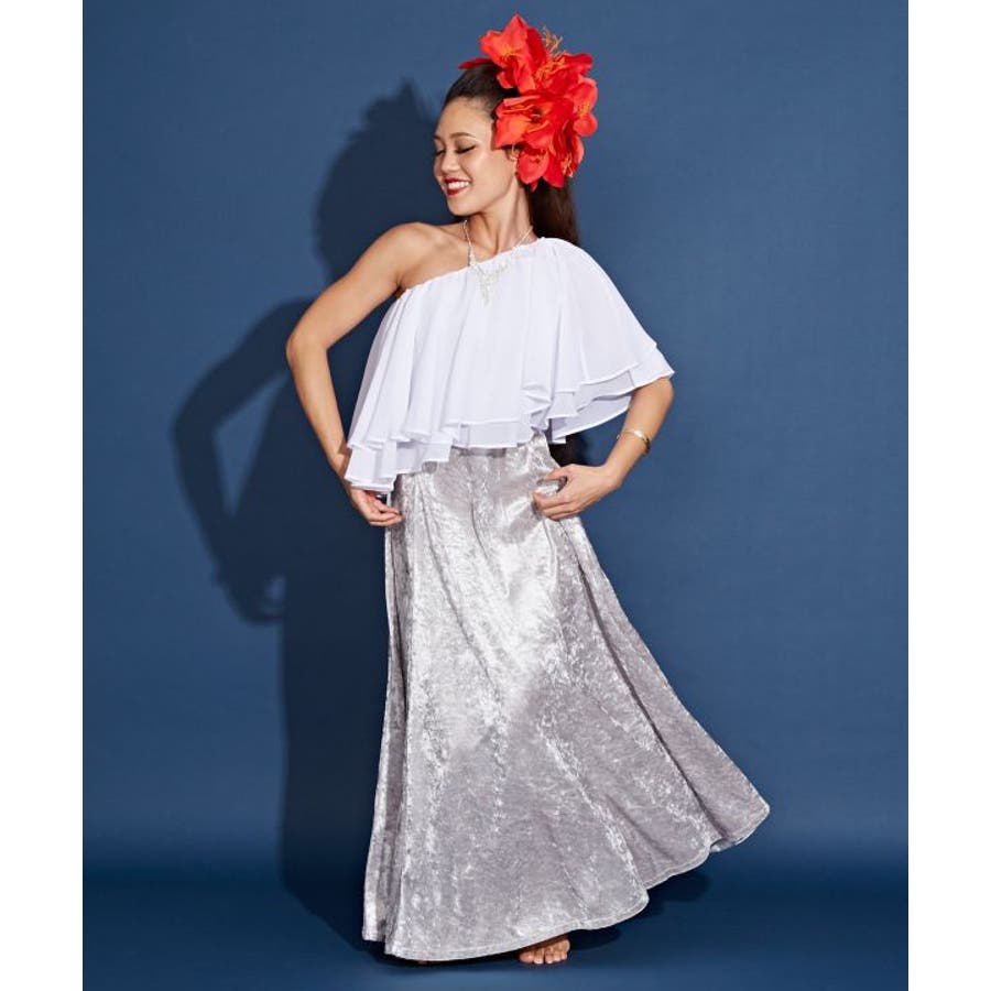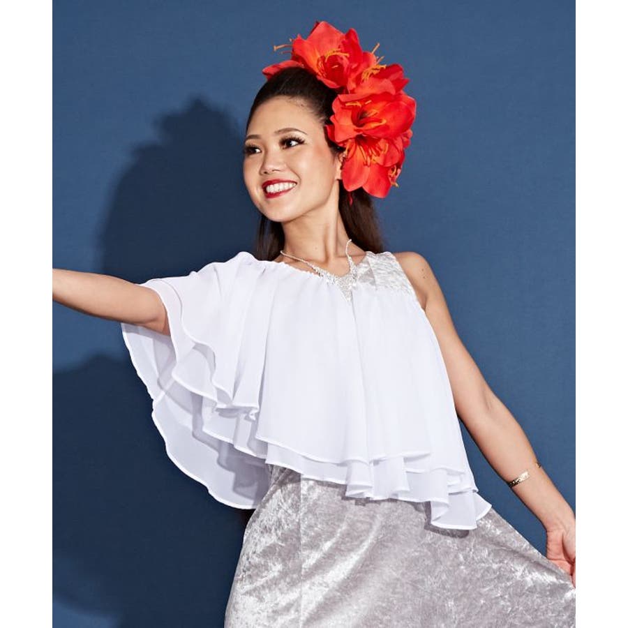 柔らかなシフォンはどんな素材とも相性がよく、二段になったフリルが踊りにあわせてより一層優雅に演出します。