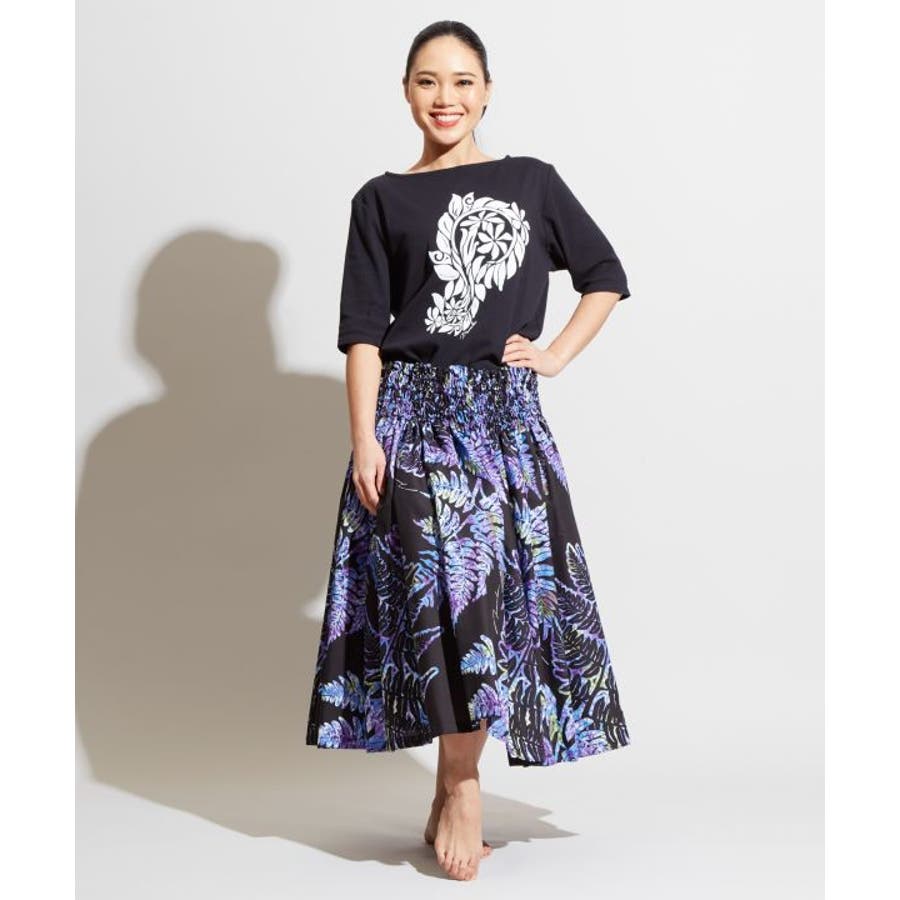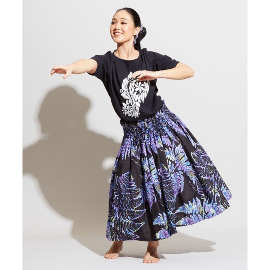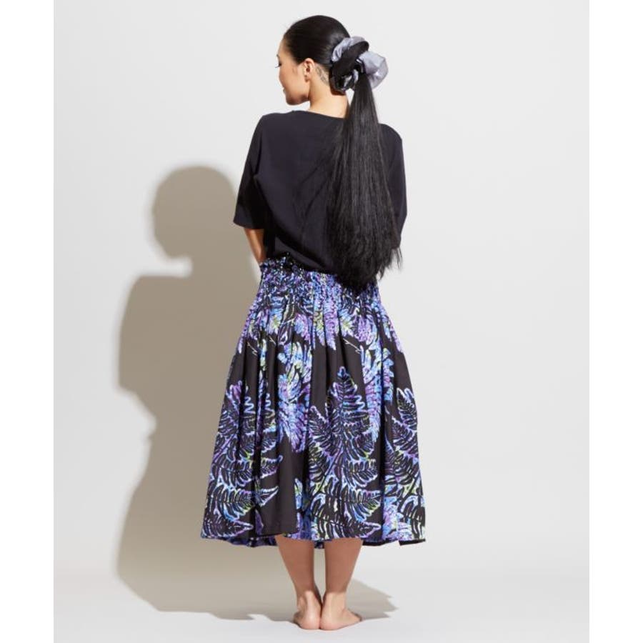 マウナロアオリジナルファブリックを使用した既製品シングルパウ。フラと森の女神ラカに捧げるパラパライ。マナを感じるシックなカラーと魅力的なタイダイタッチで神聖な植物を表現しました。4ヤード(約3.6m)のたっぷりギャザーに安定のウエスト4本ゴムを使用しています。ご自身で調整できるウエストゴム仕様。タイダイタッチで描かれたパラパライにダイナミックさを感じるデザインです。サイズ:スカート丈73cm