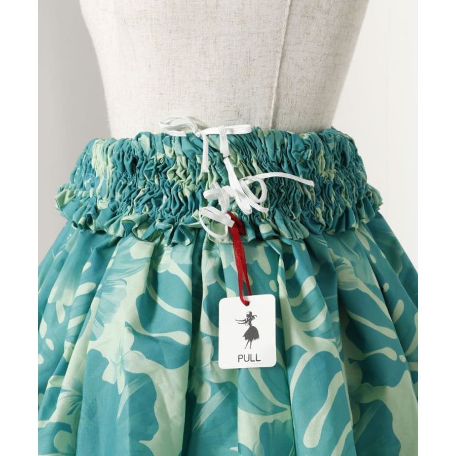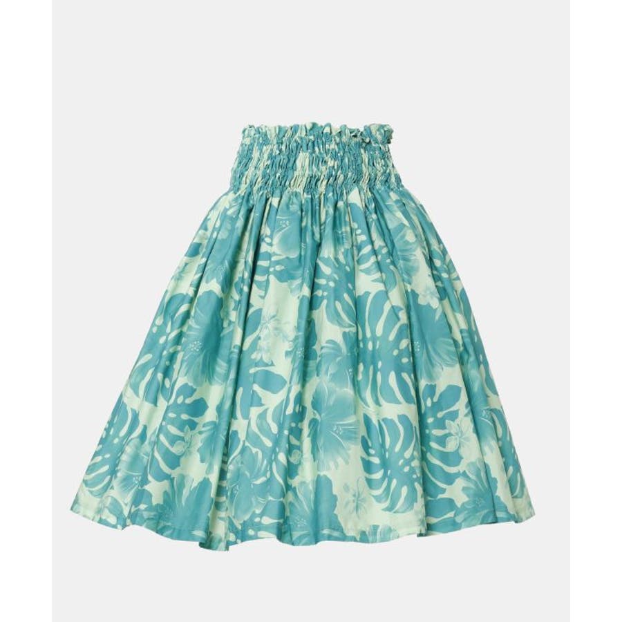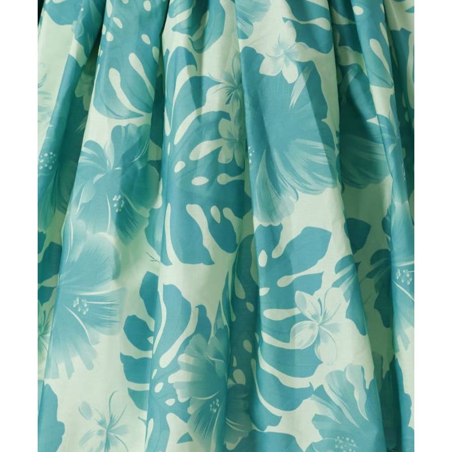 マウナロアオリジナルファブリックを使用した、73cm丈の既製品シングルパウ。プルメリア、ハイビスカス、モンステラが茂るハワイの美しいガーデンを描いた「クラシックガーデン」のオリジナルデザイン。4ヤード(約3.6m)のたっぷりギャザーに安定のウエスト4本ゴムを使用しています。ご自身で調整できるウエストゴム仕様。
