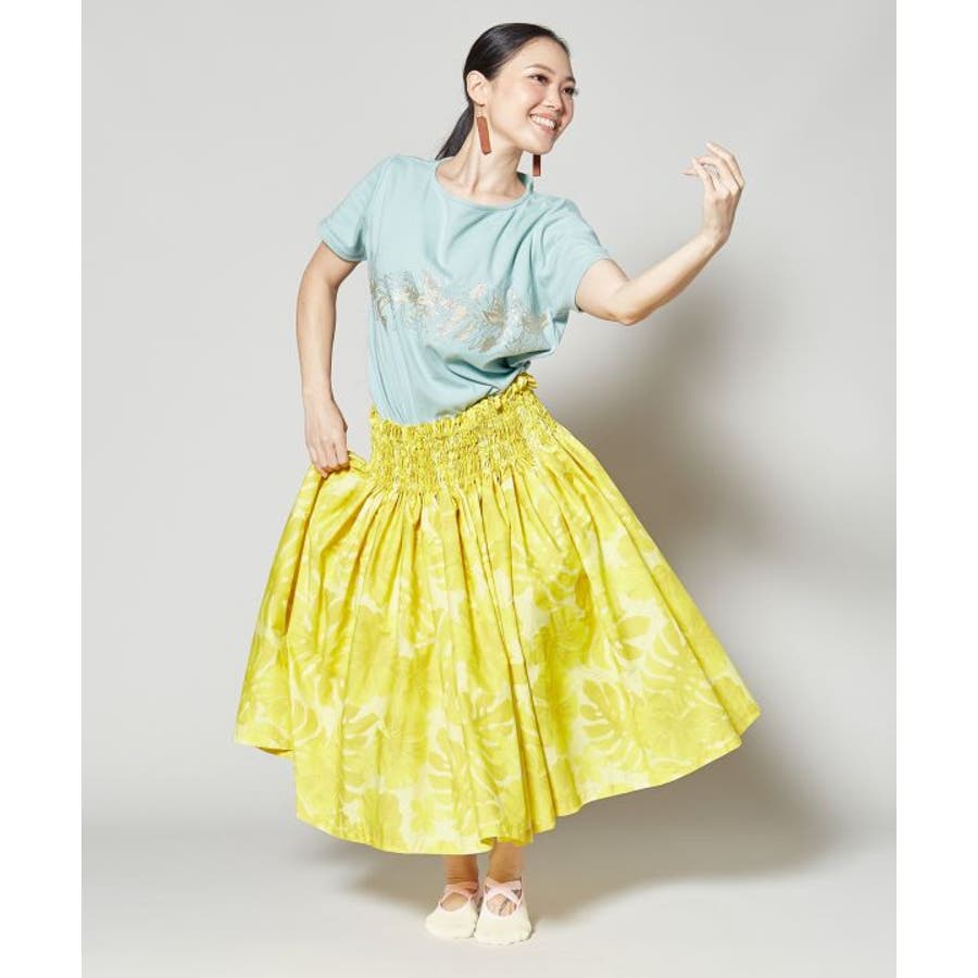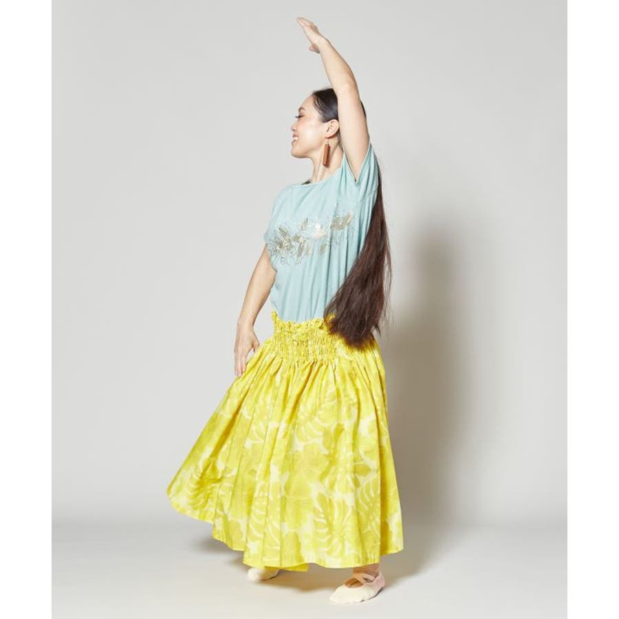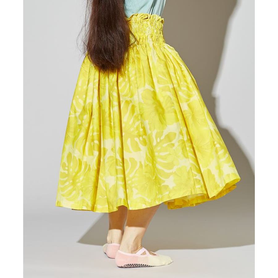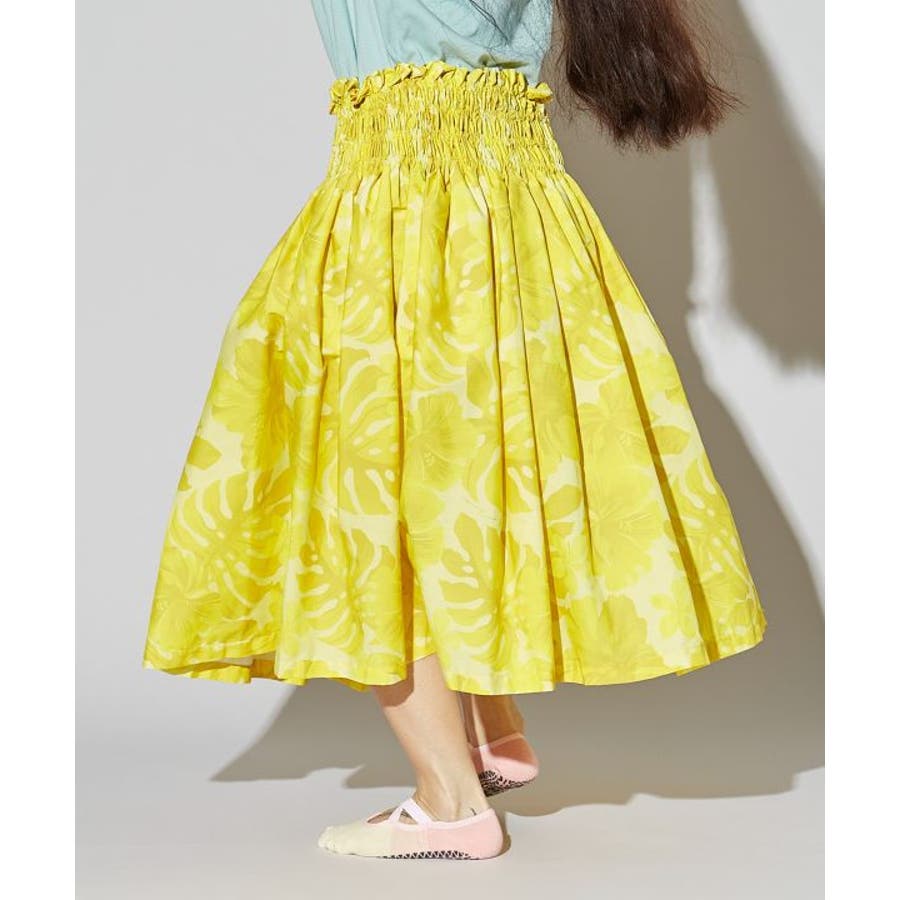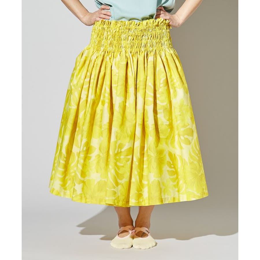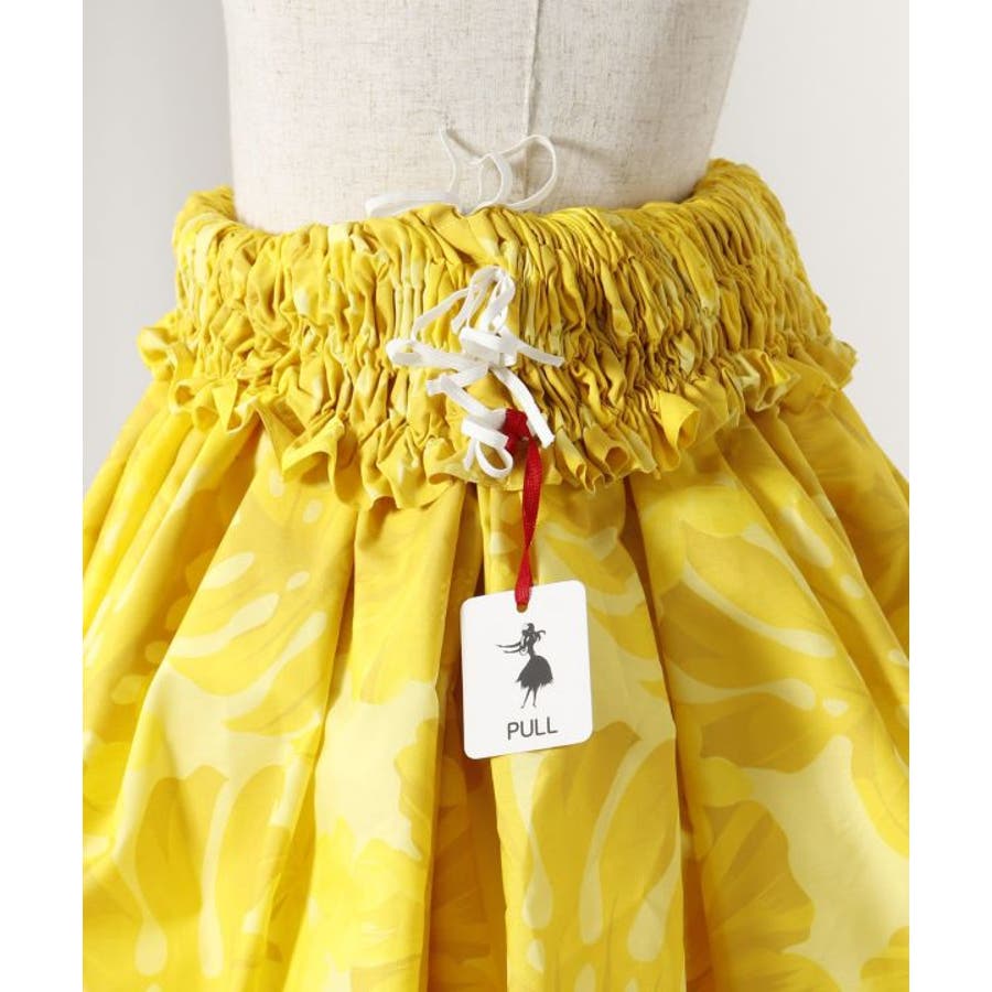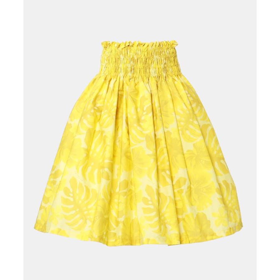 マウナロアオリジナルファブリックを使用した73cm丈の既製品シングルパウ。プルメリア、ハイビスカス、モンステラが茂るハワイの美しいガーデンを描いた「クラシックガーデン」のオリジナルデザイン。4ヤード(約3.6m)のたっぷりギャザーに安定のウエスト4本ゴムを使用しています。ご自身で調整できるウエストゴム仕様。