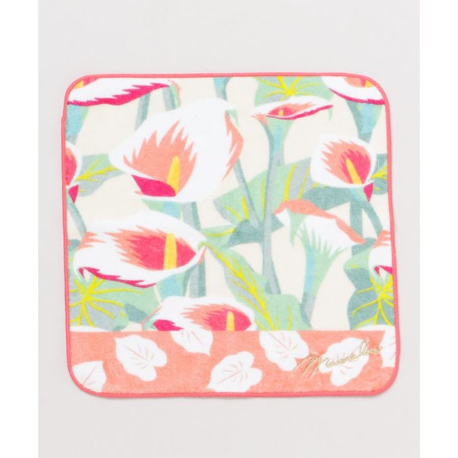 メロー刺繍でふちどられ、カラーのお花がプリントされたタオルハンカチ。表地は柔らかな肌触り、裏面はパイル地で吸水性の良い一枚。ゴールド刺繍のマウナロアロゴがアクセント。