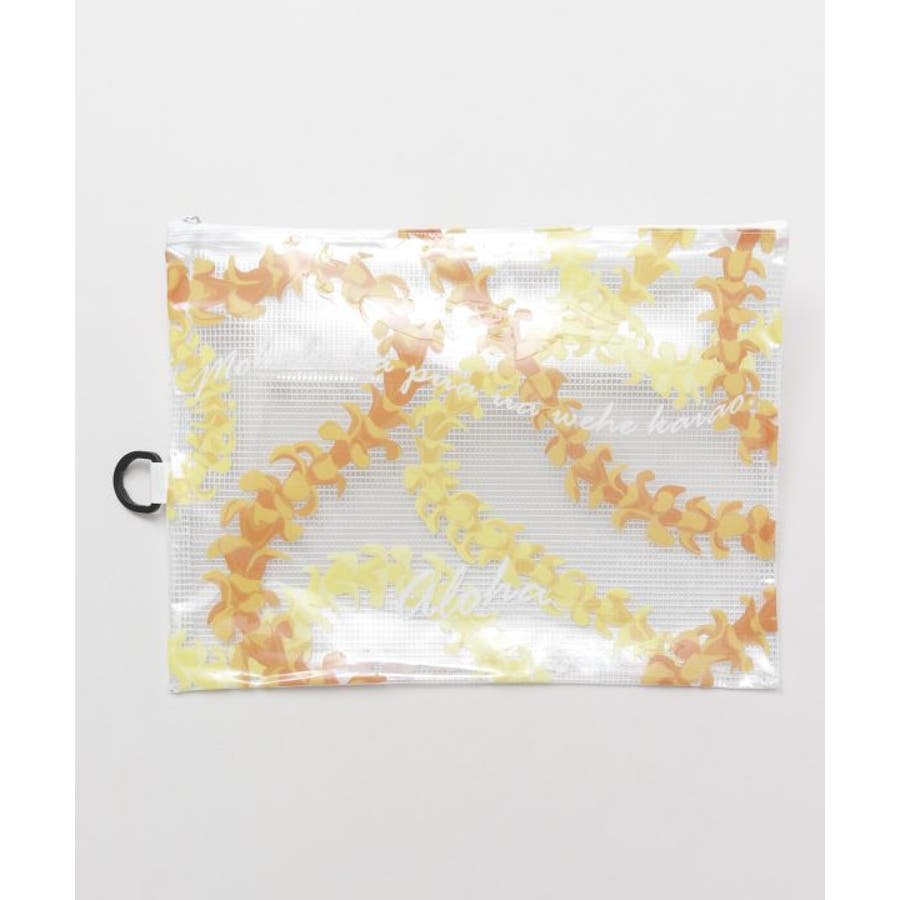 神聖な花ケニケニのレイをモチーフにしたデザインの大きめサイズのクリアメッシュポーチ。しっかりとした生地で、中身も見える便利なクリアメッシュポーチは、「フラライフをハワイで彩り、心躍る日常を過ごして頂きたい」という願いを込めて、フラダンサーの「あったらいいな」の声を商品化しました。イベントやレッスンのときの小物をまとめたり、フラライフを送るOhanaへのギフトにもおすすめです。