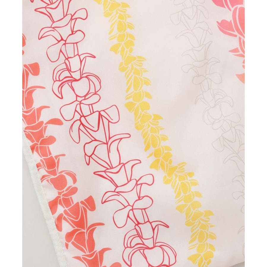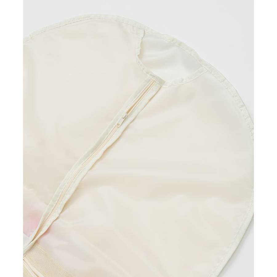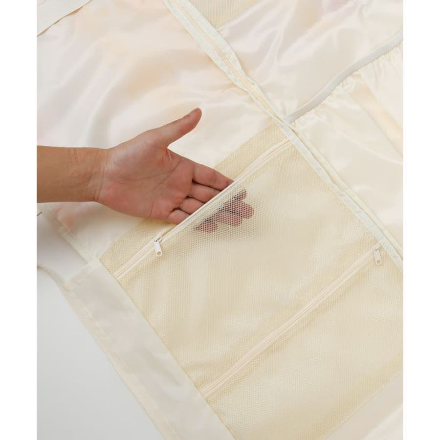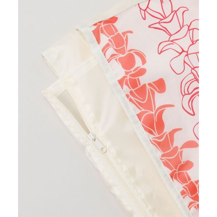 プアケニケニ柄が描かれた、ポリエステル素材のガーメントバッグ。ドレスを最大5着運べるダンサーのマストアイテムです。内側にヘアクリップを付けられるバンドが2本、大小のメッシュポケット、大きめ袋ポケット、ハンガーの通し穴もついた機能性の高いバッグ。