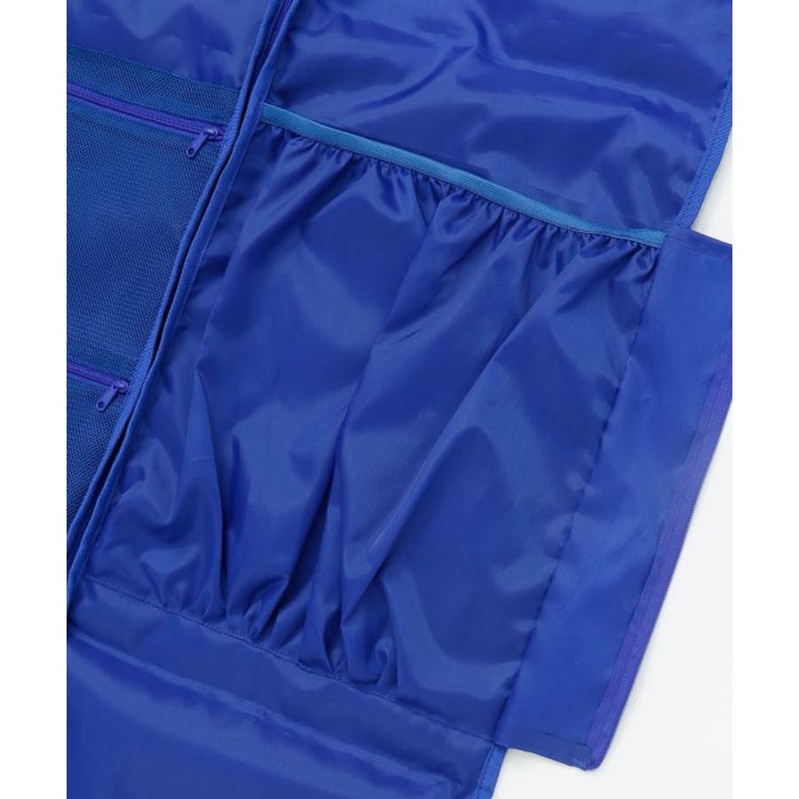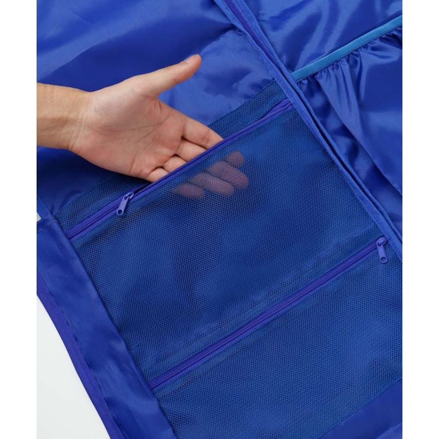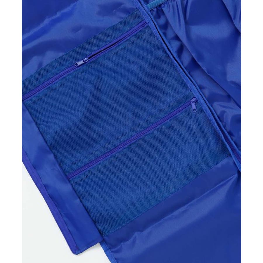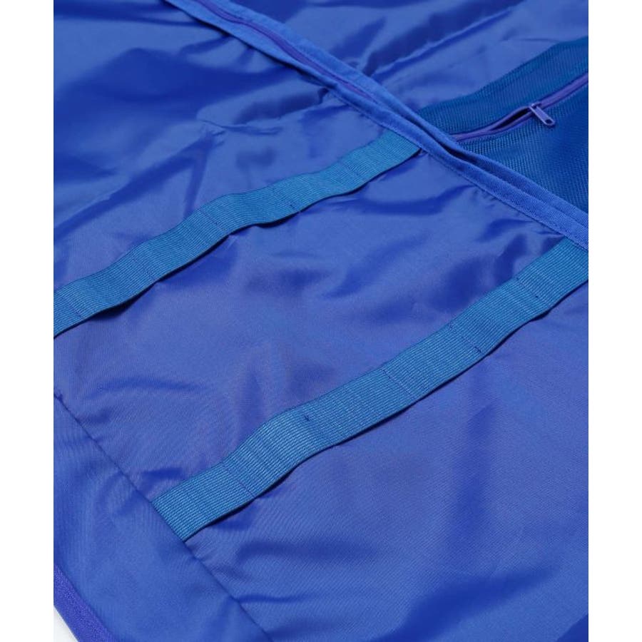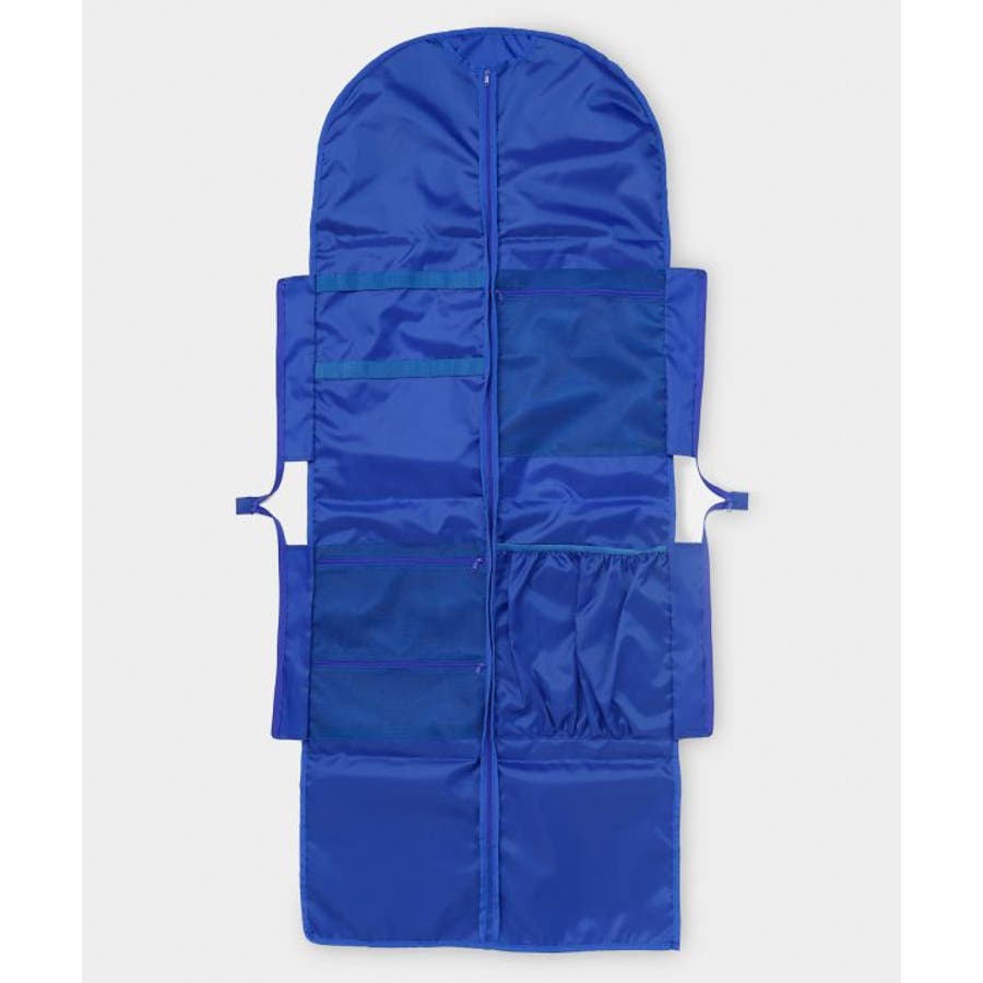 爽やかなキルト柄のポリエステル素材のガーメントバッグ。ドレスを最大5着運べるダンサーのマストアイテムです。内側にヘアクリップを付けられるバンドが2本、大小のメッシュポケット、大きめ袋ポケット、ハンガーの通し穴もついた機能性の高いバッグ。