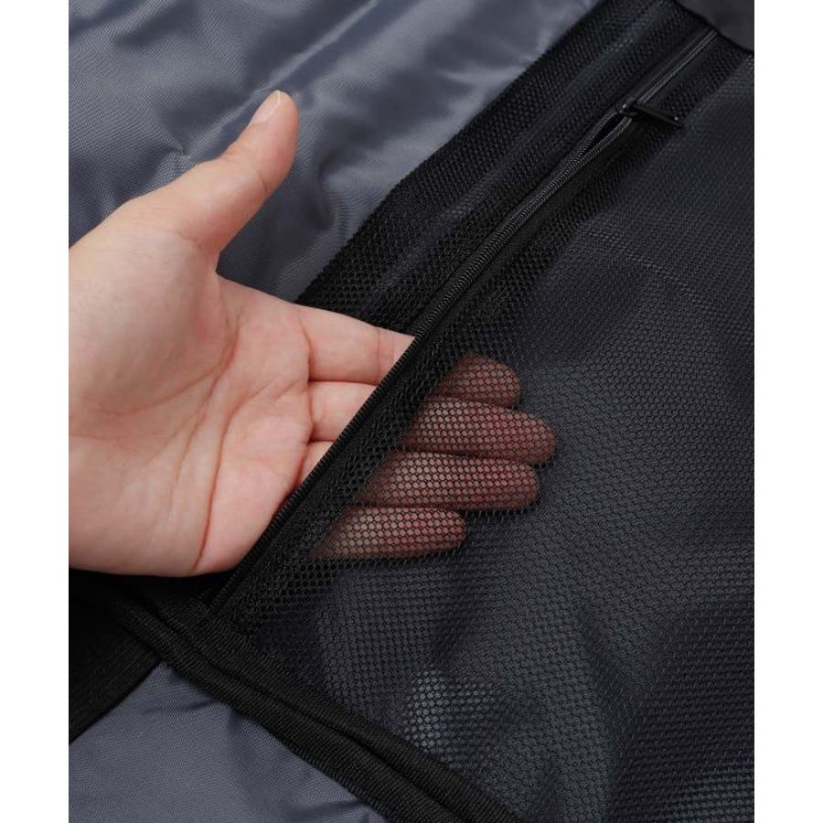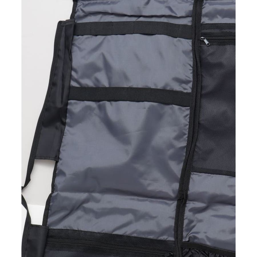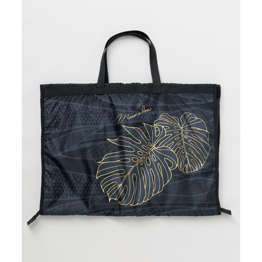 大胆なモンステラ柄とゴールドプリントが印象的なガーメントバッグ。ドレスを最大5着収納可能で、メッシュポケットやクリップ用バンド、ハンガー通し穴など機能も充実。スタイリッシュなデザインで、フラのステージやイベントに頼れる実用派アイテムです。