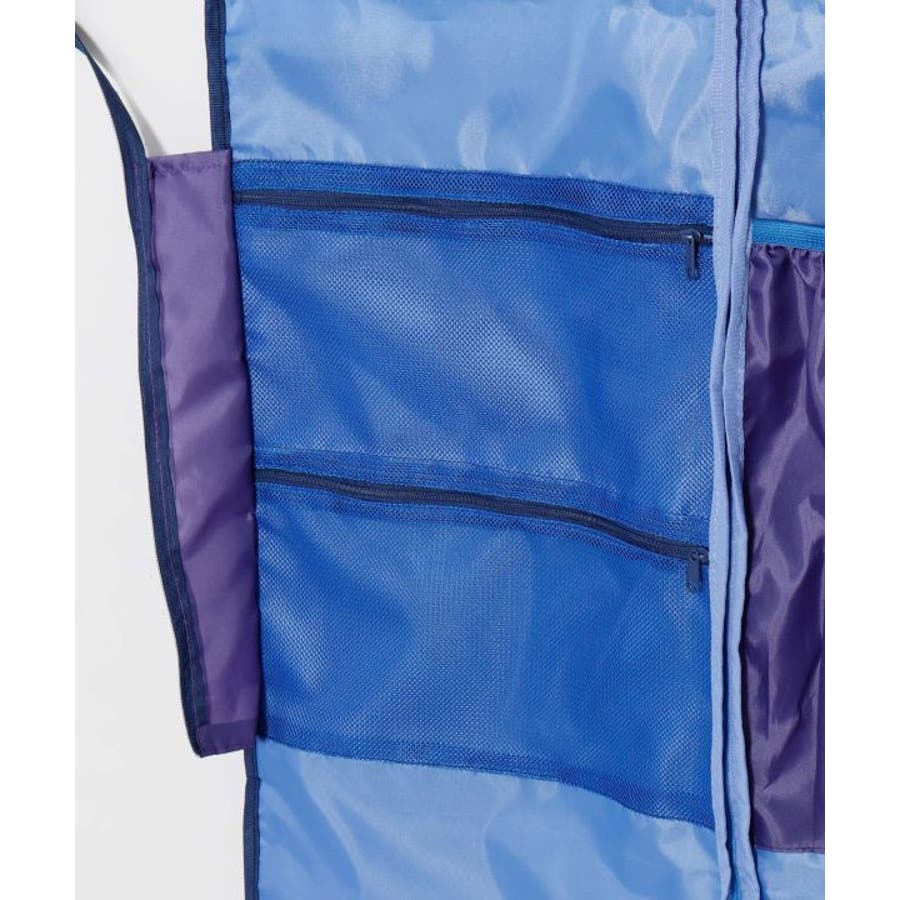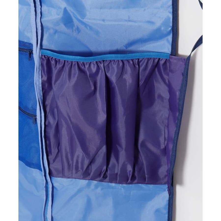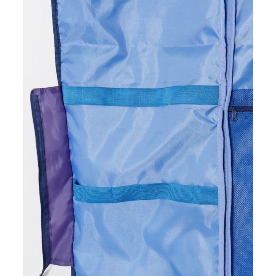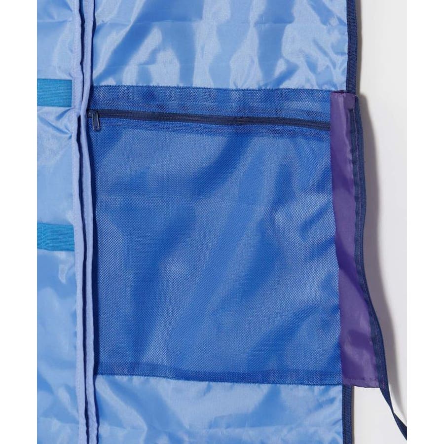 ゴールドのティアレが華やかに咲く、存在感あるデザインのガーメントバッグ。最大5着のドレスが収納可能で、内側にはクリップ用バンドや複数のポケット、ハンガー通し穴も備えた高機能仕様。ダンサーの衣装持ち運びにぴったりの実用的なアイテムです。