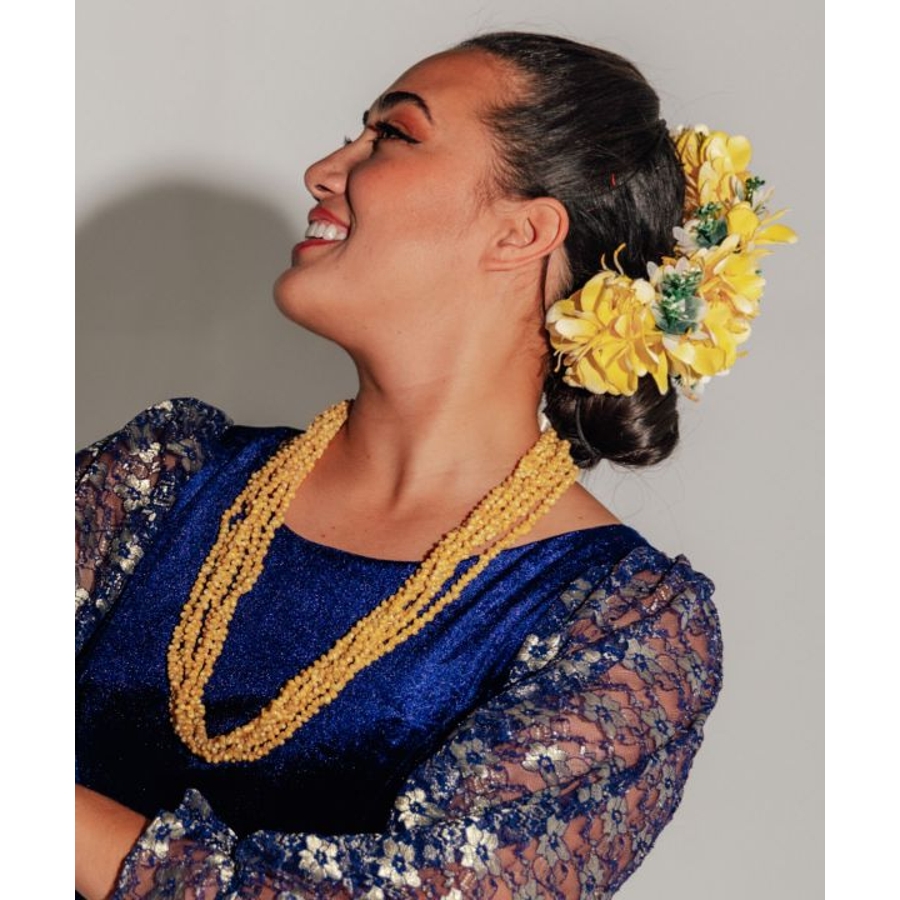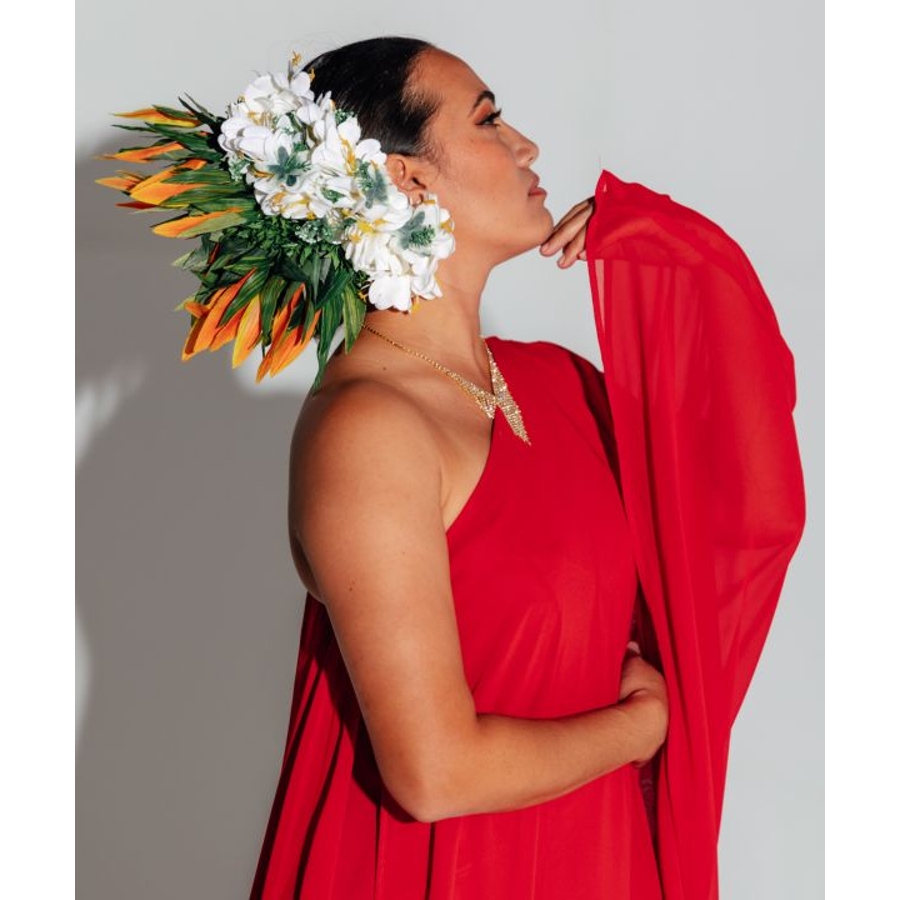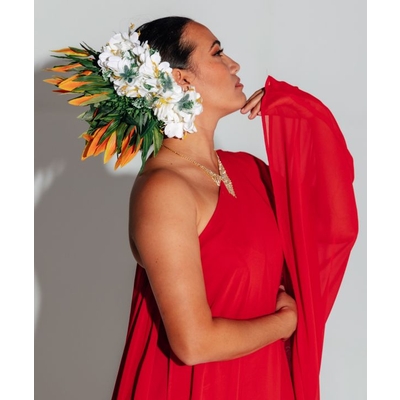 甘くて爽やかな香りが優雅に漂うカヒリジンジャーをモチーフにしたクリップ。お花の中と土台部分にワイヤーが入っているので、お顔周りに沿って自由に動かしアレンジができます。レイと揃えて着用も可能。見る人を魅了する贅沢なボリューム感です。