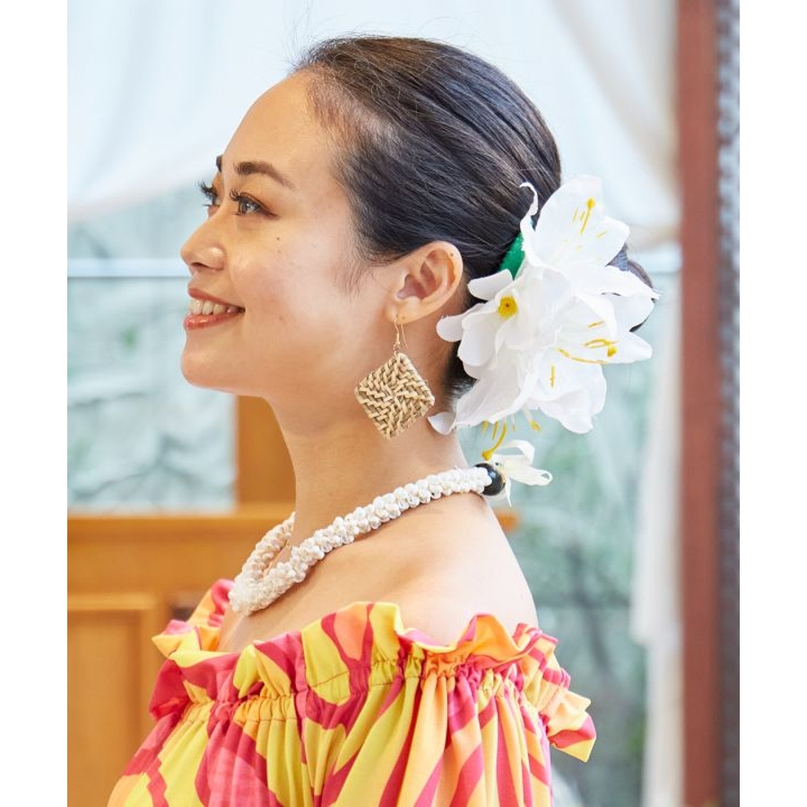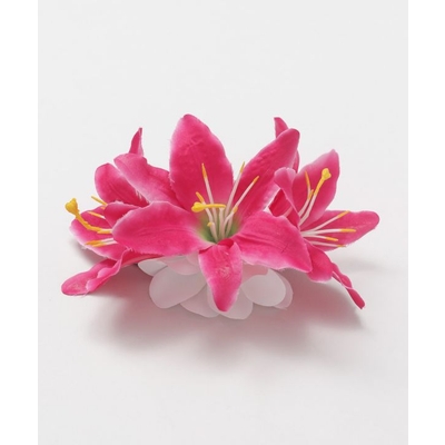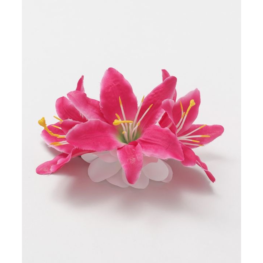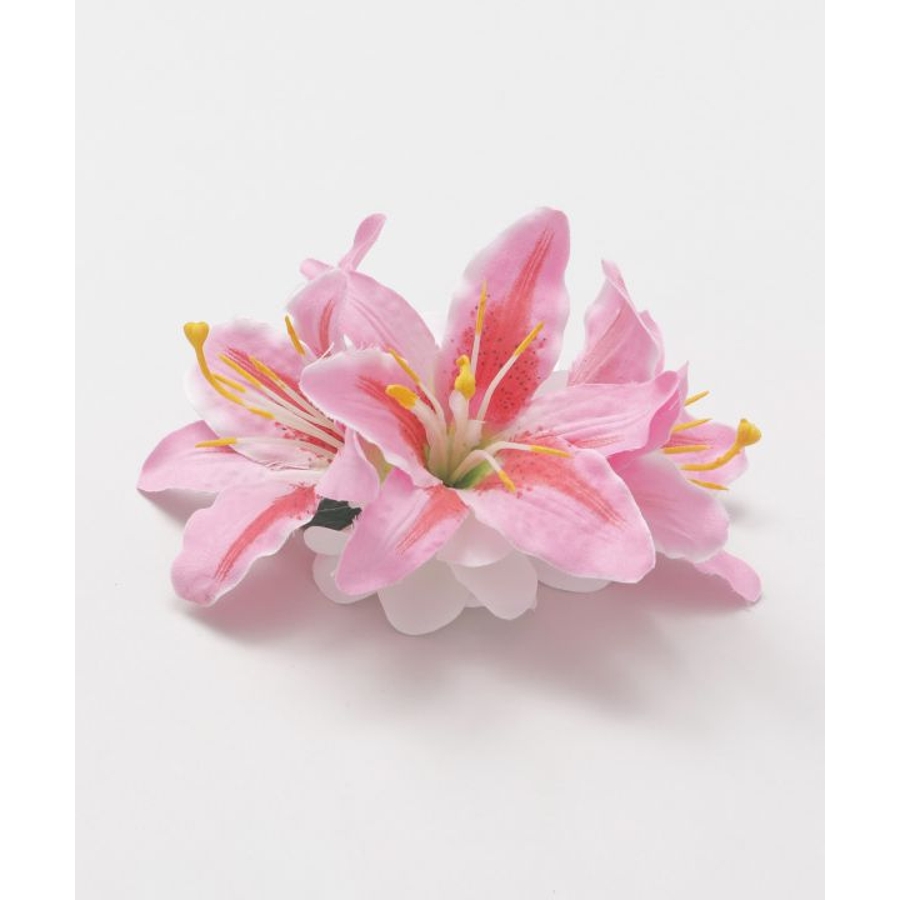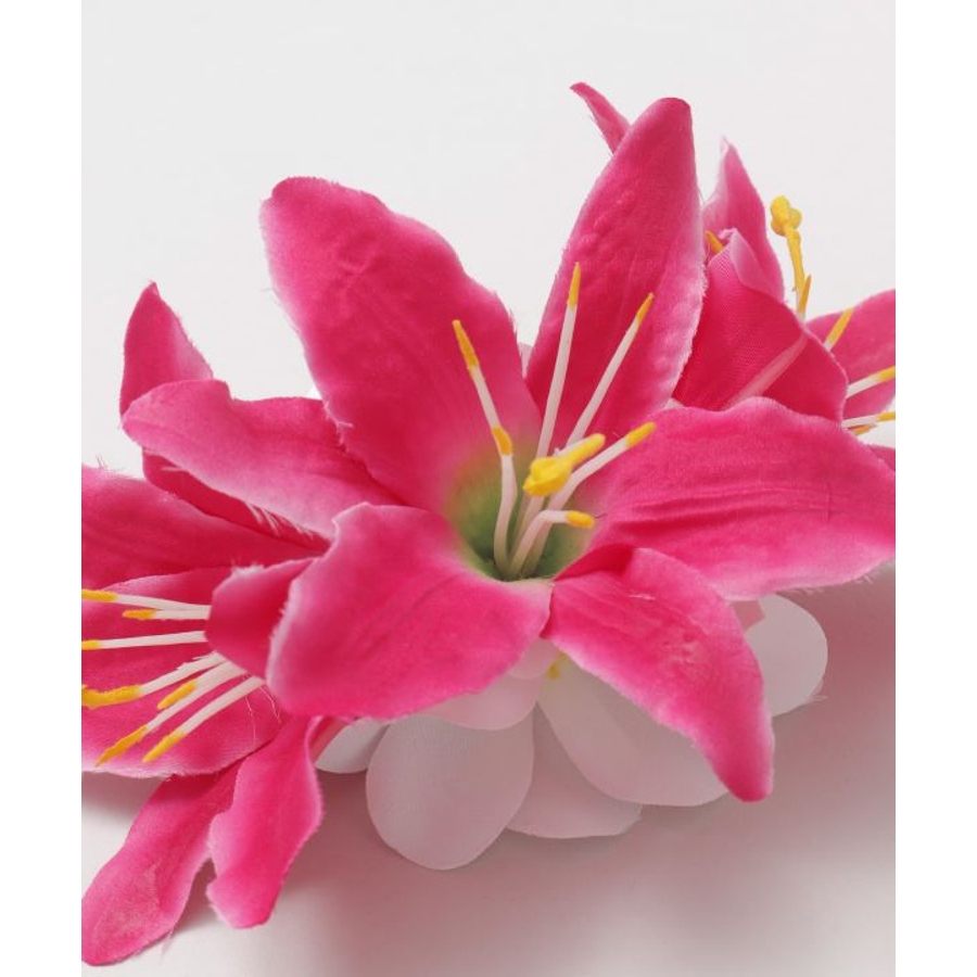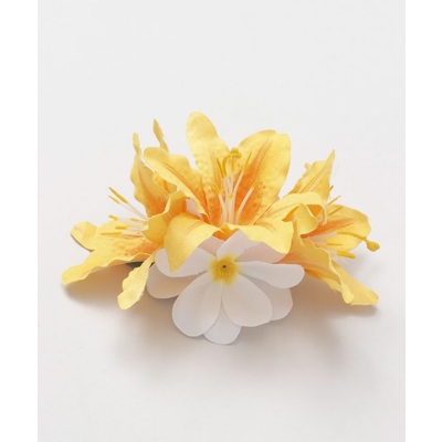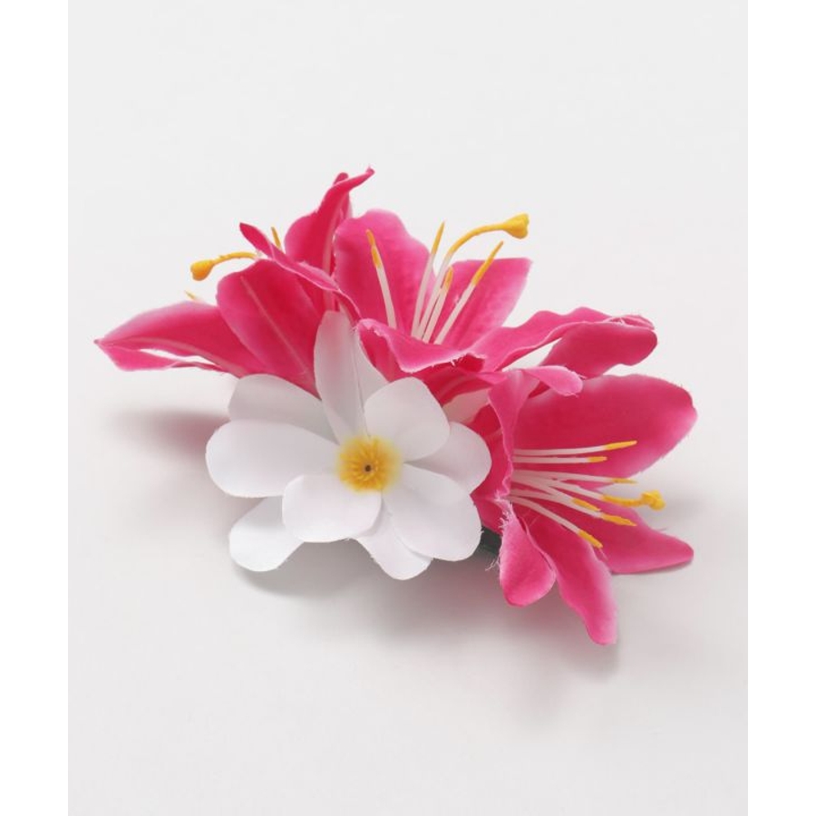 3輪のリリーに、2つの白いプルメリアをあしらった華やかなヘアクリップ。