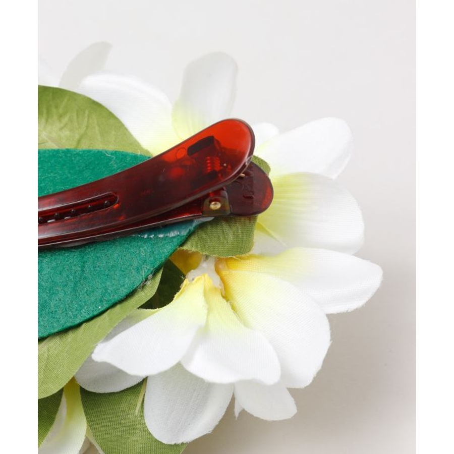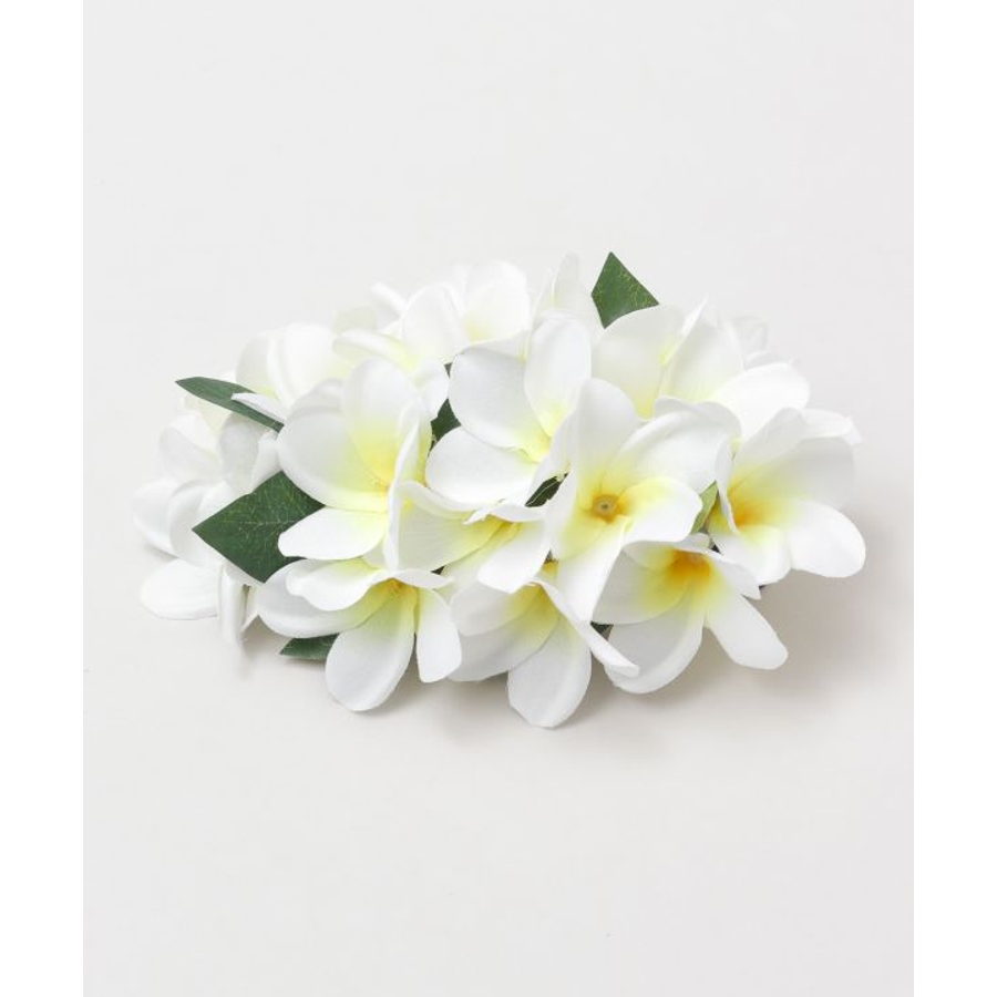 可憐な花「プルメリア」が合わさったヘアクリップ。存在感のある大き目デザイン。