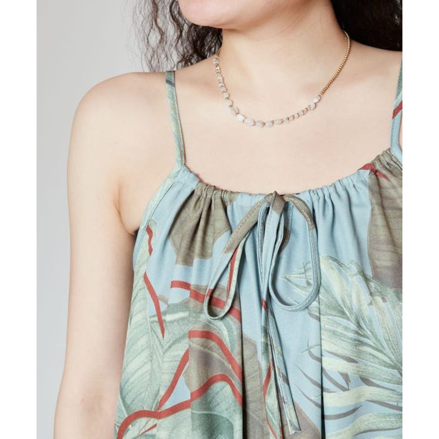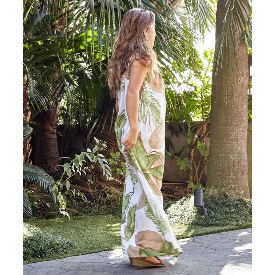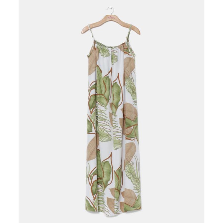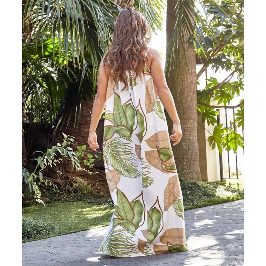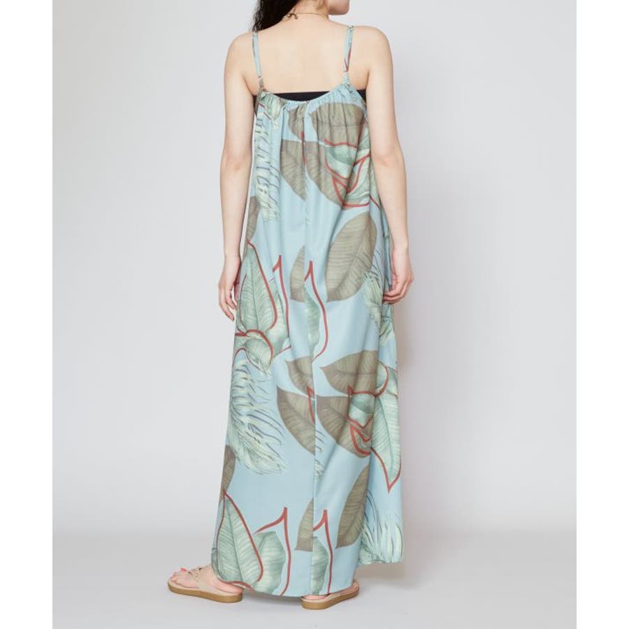 立体的に描かれたリーフが魅力的なキャミワンピース。優しい色合いのリーフ柄は柔らかな印象を与えてくれます。ポリエステル素材でさらっとした着心地。ウエスト回りもゆったりとしたサイズ感で、デイリー使いはもちろん、フラステージの移動着などにもおすすめです。