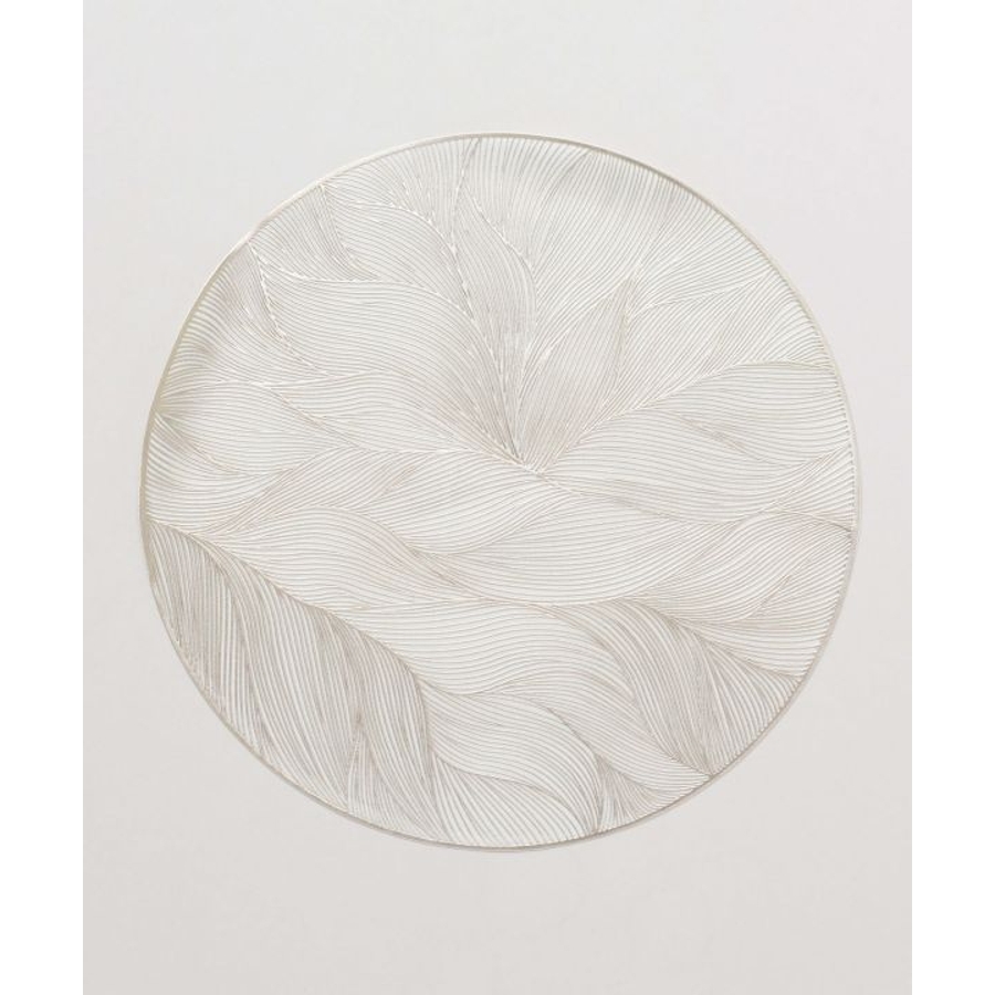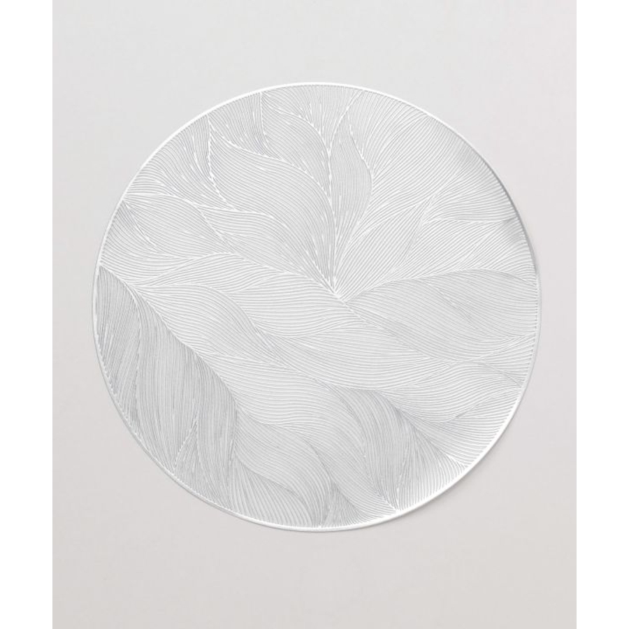ゴールドやシルバーが上品に煌めく、透かし模様のリーフ柄の円形プレイスマット。食事の時はもちろん、インテリアとしてもお使いいただけます。さりげなく輝くシンプルなデザインがお部屋を上品に着飾ります。