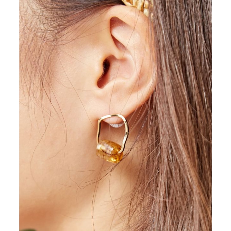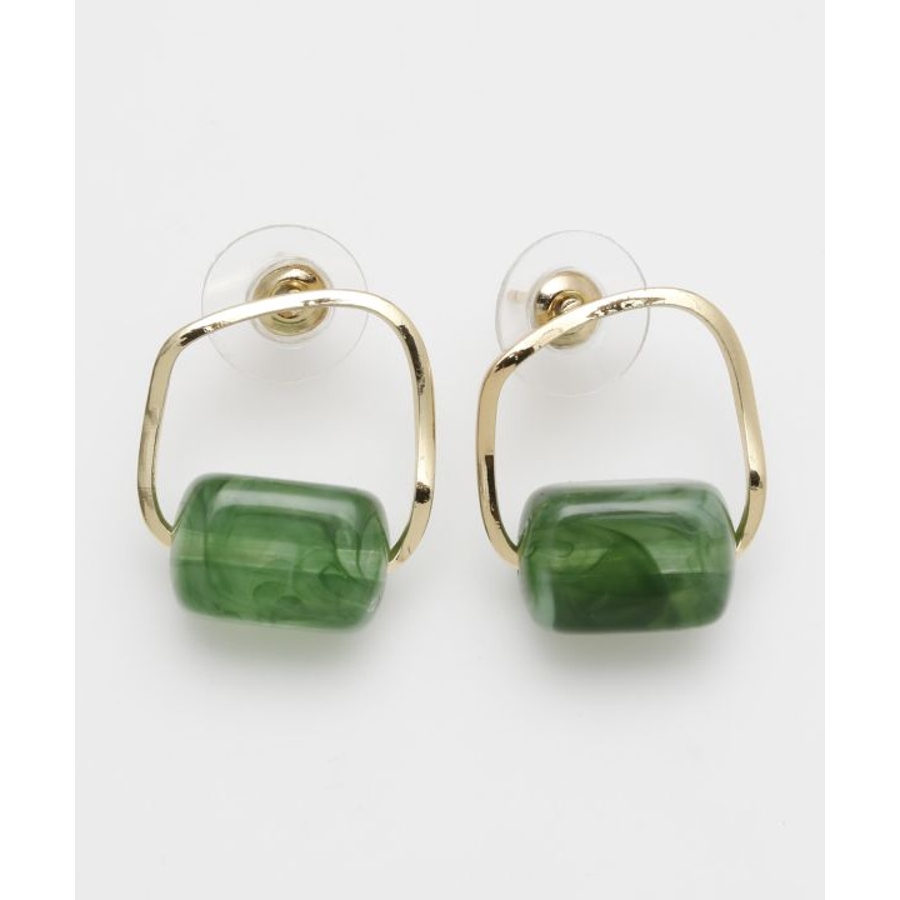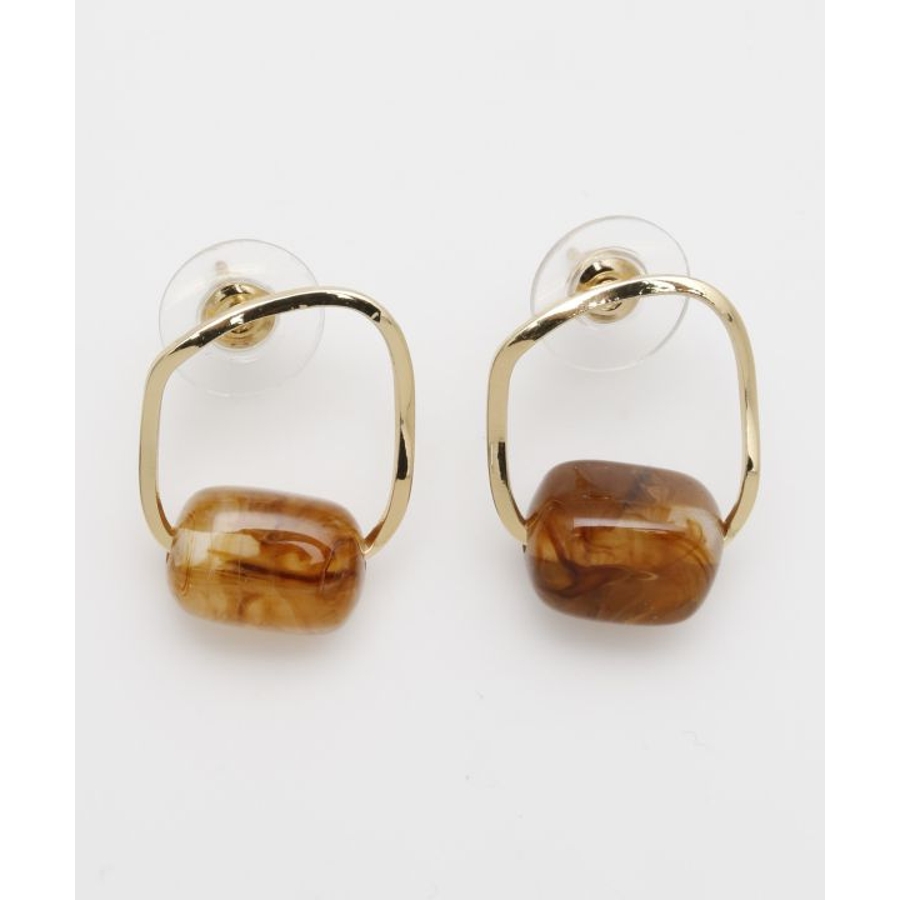 マーブルカラーのビーズがアクセントのピアス。カラーコーディネートも楽しめるデザインです。