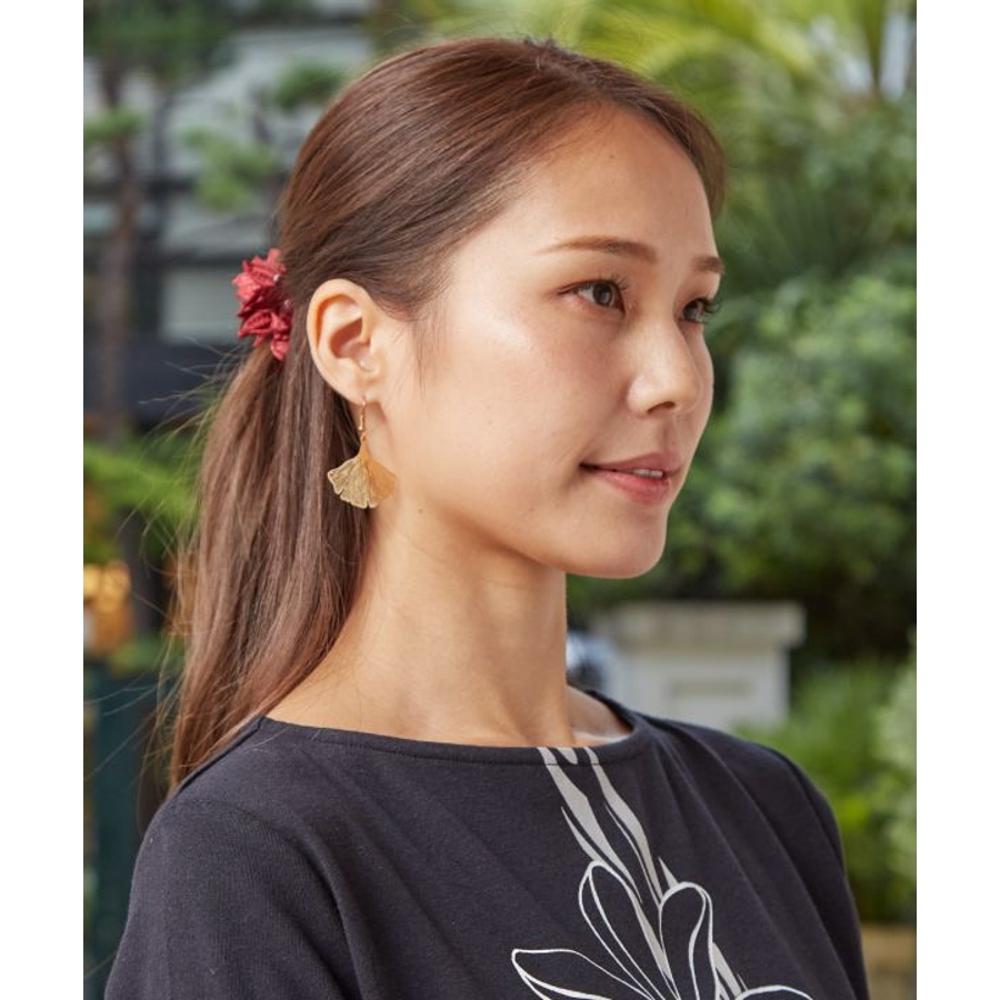 ハワイ島の花「レフア」をモチーフにしたピアス。どんな場面でも合わせやすいデザインです。