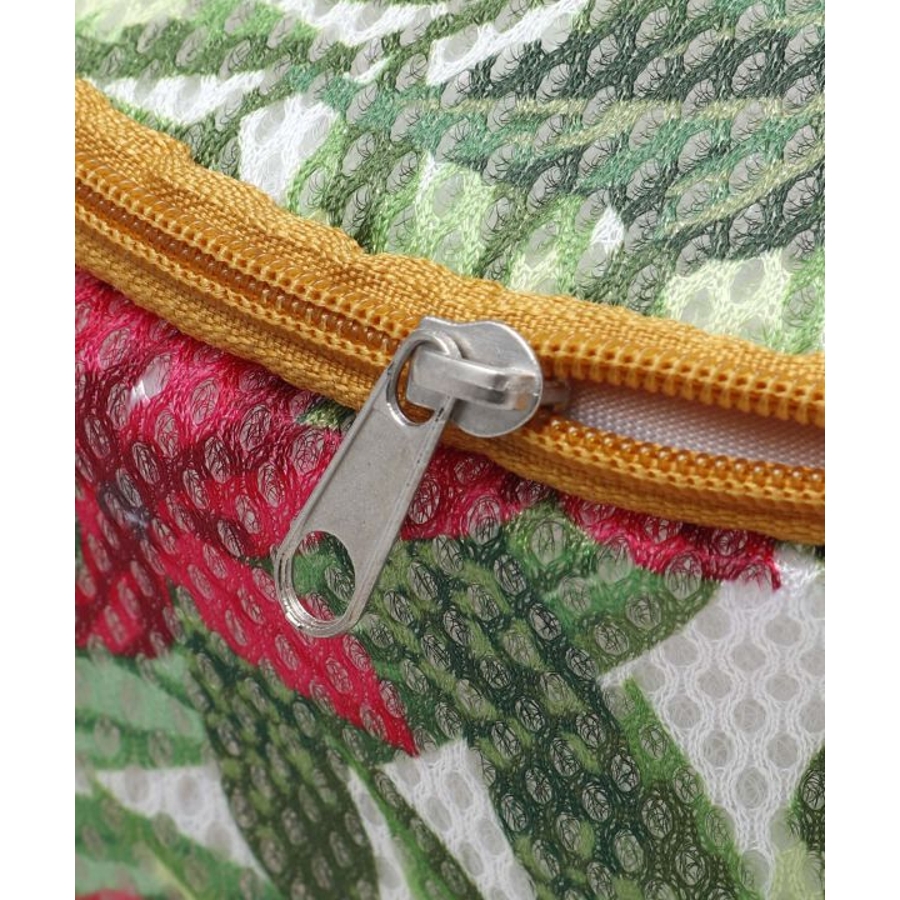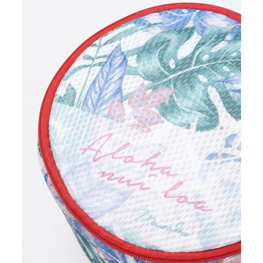 ハワイを代表するハイビスカスやモンステラに目を惹く、マウナロアオリジナルデザインのランドリーポーチ。全面にプリントしたトロピカルなアートが特徴。摩擦によるシワや型崩れを防ぎ、大切なフラアイテムの魅力を保ちます。レッスンバッグから見えてもかわいいデザインで、レッスン後のアンダーウェアなどを入れてそのまま洗濯機へ入れられます。レイなどを入れて、型崩れ防止や細かい繊維が他の荷物につくのを防ぐためのポーチとしてもおすすめです。※ラウンドポーチには紙帯は付きません。