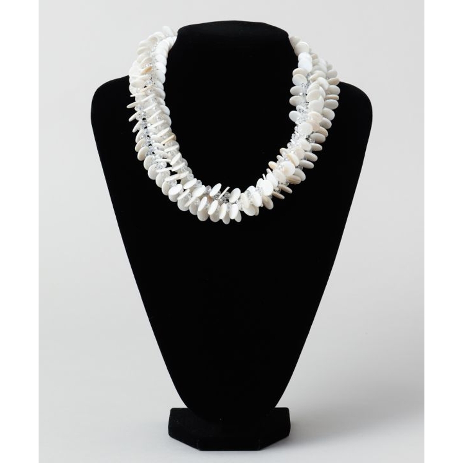 スポットライトを浴びて舞台に立つ、それは誰もが輝かしく自分を演出したいと願うはずです。グリッターシェルパールレイは、白真珠貝とクリアーパーツをひとつひとつ組み合わせてデザインされています