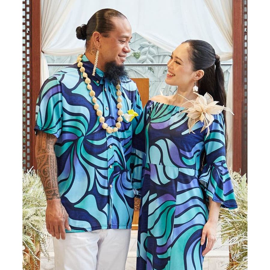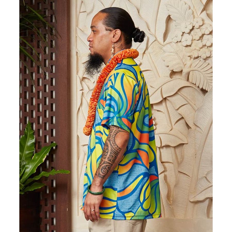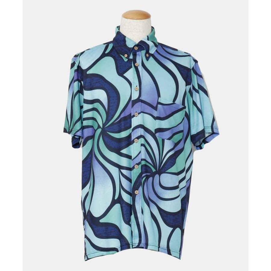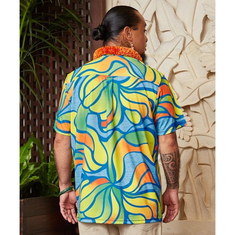 【マウナロア】Ocean Blue Bird ネオンハイビMEN'Sシャツ