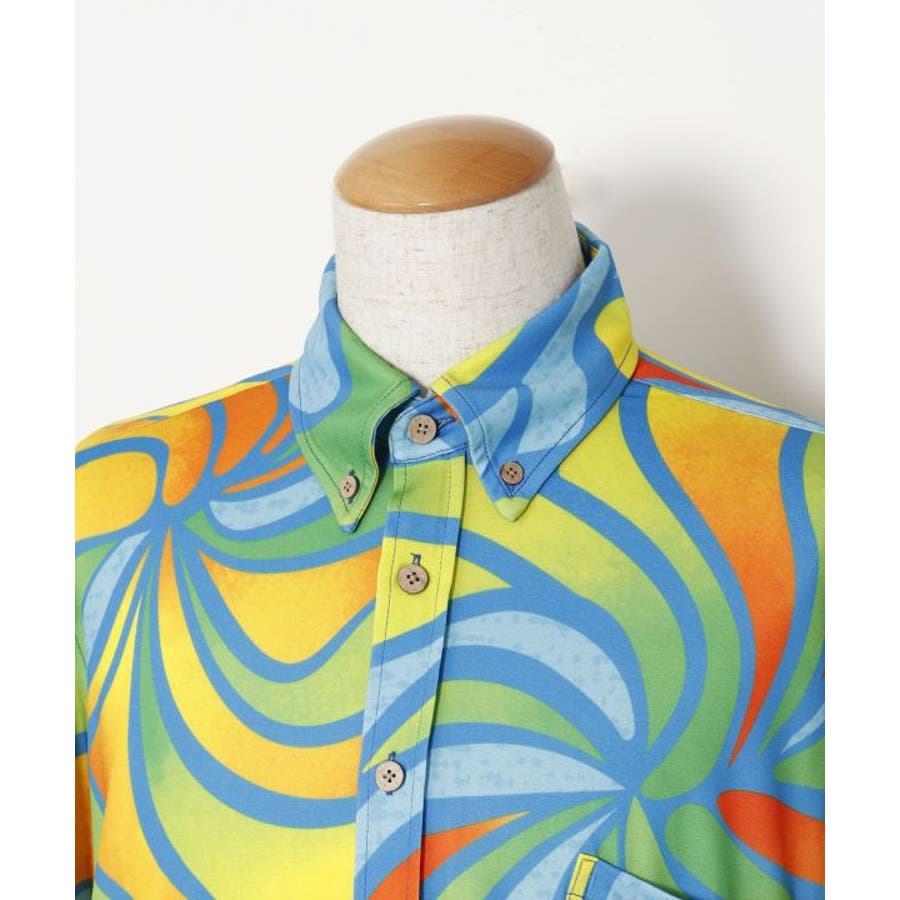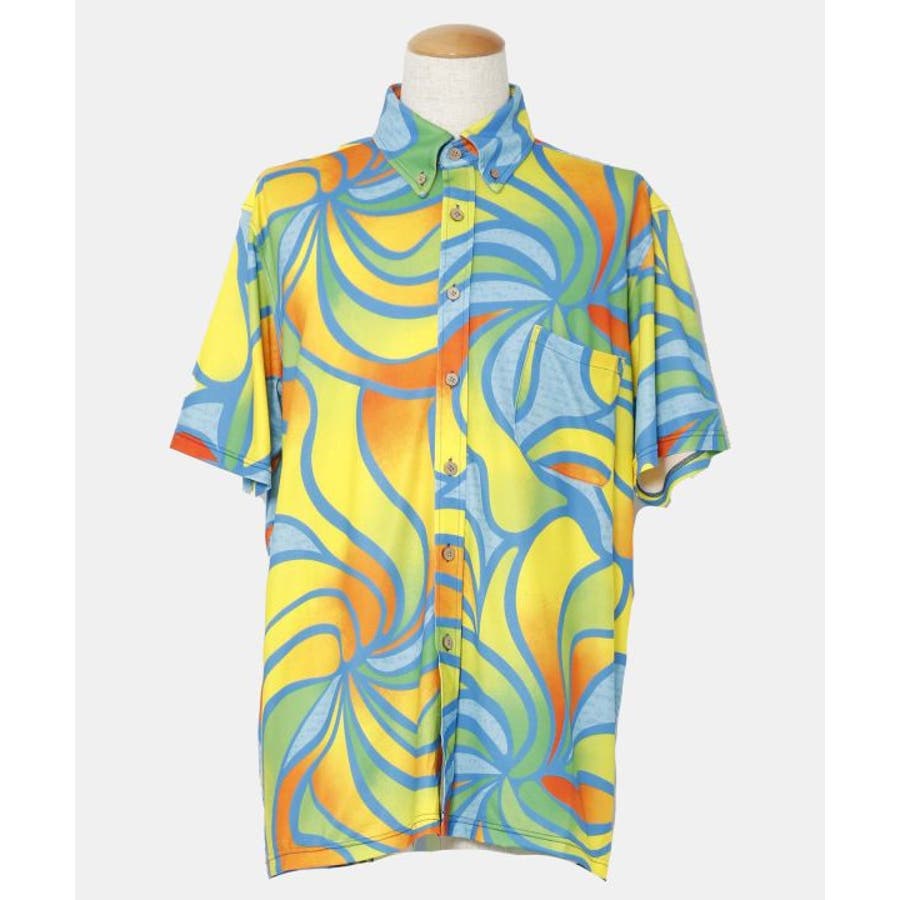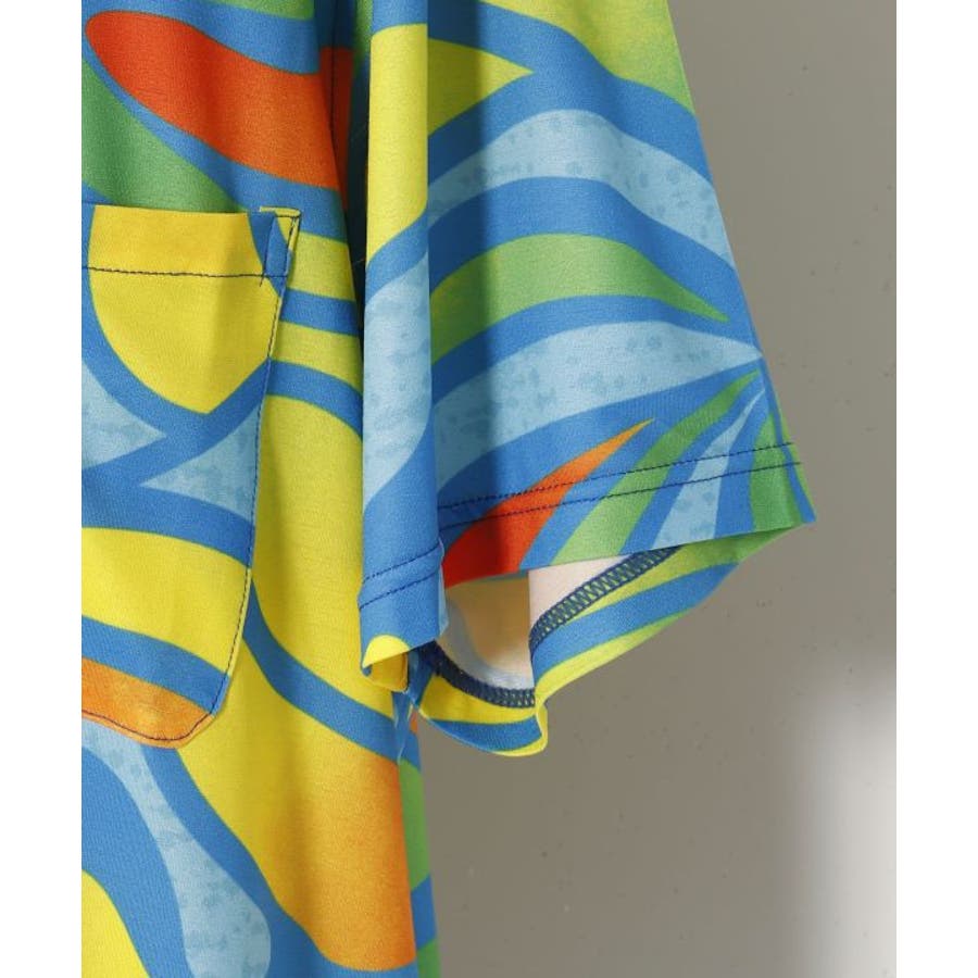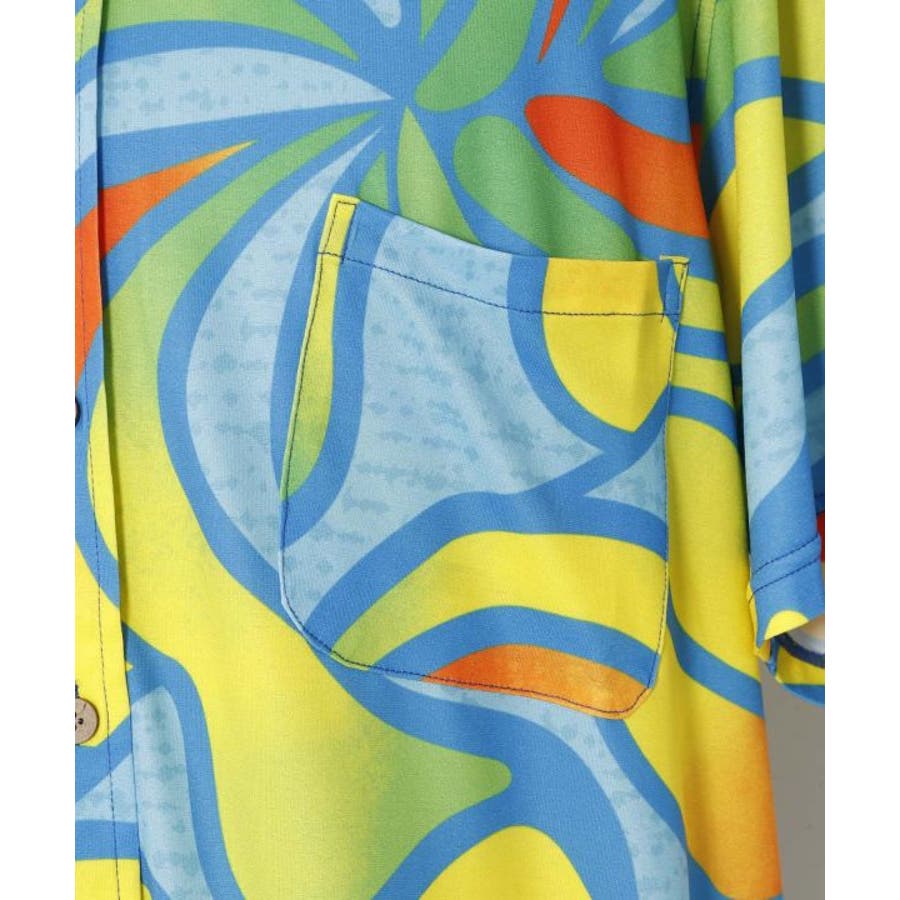 【マウナロア】Ocean Blue Bird ネオンハイビMEN'Sシャツ