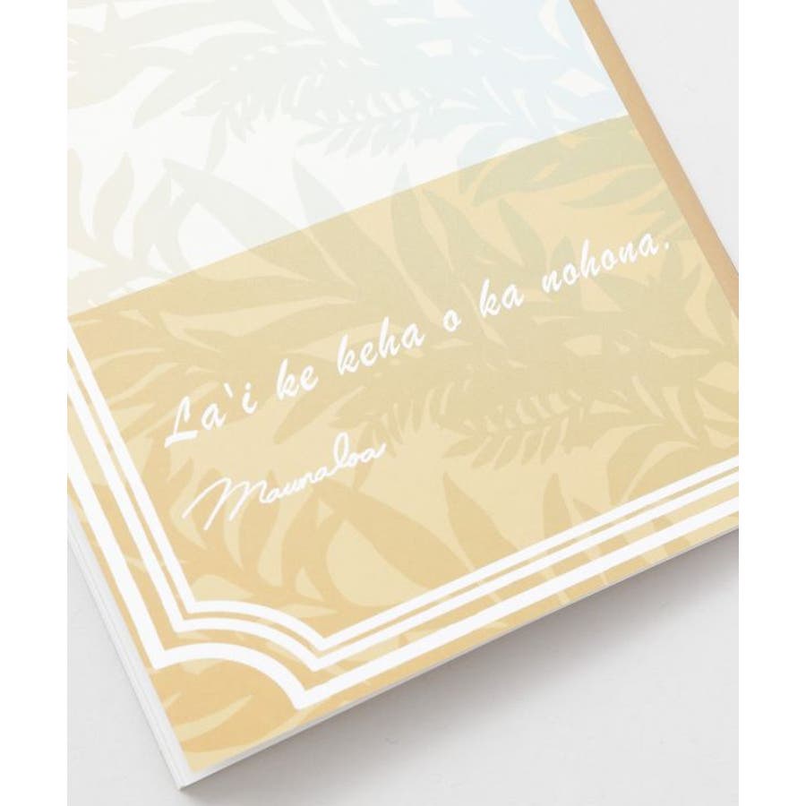 ハワイの爽やかな海風に揺れるリーフを描いた様なデザインのノート。4段に分かれた罫線が使いやすく、フラのステップや歌詞などを記入してレッスンノートとしてお使いいただいたり、レシピノート、ダイアリー、お子様の成長記録などアイデア次第で多目的にお使いいただけます。柔らかい日差しが心地いいハワイを思い出すようなデザインが魅力的です。