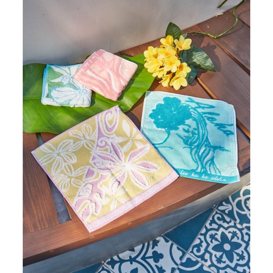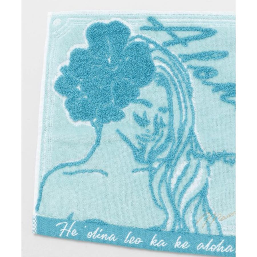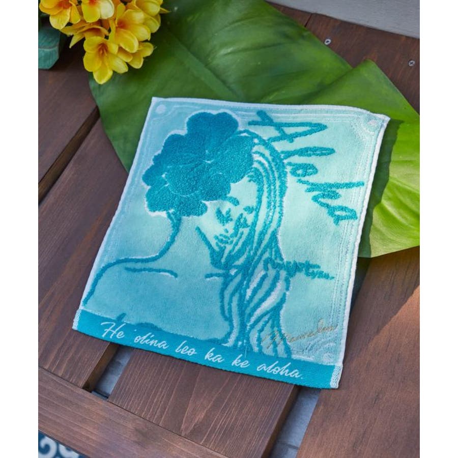 人気の'Mighty Su'アートが描かれたタオルハンカチ。He 'olina leo ka ke aloha.=「愛を込めて話せば、幸せな気持ちが生まれる」という意味のメッセージ入り。パイルの毛先をカットしたシャーリング加工によりとても肌触りのよい仕上がりです。美しく咲くハイビスカスを身に付けたフラガールのデザインが魅力的。大切なOhanaへのプレゼントにも最適です。