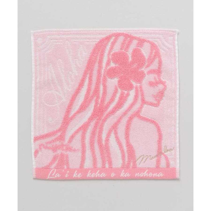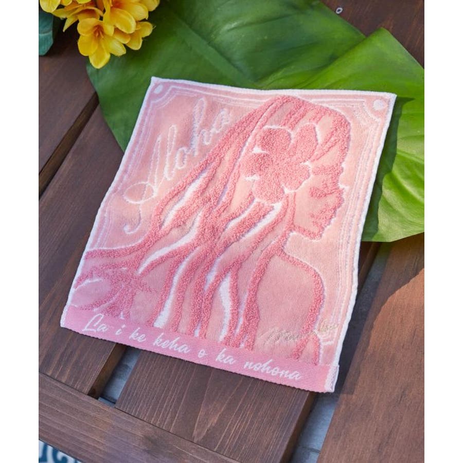 人気の'Mighty Su'アートが描かれたタオルハンカチ。La'I ke keha o ka nohona.=「平穏な人生は素晴らしいもの」という意味のメッセージ入り。パイルの毛先をカットしたシャーリング加工によりとても肌触りのよい仕上がりです。可憐に咲くプルメリアを身に付けたフラガールのデザインが魅力的。大切なOhanaへのプレゼントにも最適です。