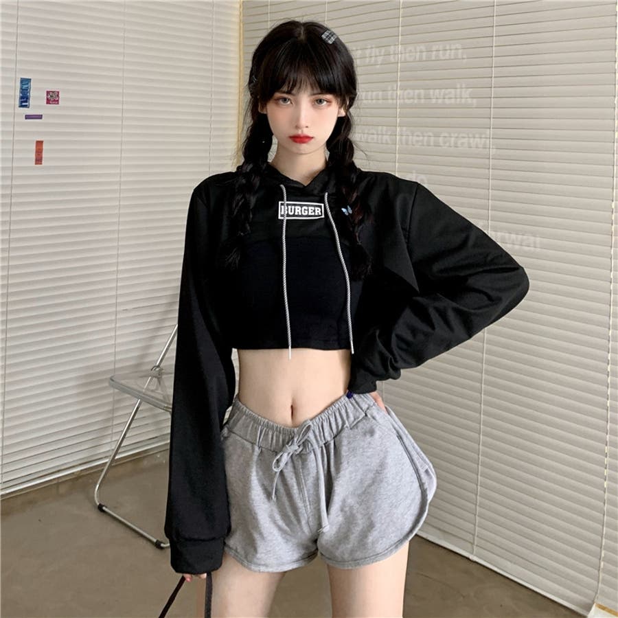 ほんとにパーカーを短く切ったのがわかる、端っこが処理されてない。