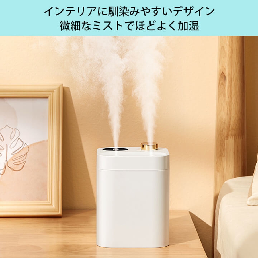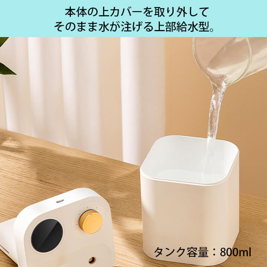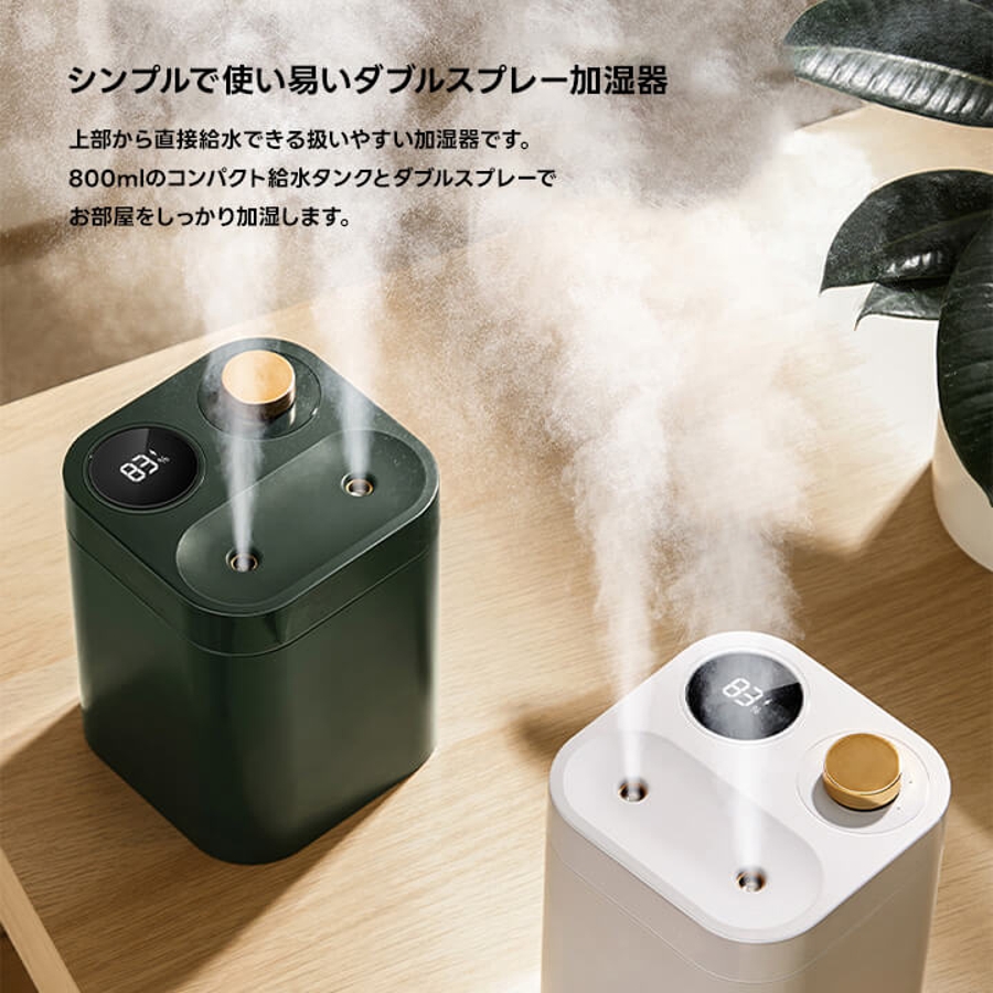 800mlのコンパクト給水タンクとダブルスプレーでお部屋をしっかり加湿します。
