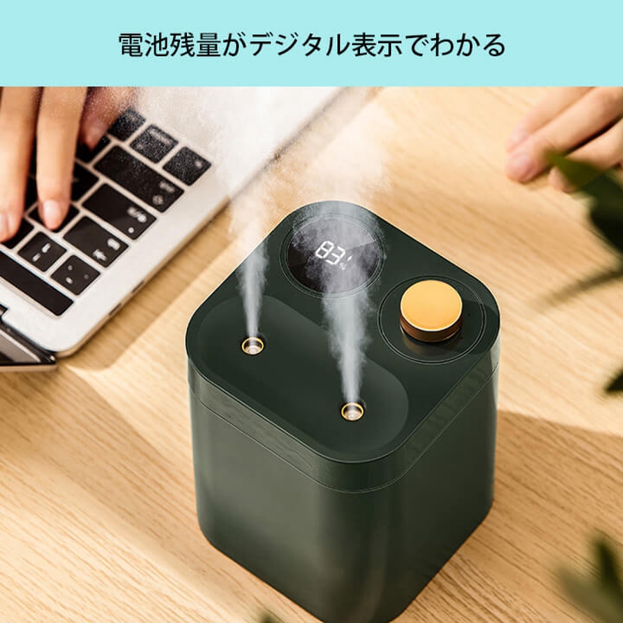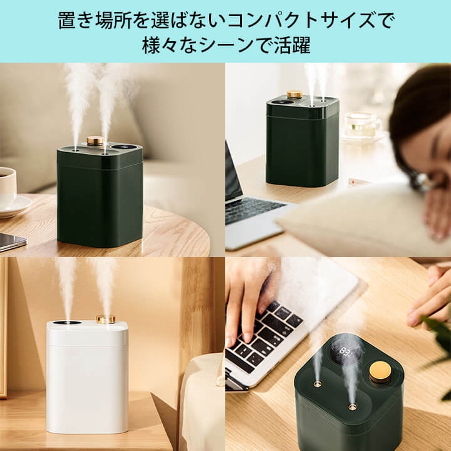 加湿器 超音波式 卓上 おしゃれ オフィス 充電式 コンパクト 小型 静音 リビング 寝室 インテリア 加湿 シンプル 使いやすい ミスト 噴霧 湿度計 デジタル お手入れ カンタン ワンタッチ 自動オフ プレゼント F ダークグリーン 深緑 ホワイト 白 bf13