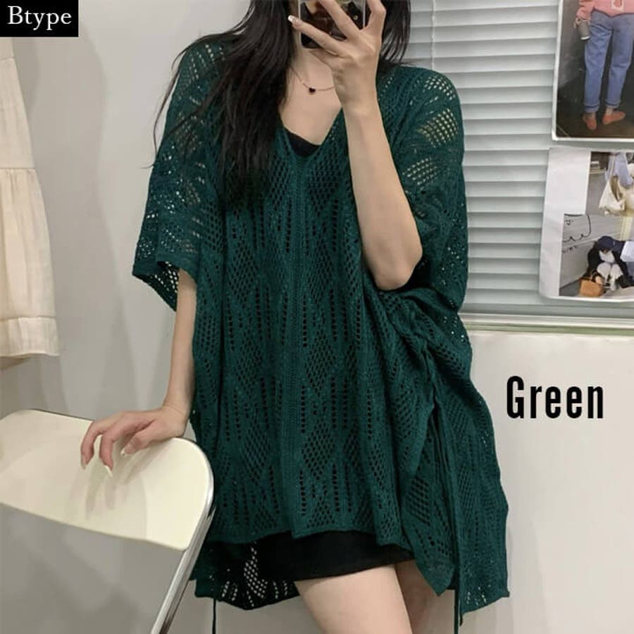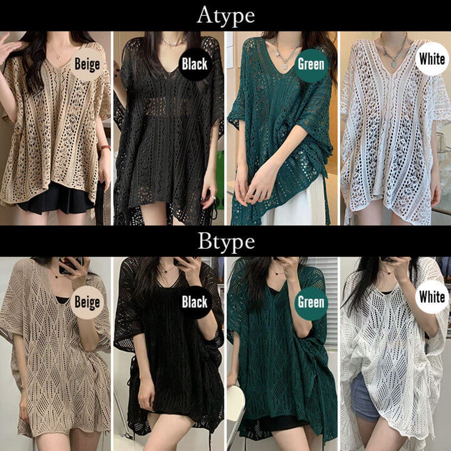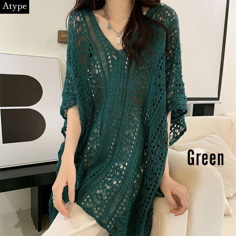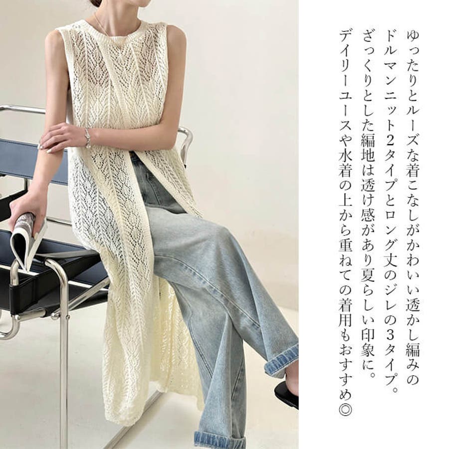 ドルマンニット サマーニット レディース トップス 透かし編み 夏 春 女性 ゆったり カジュアル ニット Vネック シースルー シアー 透け感 大人 上品 シンプル きれいめ ゆったり ドルマン 半袖 五分袖 編み柄 抜け感 20代 30代 40代 50代 10代 ベージュ ブラック グリーン ホワイト クリーム 黒 緑 白 フリーサイズ F プール 旅行 海 涼しい ロング丈 ジレ 2way rt0255