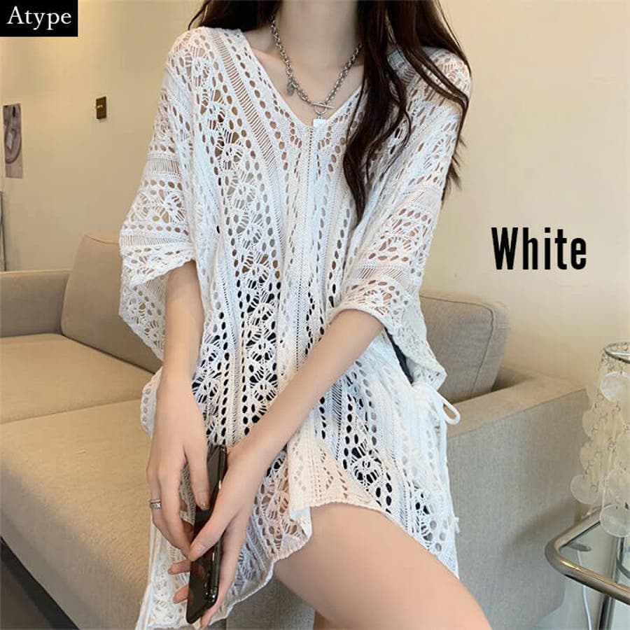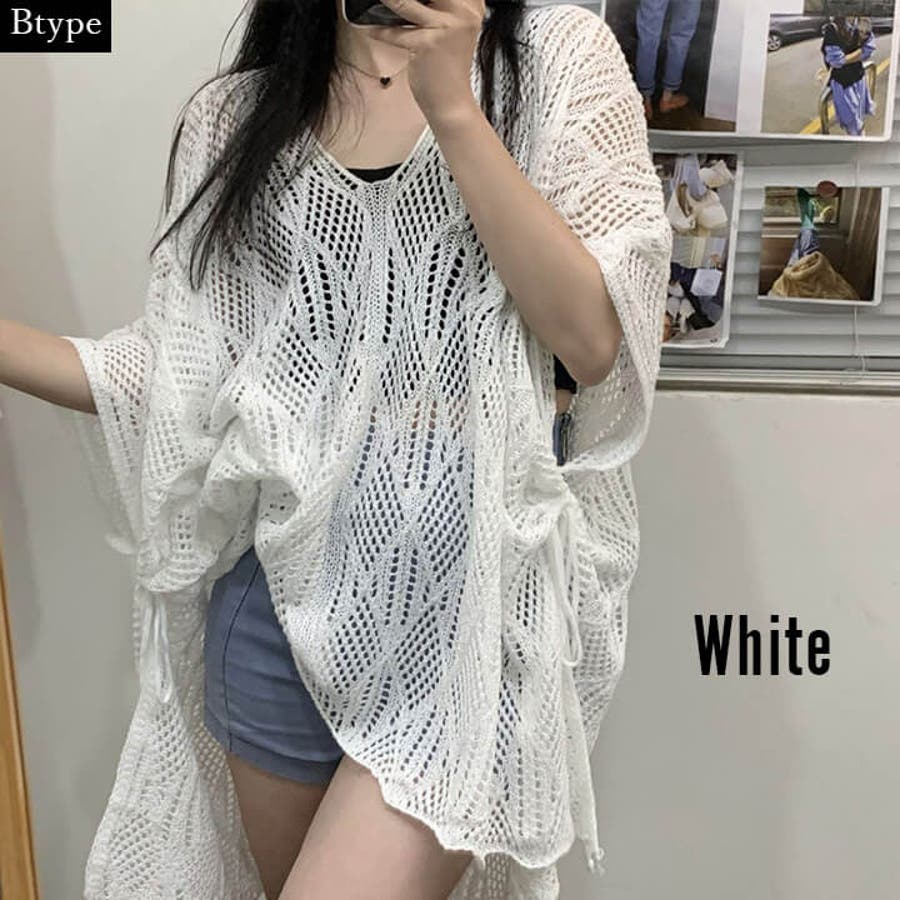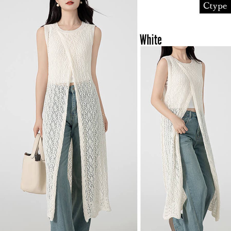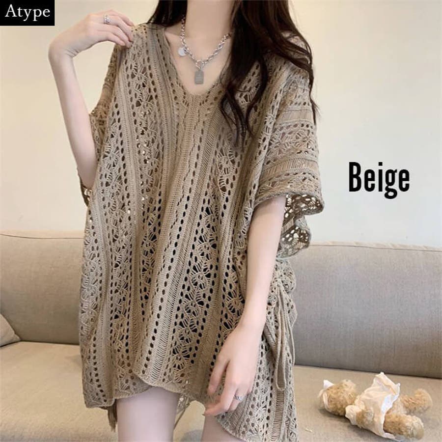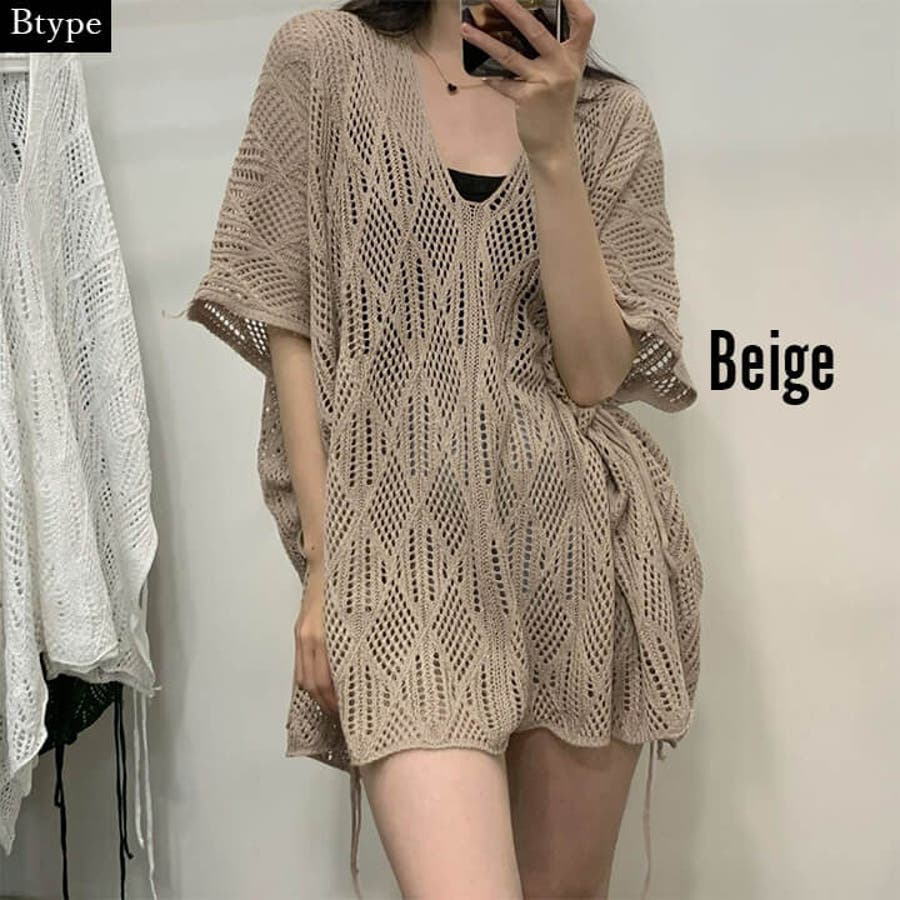 ドルマンニット サマーニット レディース トップス 透かし編み 夏 春 女性 ゆったり カジュアル ニット Vネック シースルー シアー 透け感 大人 上品 シンプル きれいめ ゆったり ドルマン 半袖 五分袖 編み柄 抜け感 20代 30代 40代 50代 10代 ベージュ ブラック グリーン ホワイト クリーム 黒 緑 白 フリーサイズ F プール 旅行 海 涼しい ロング丈 ジレ 2way rt0255