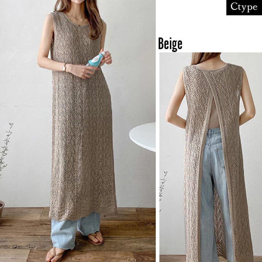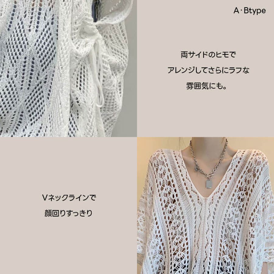 ざっくりとした編地は透け感があり夏らしい印象に。