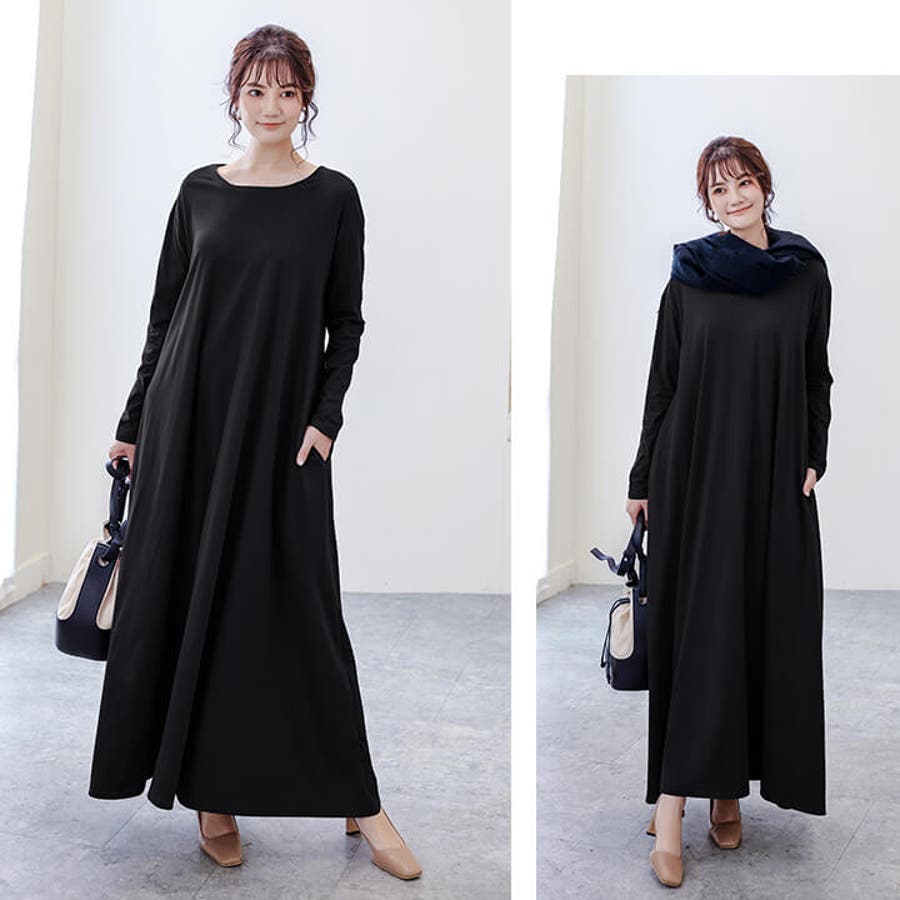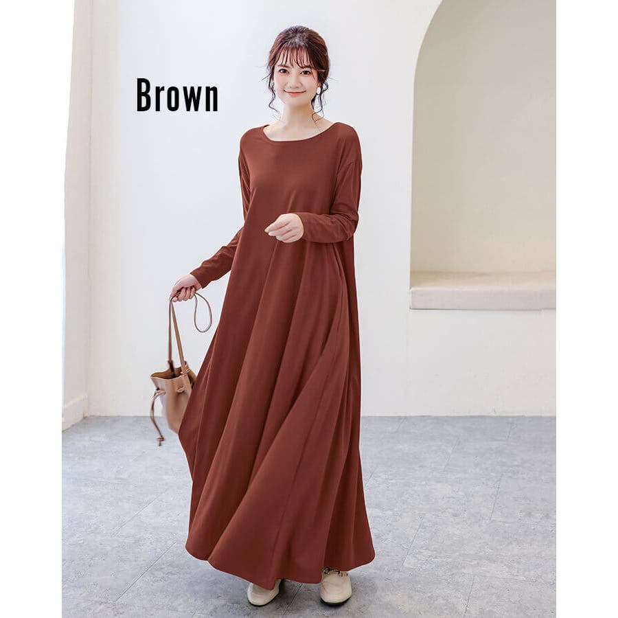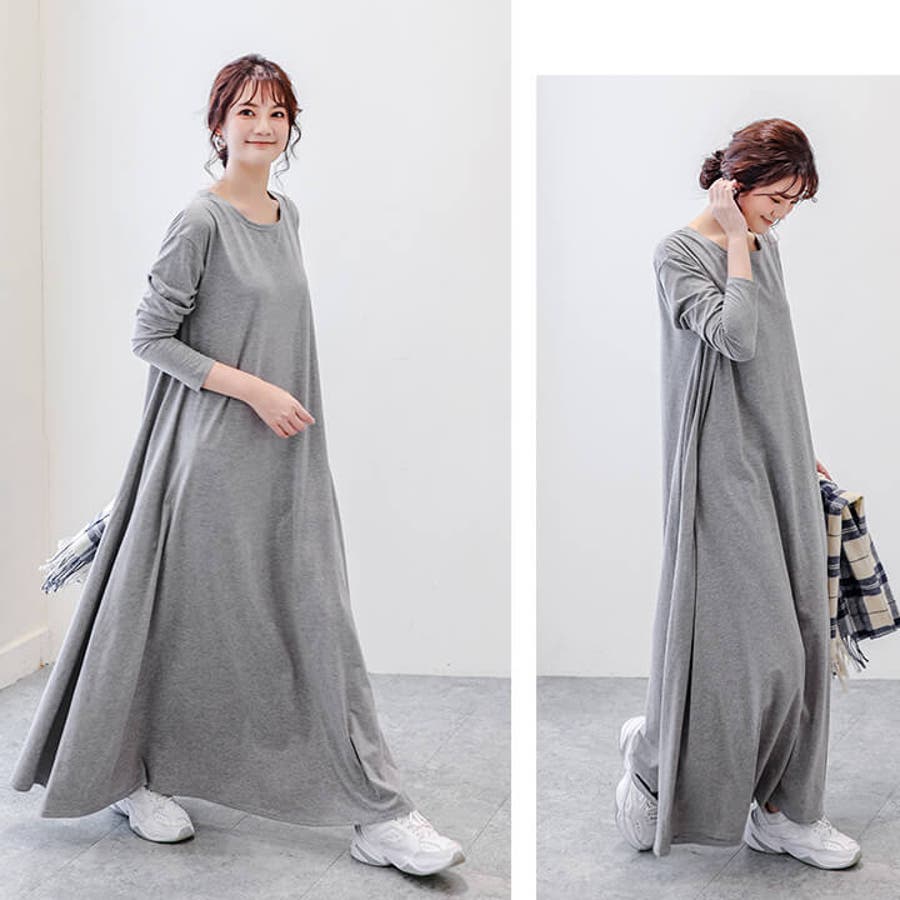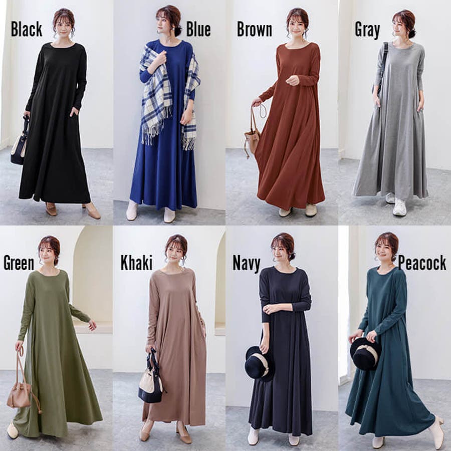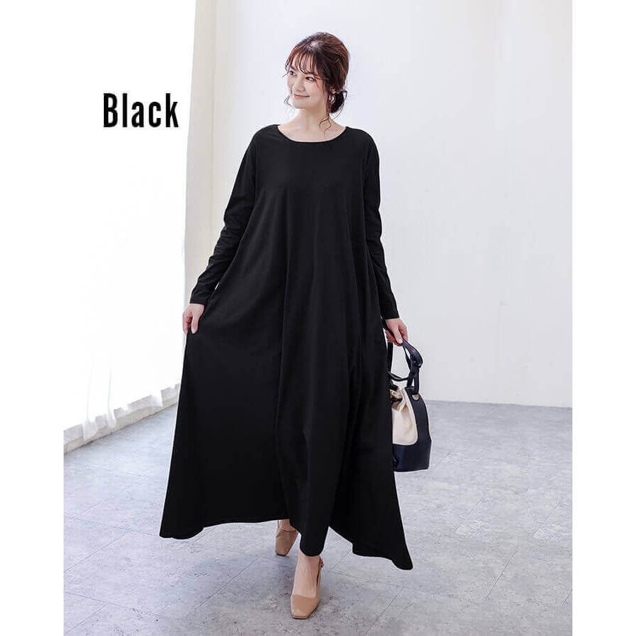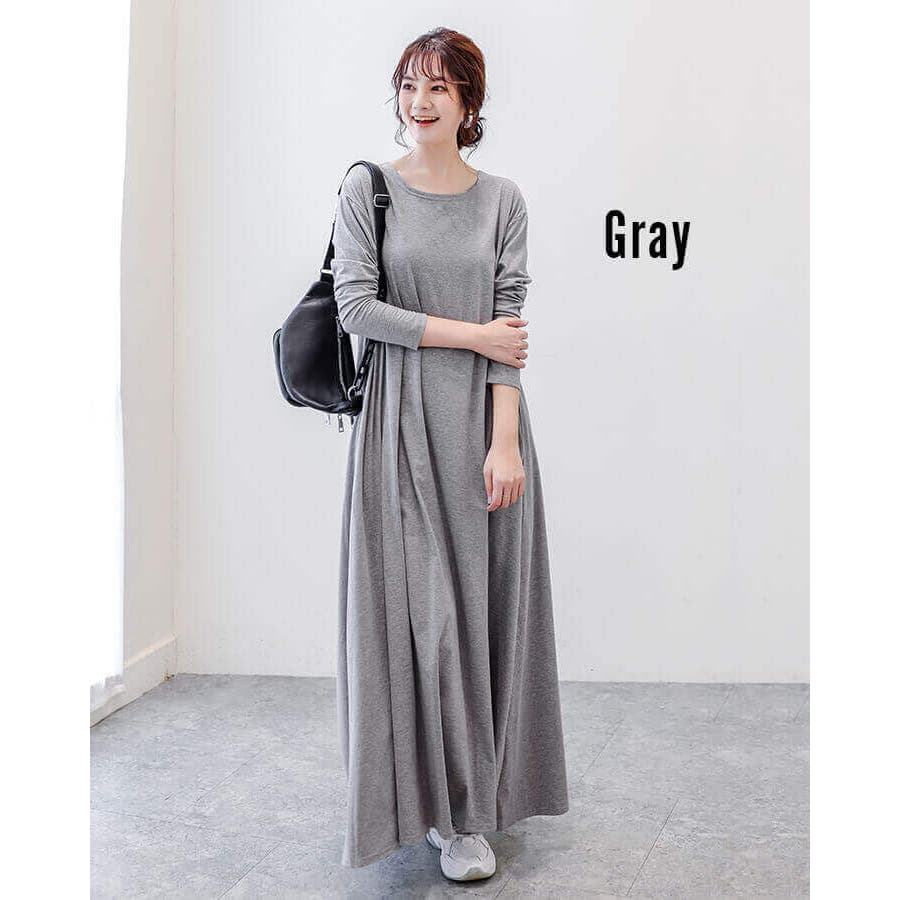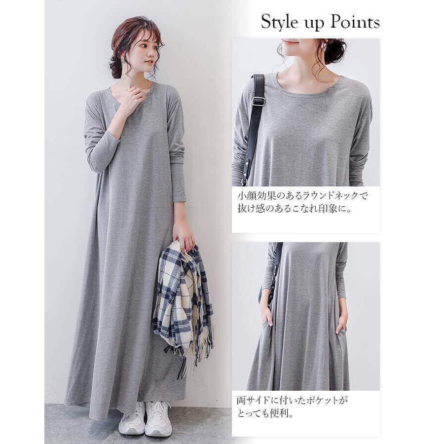 マキシ丈ワンピ Tシャツ ロング 長袖 ロンT 大人カジュアル ヌケ感 ワンピース 無地 シンプル マキシワンピース ドロップショルダー ビッグT ロングT Tee クルーネック 細見え 二の腕カバー 長め丈 ゆるワンピ フレア 抜け感 くすみカラー ブラック ブルー ブラウン グレー グリーン カーキ ネイビー ピーコック