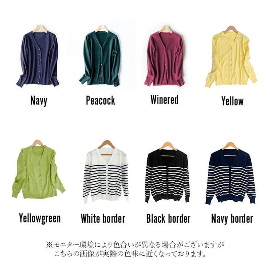 カーディガン ニット 肌触りが良い 柔らかい ゆったり 着心地 シンプル Uネック Vネック 2タイプ コーディネート バリエーション 合わせやすい 大きいサイズ有 20代 30代 40代 大人 ママ カジュアル レディース ボーダー ベージュ 肌色 ブラック 黒 ブラウン 茶 コーヒー ダークグリーン 緑 グレー 灰色 ラベンダー 紫 ネイビー 紺 藍 ピーコック ワインレッド 赤 ブルー 青 イエロー 黄 イエローグリーン 黄緑 袖あり 長袖 M L XL 2XL tops31