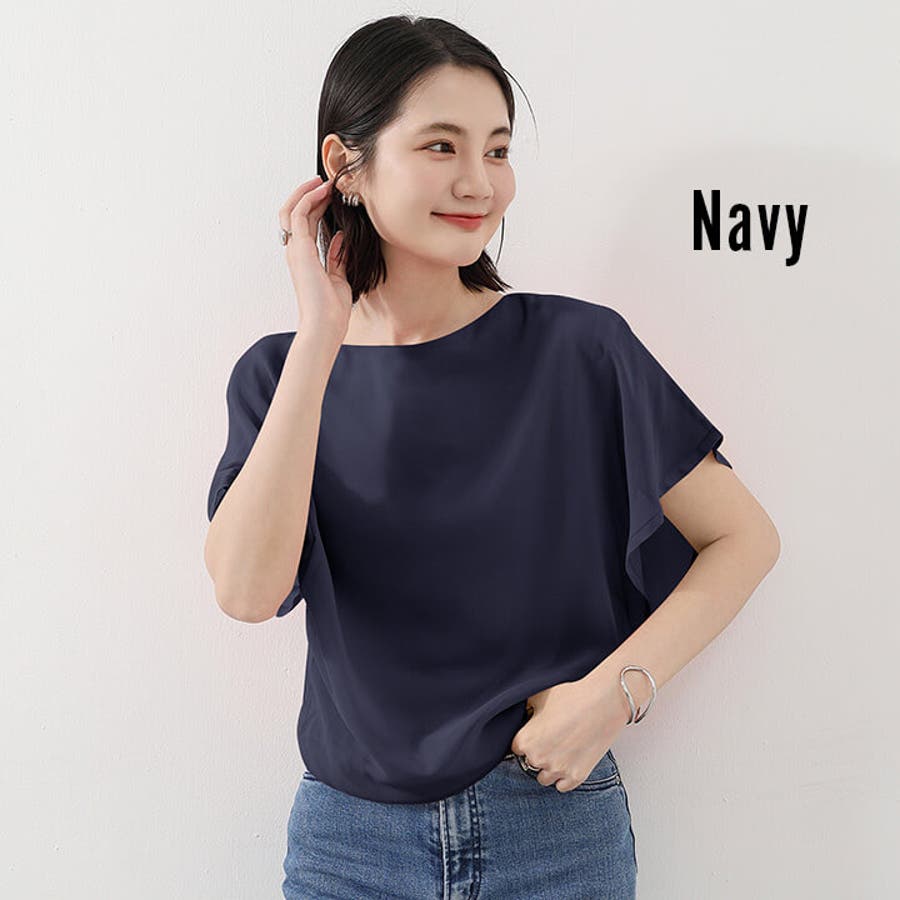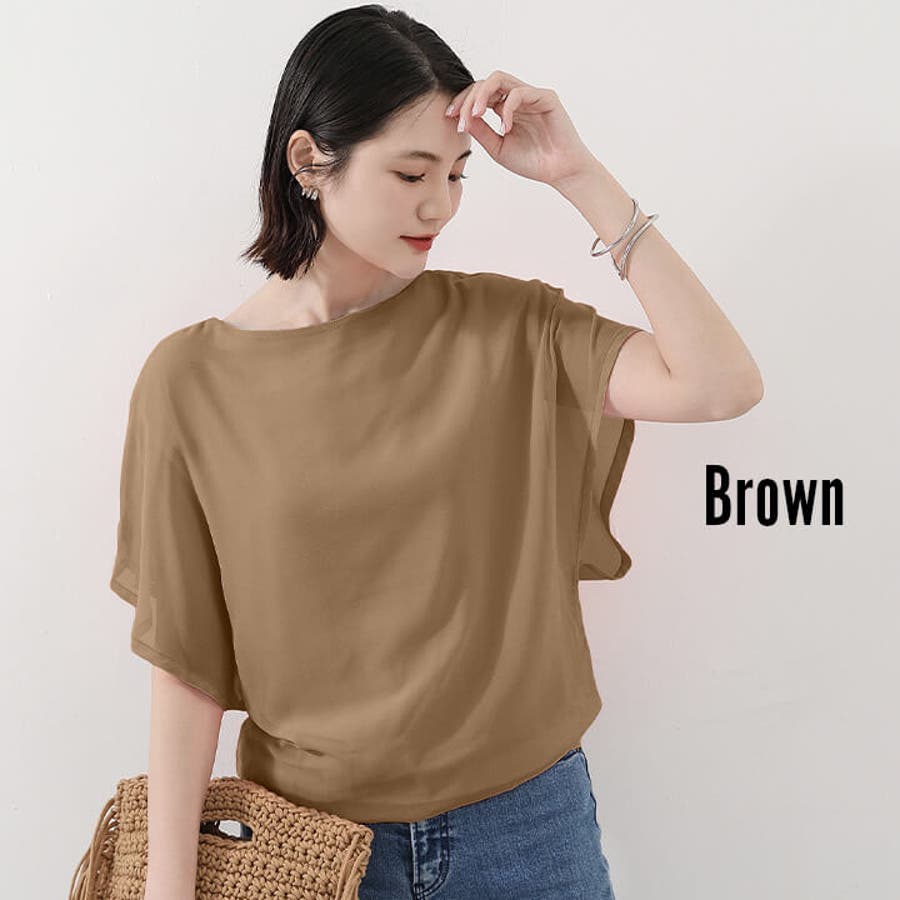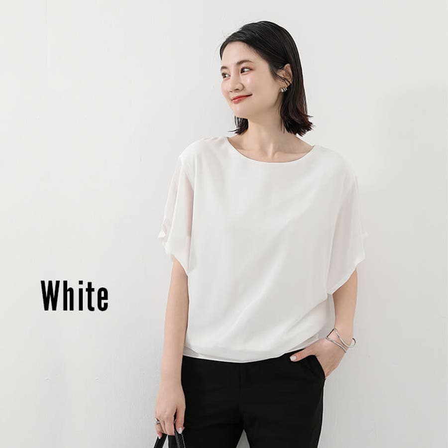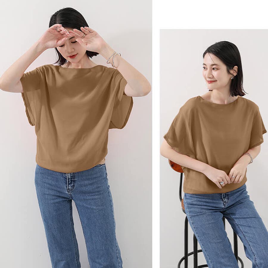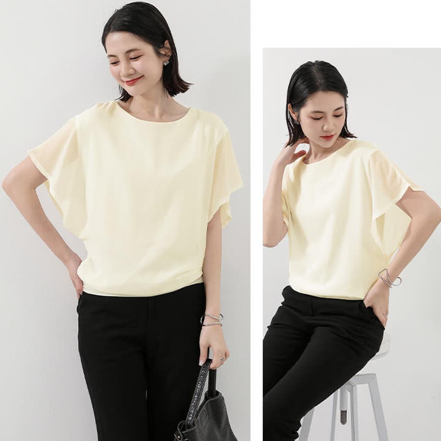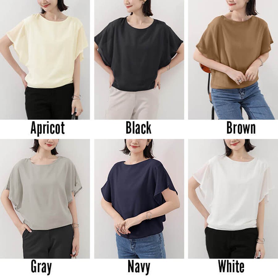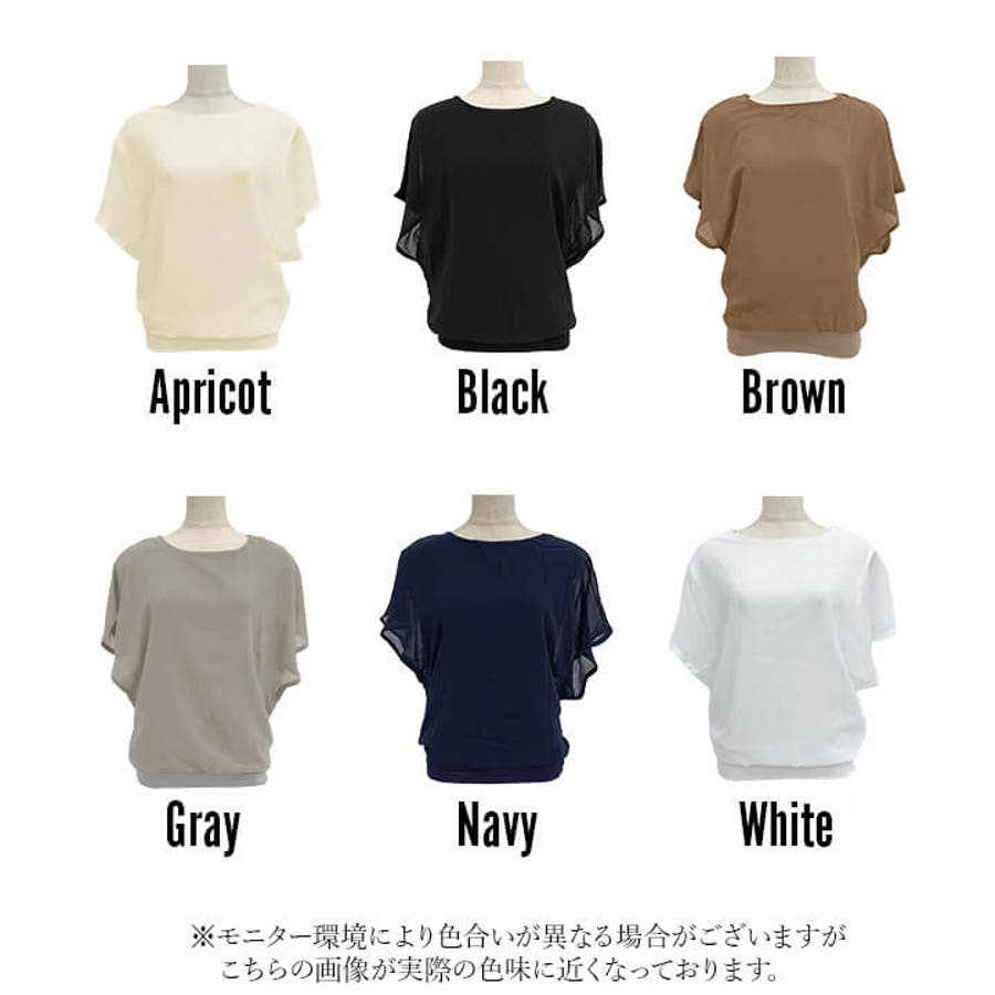ブラウス シフォンブラウス シースルー レディース カジュアル 春 夏 パフスリーブ 大人カジュアル かわいい スタイリッシュ ゆったり トップス きれいめ 体型カバー 二の腕カバー 普段着 半袖 袖あり フリル Uネック ラウンドネック シンプル オフィス アプリコット 杏 肌色 ブラック 黒 ブラウン 茶色 グレー 灰色 ネイビー 紺 ホワイト 白 M L 10代 20代 30代 40代 50代 60代 9号 11号 yc3515