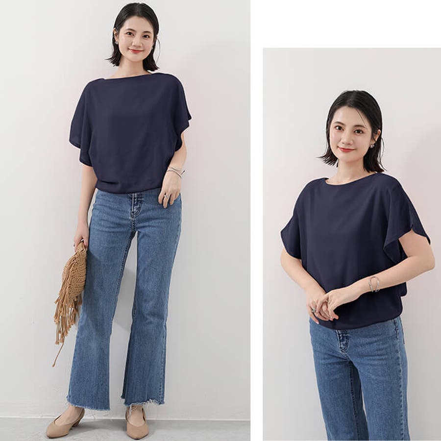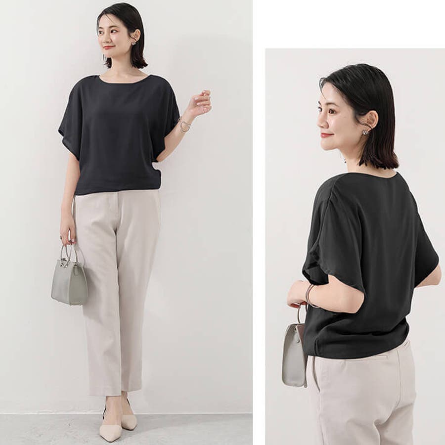 鎖骨下のUネックで女性らしい抜け感を演出。