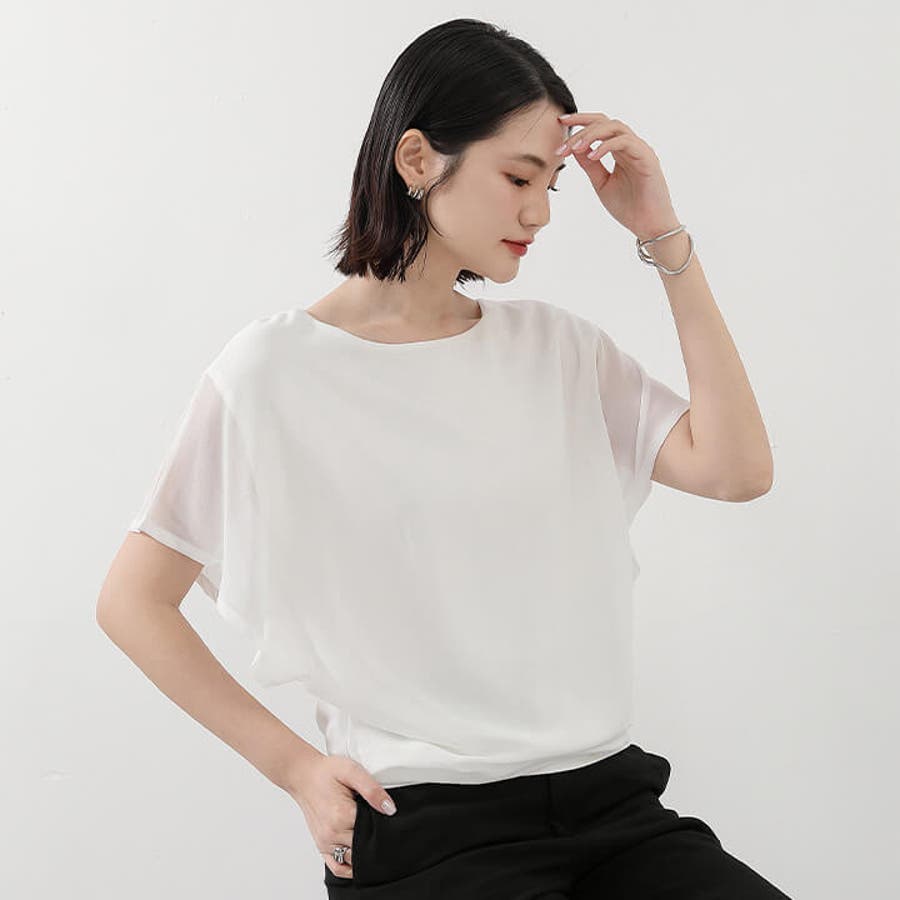 シースルーの袖の透け感で涼しげに着こなせます♪