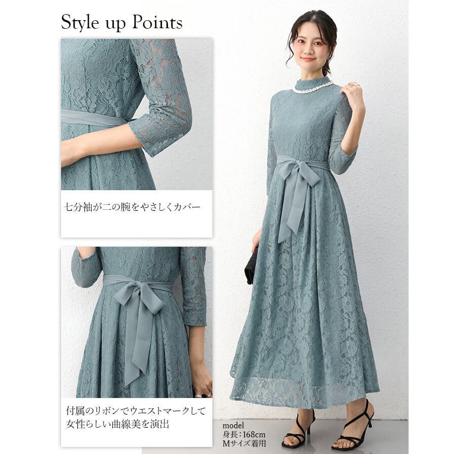ドレス パーティードレス ロングドレス ロング ロング丈 シフォン ハイネック タック 結婚式 ワンピース 大きいサイズ 袖あり パーティドレス チュール 結婚式ドレス お呼ばれドレス フォーマル レース マキシ きれいめ 楽チン ゆったり 可愛い バックスタイル お呼ばれ 二次会 謝恩会 成人式 披露宴 パーティー レディース 花柄 花柄レース 七分袖 半袖 長袖 ブラック グリーン ブルー ブルーグレー ダークグレー グレー ネイビー ラベンダー 黒 緑 青 灰色 紺色 ycpt05a 9号 11号 13号