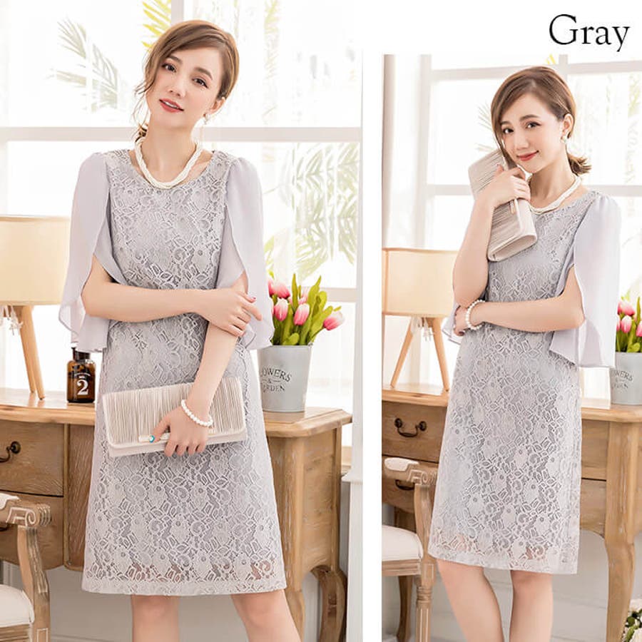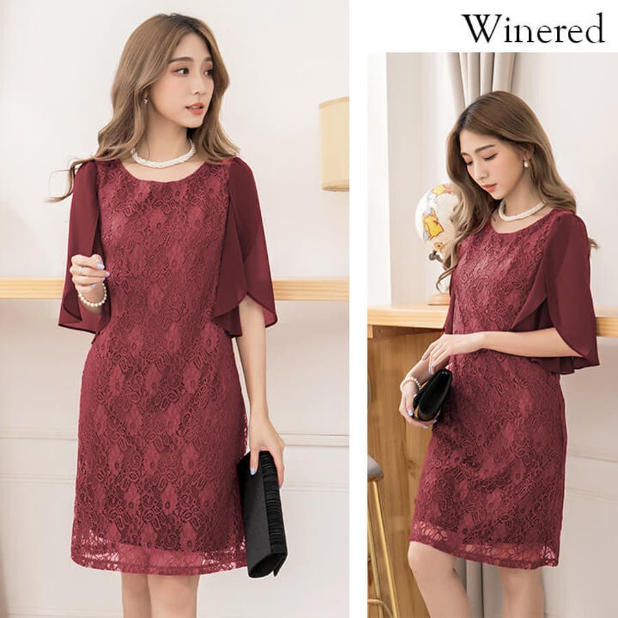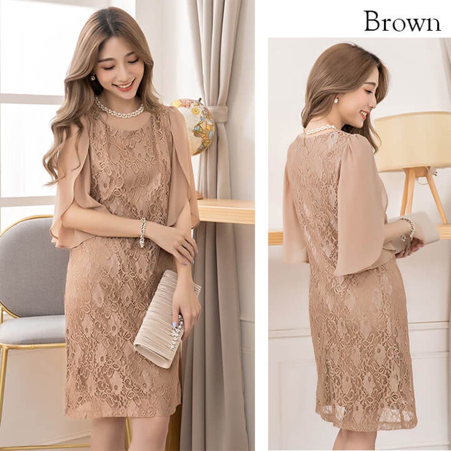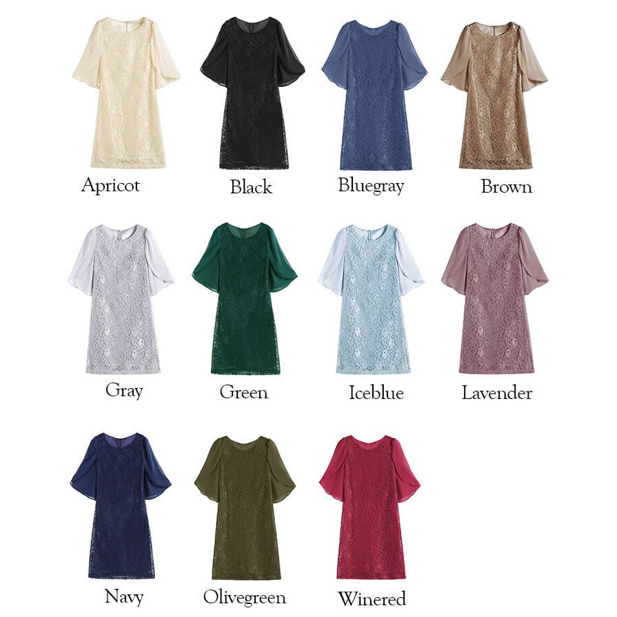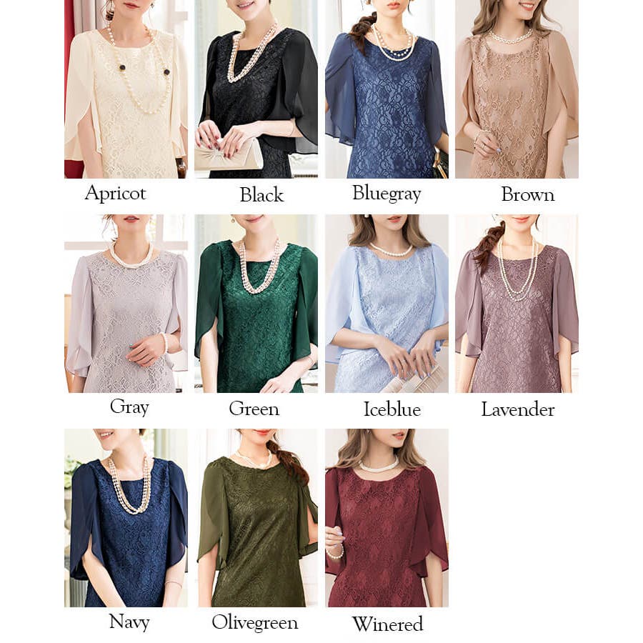パーティードレス 結婚式 ワンピース レディース 大きいサイズ 20代 30代 パーティドレス ミディアム ミディアムドレス 膝丈 膝上 クルーネック レース 透け感 二の腕カバー 体型カバー 大きいサイズ エレガント 大人 フォーマル 二次会 演奏会 謝恩会 同窓会 アプリコット ブラック 黒 ブルーグレー 青 ブラウン 茶色 グレー 灰 グリーン 緑 アイスブルー 水色 ラベンダー 紫 ネイビー 紺 オリーブグリーン 深緑 ワインレッド 赤 袖あり S M L XL 2XL yj188099