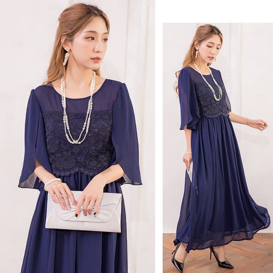 パーティードレス 結婚式 ワンピース 大きいサイズ有 20代 30代 パーティドレス ロング ロングドレス フォーマル レディース 二次会 演奏会 謝恩会 同窓会 レース ブラック 黒 ブルーグレー グレー 灰色 ラベンダー マスタード 辛子色 黄色 ネイビー 紺 袖あり シフォン yj188336 7号 9号 11号 13号 15号