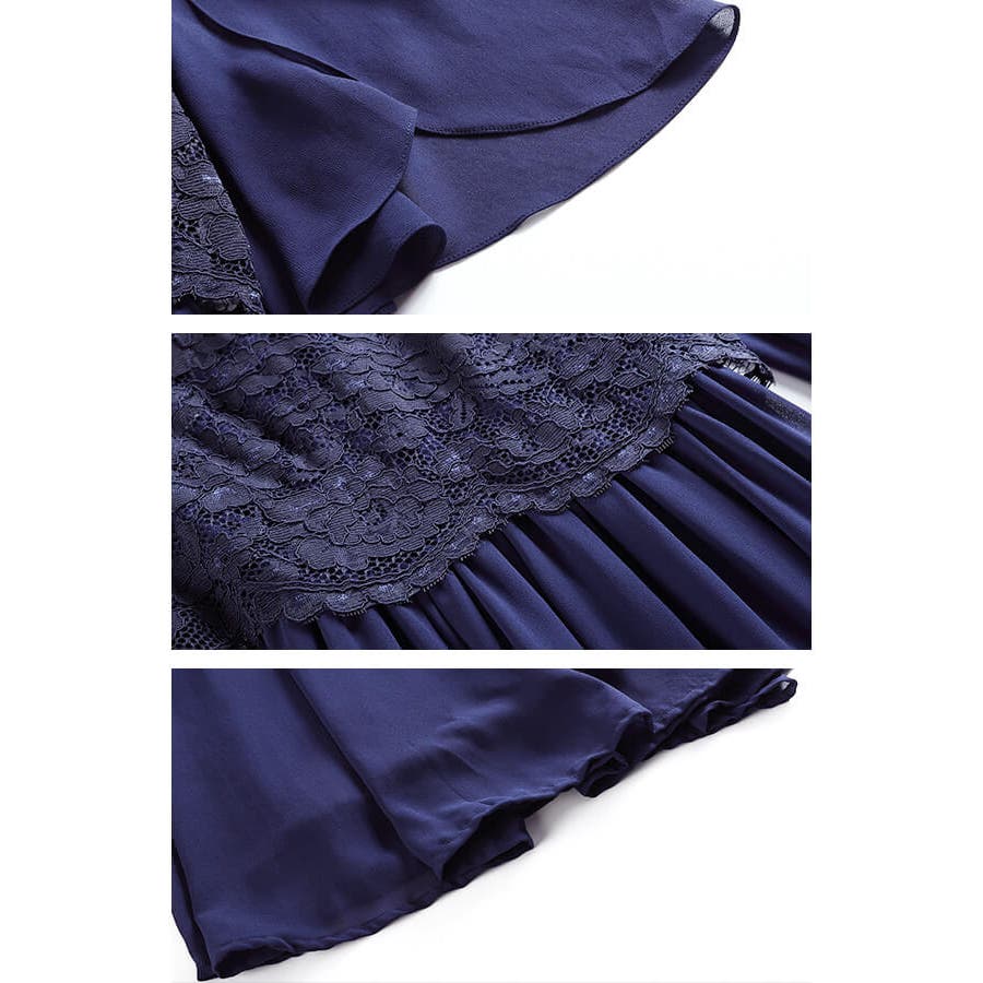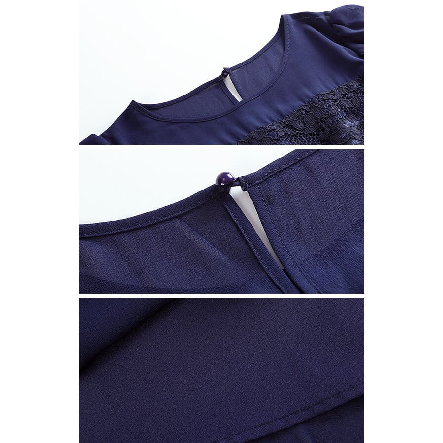 シフォンスリーブが上品に肌を見せながらも二の腕を自然にカバー。