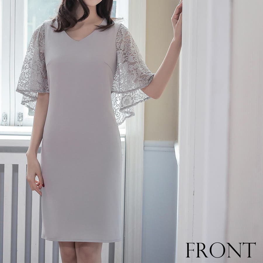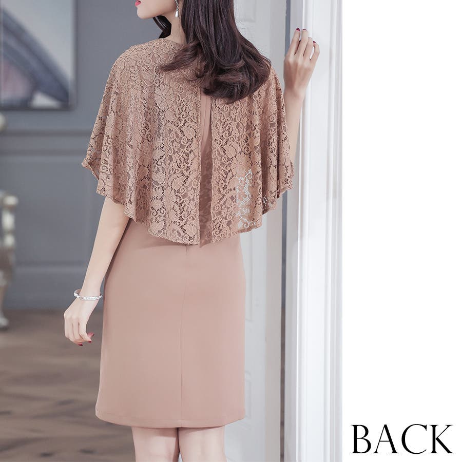 パーティードレス ワンピース 結婚式 お呼ばれ フォーマル ドレス ミディアム丈 ミディアムドレス ミニドレス ミディアムワンピース レース Vネック レース ケープ 袖あり タイト 花柄 二の腕カバー 半袖 二次会 成人式 同窓会 謝恩会 披露宴 卒業式 入学式 食事会 きれいめ シンプル 上品 大人 10代 20代 30代 40代 50代 zc00218