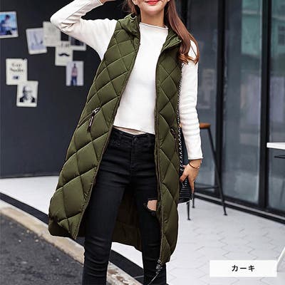 | 商品説明 | 中綿入りのロングベストは膝あたりまで寒さをガードしてくれる防寒対策にピッタリのアウターです。フードとポケットも付いているので冬の寒空も暖か。デイリー使いにピッタリなベストでレイヤードも楽しくなります。特に当店人気のすごのびスキニーパンツなどとのコーデはスタイルアップ効果も期待できます。 |