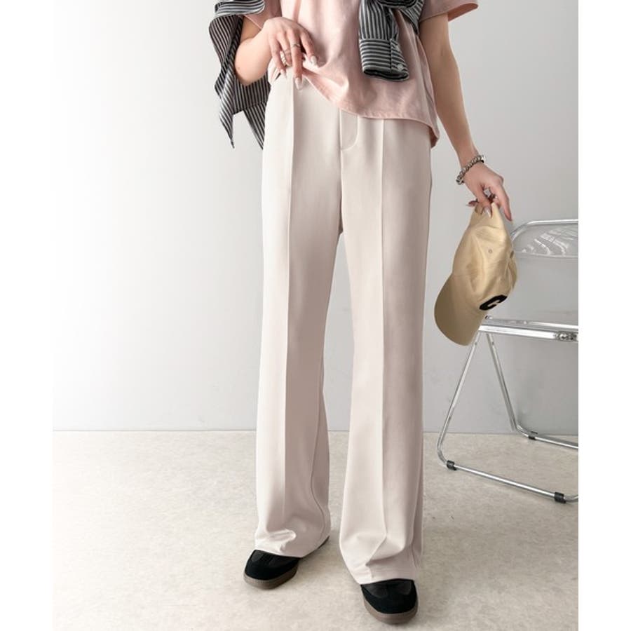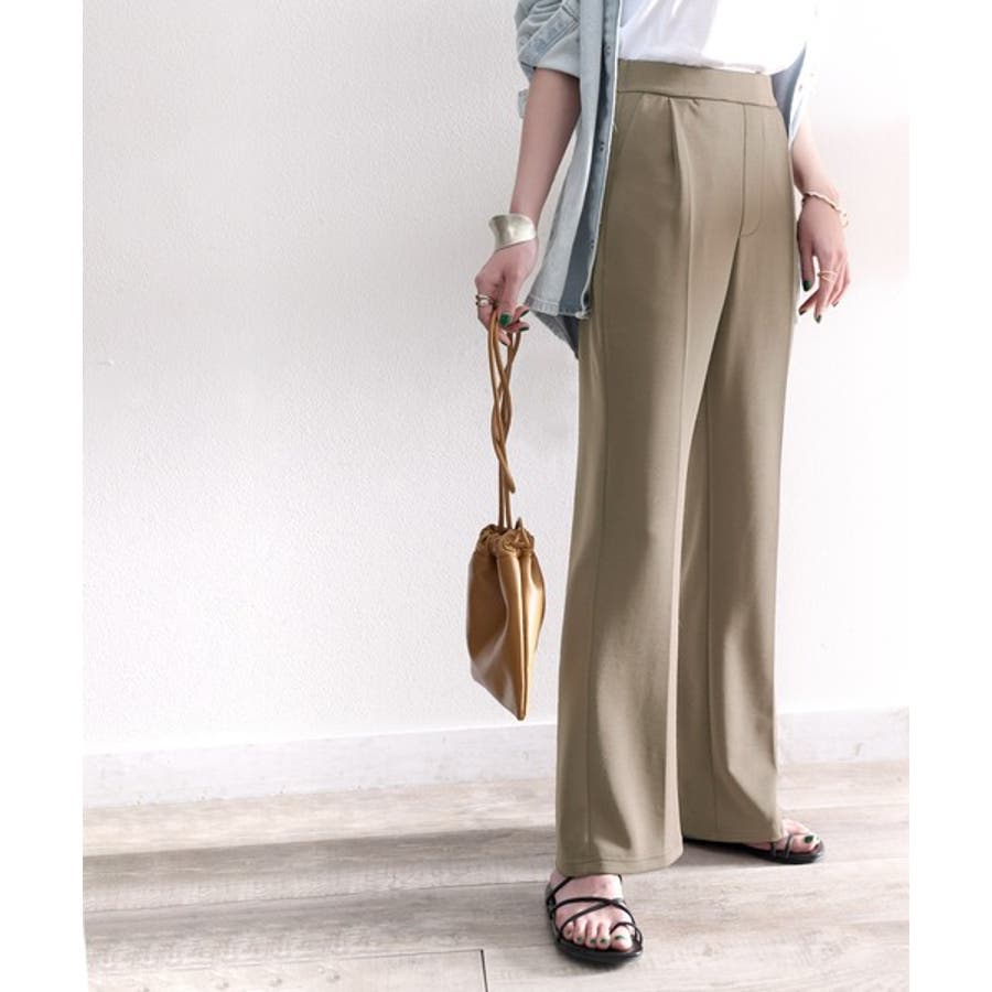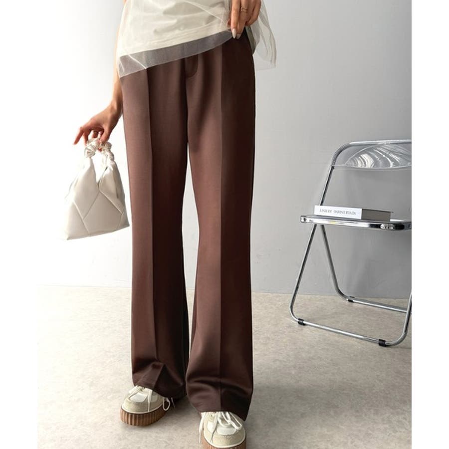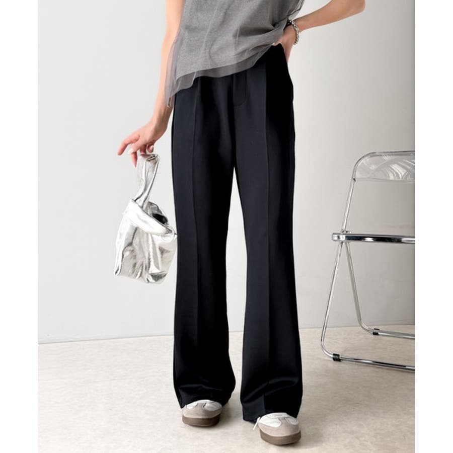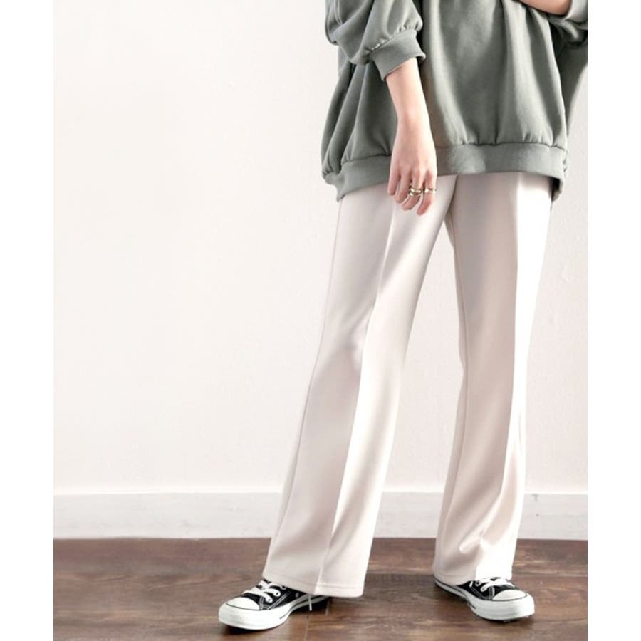 センタープレスが今っぽい。マニッシュなカットフレアパンツ。