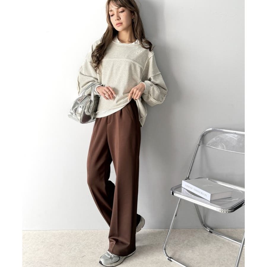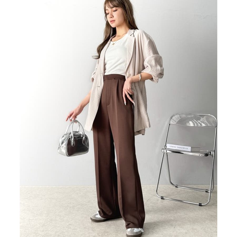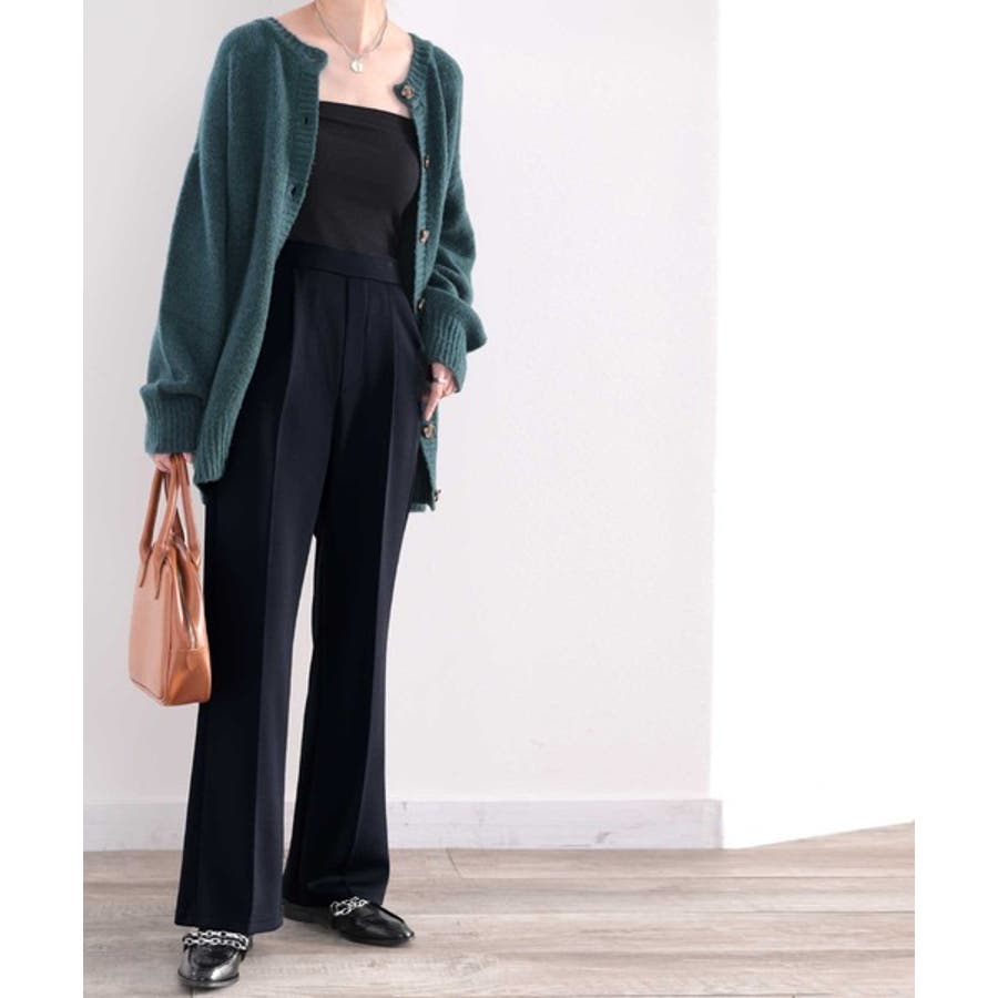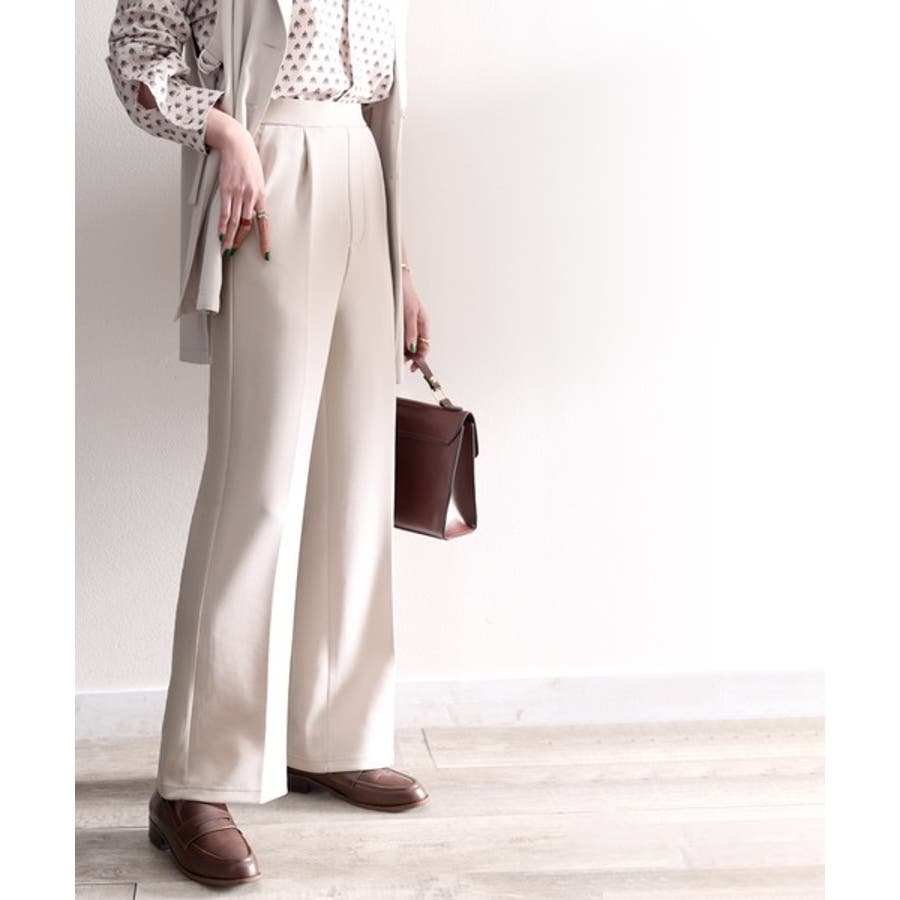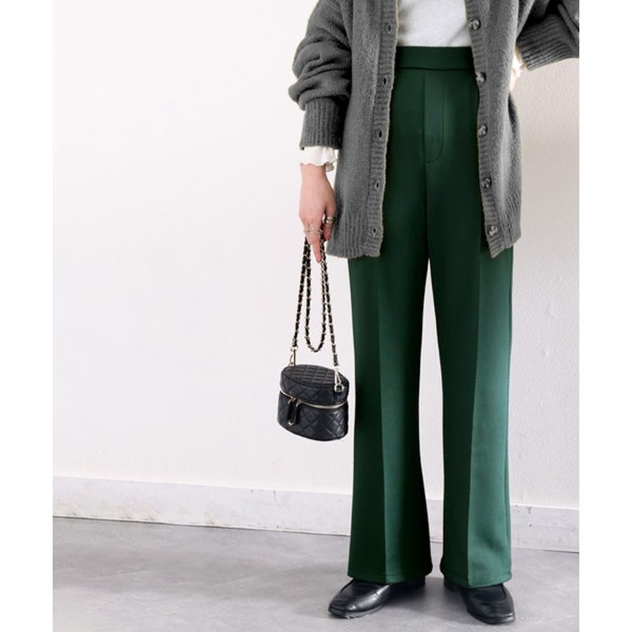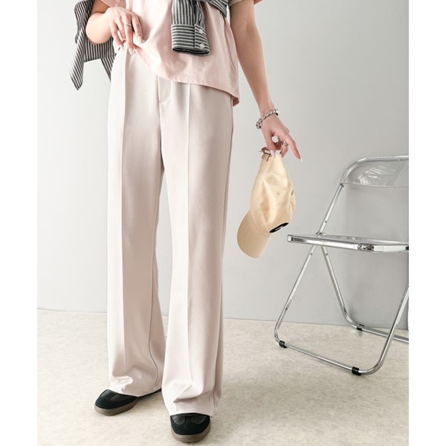 センタープレスが今っぽい。マニッシュなカットフレアパンツ。