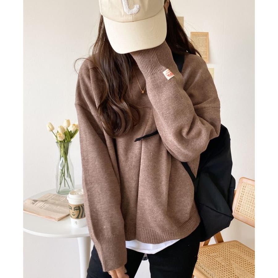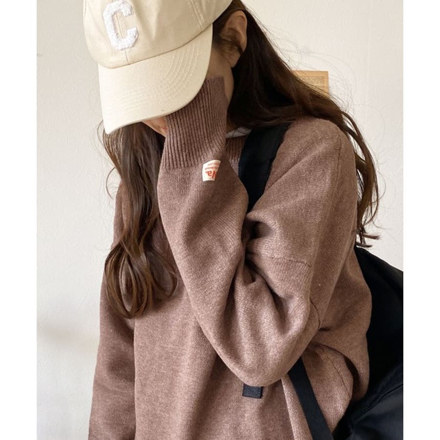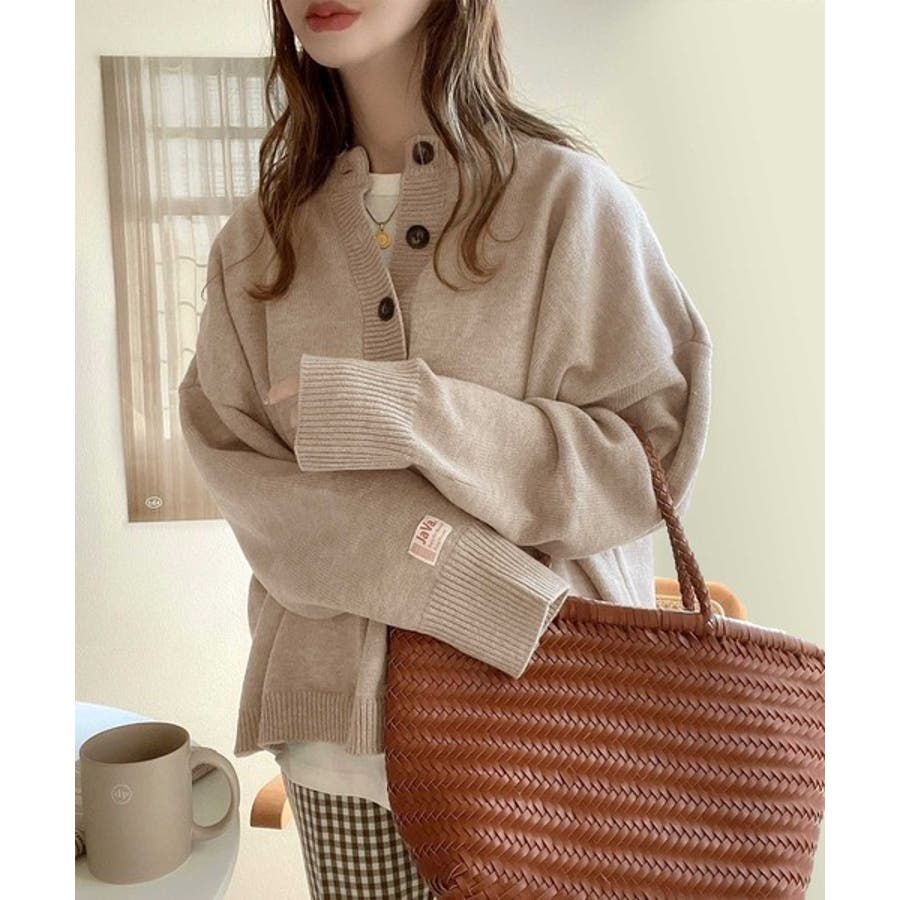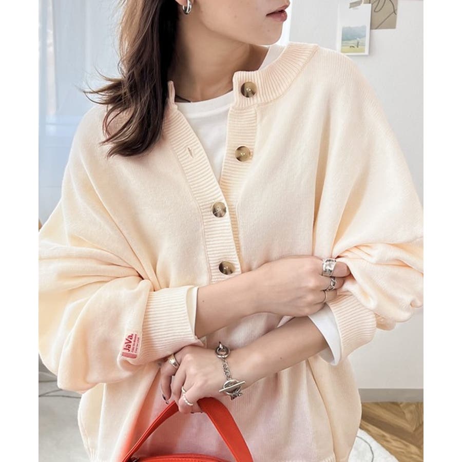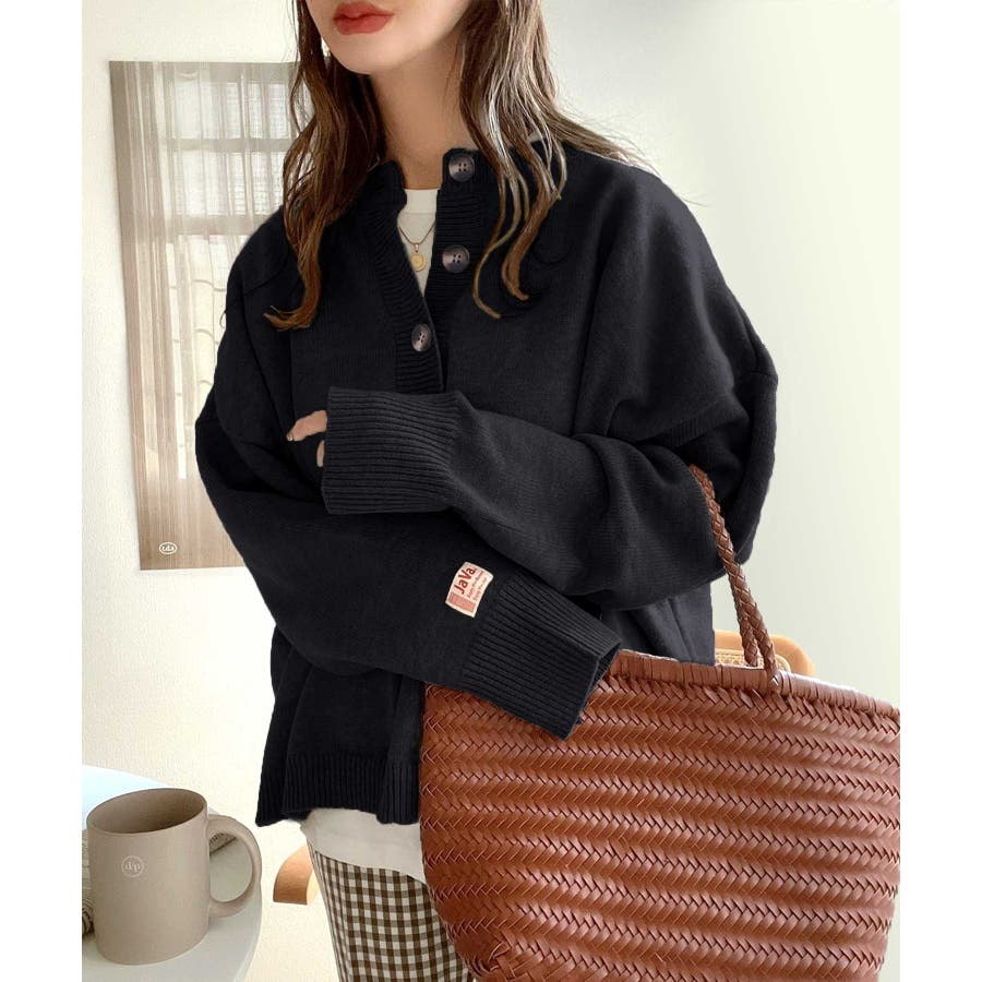袖のJaVaタグがさり気ない、お洒落なバックヘンリーの2wayニットプルオーバー。