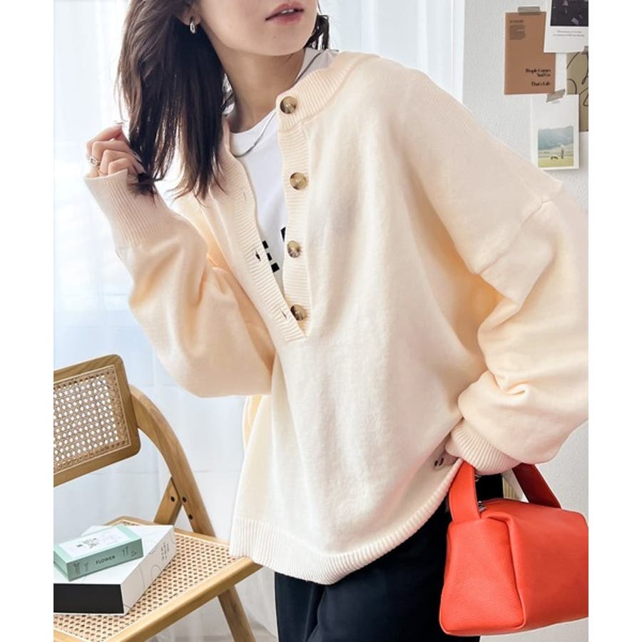 フロントボタンでもバックヘンリーでも使える2wayニットプルオーバー。