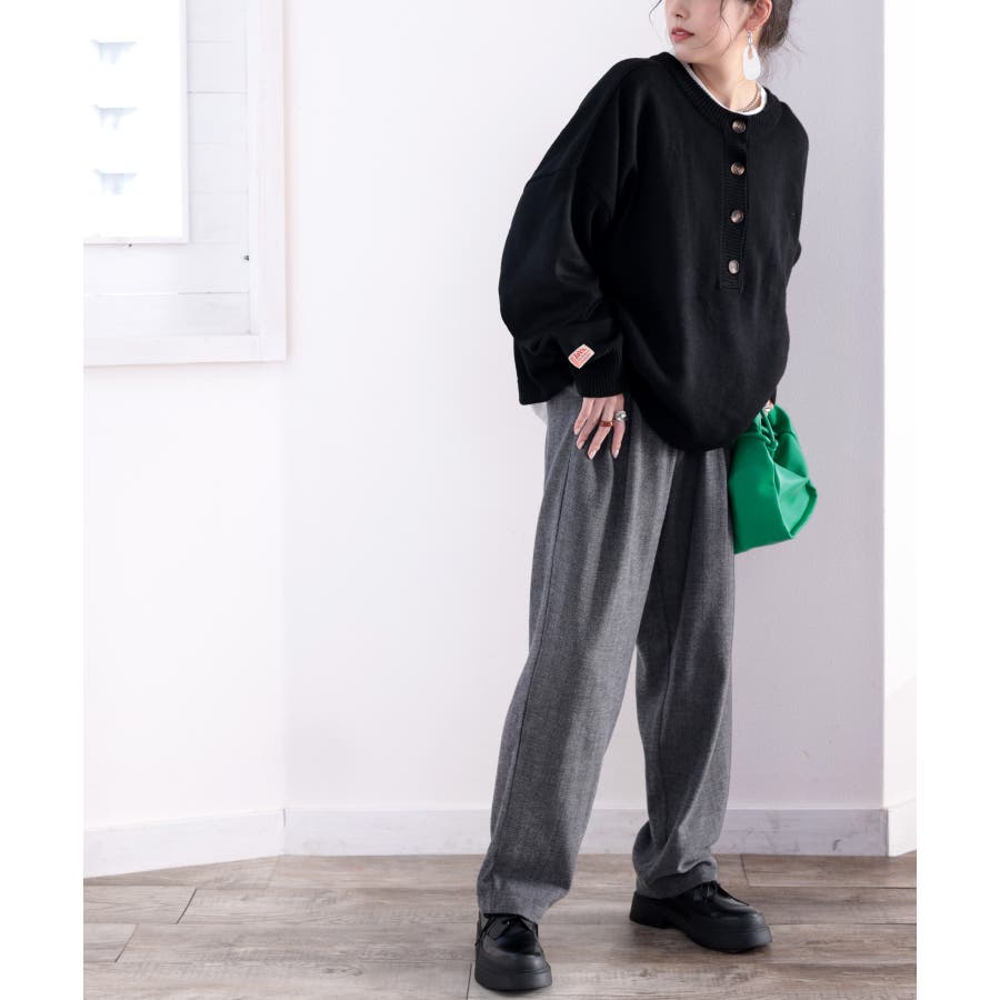 オーバーシルエットで華奢見えするバックヘンリーデザインのプルオーバー。