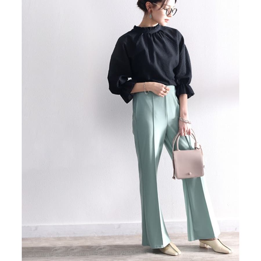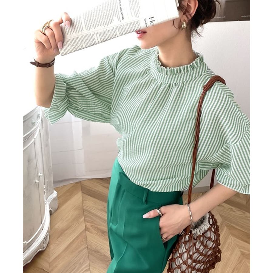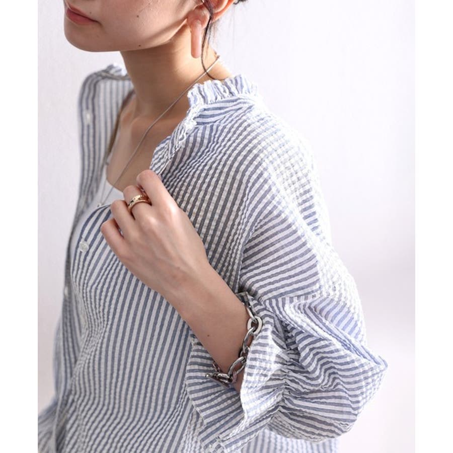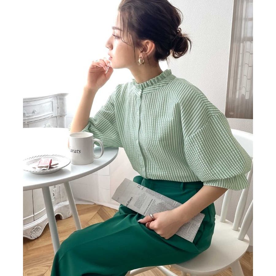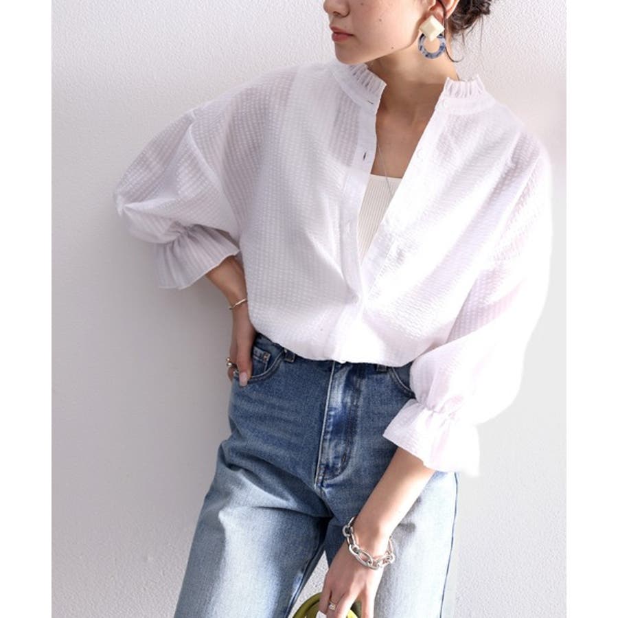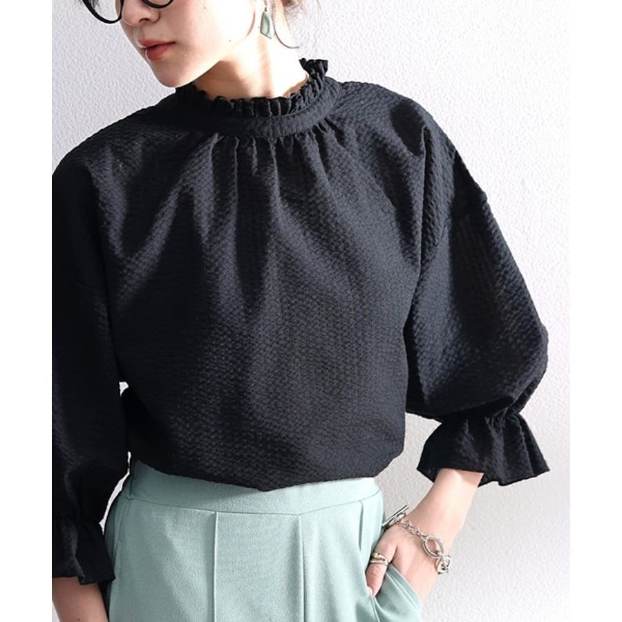 今っぽ、袖コンシャス。2wayサッカー素材ボリュームスリーブブラウス