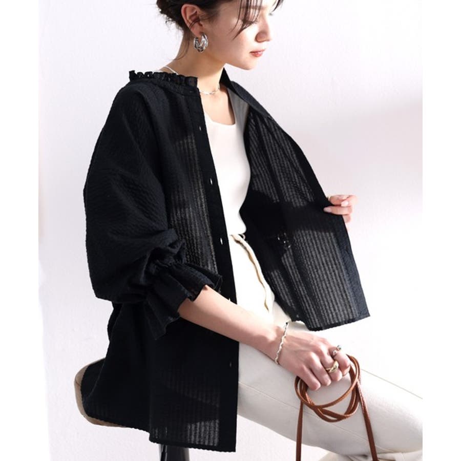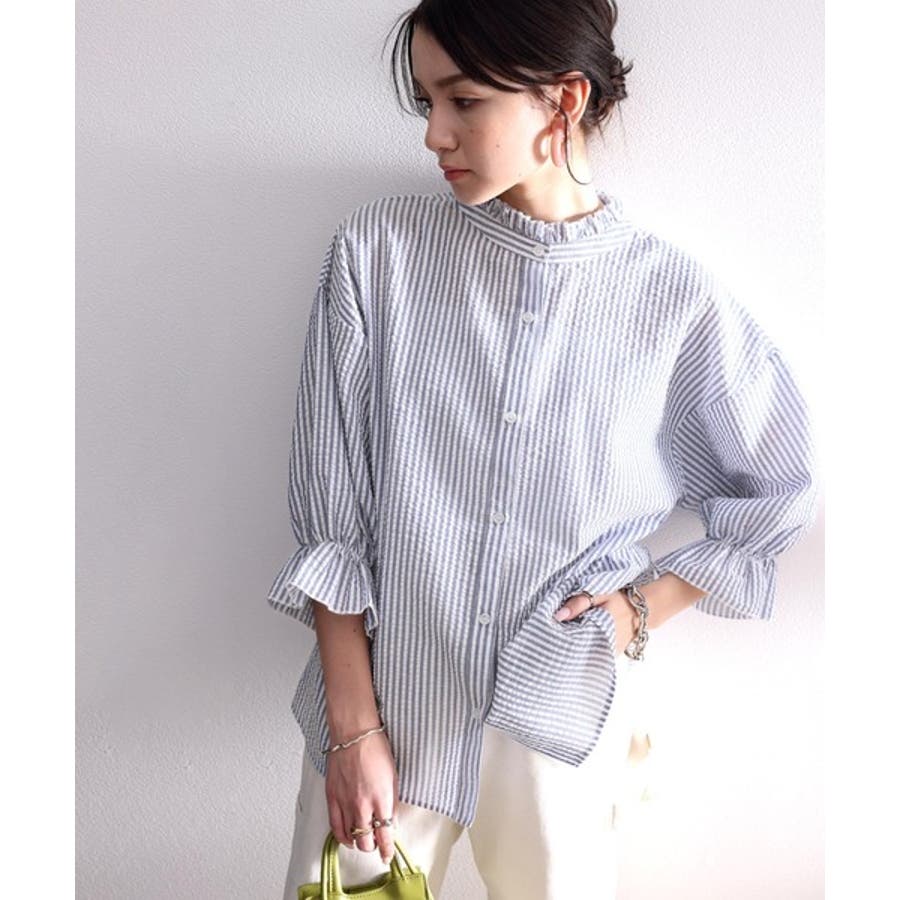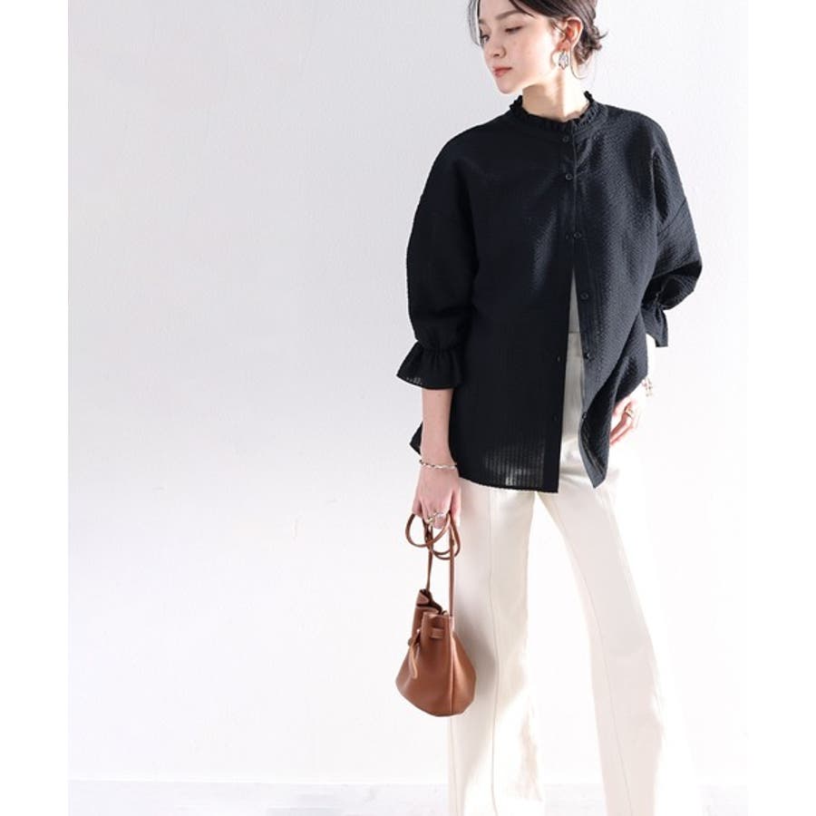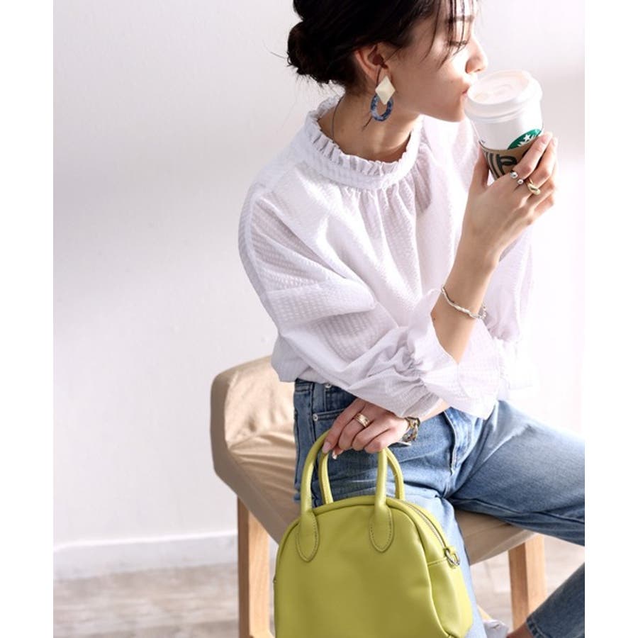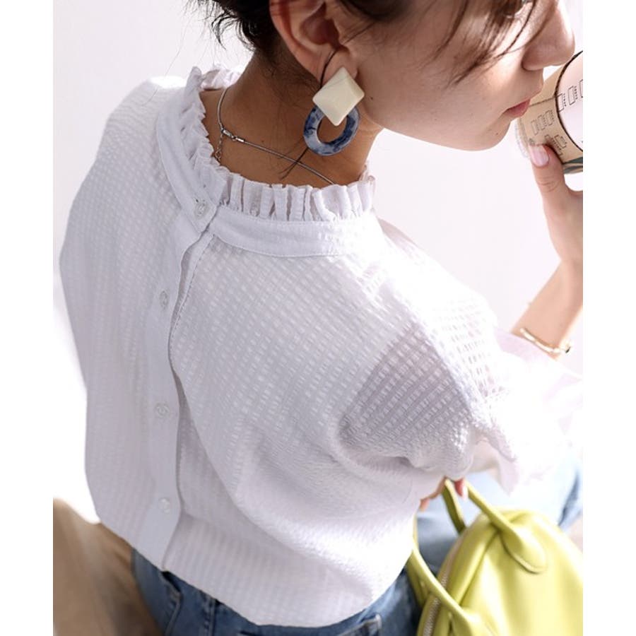 ふんわり軽やか、2wayサッカー素材ブラウス。