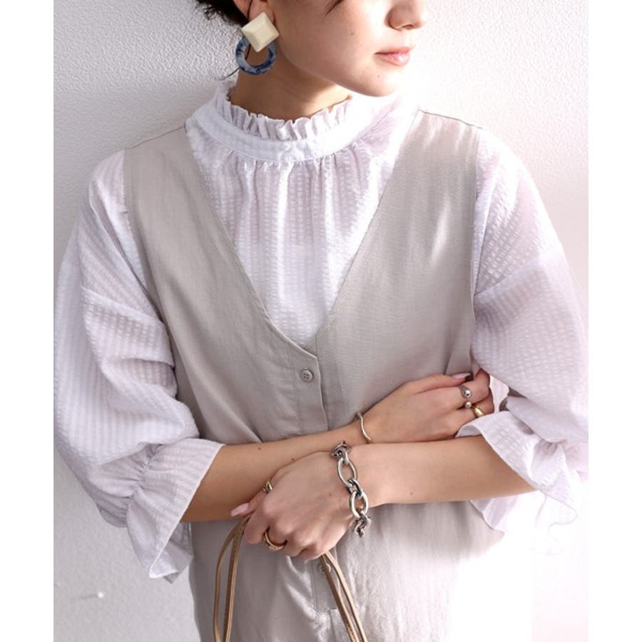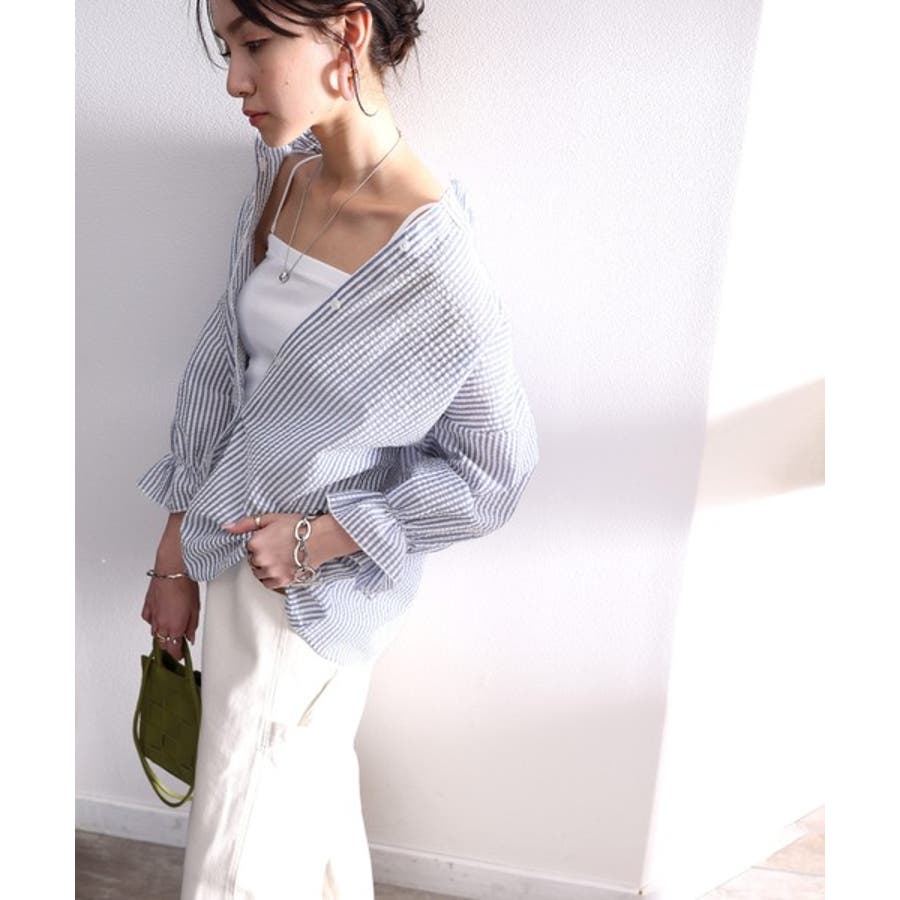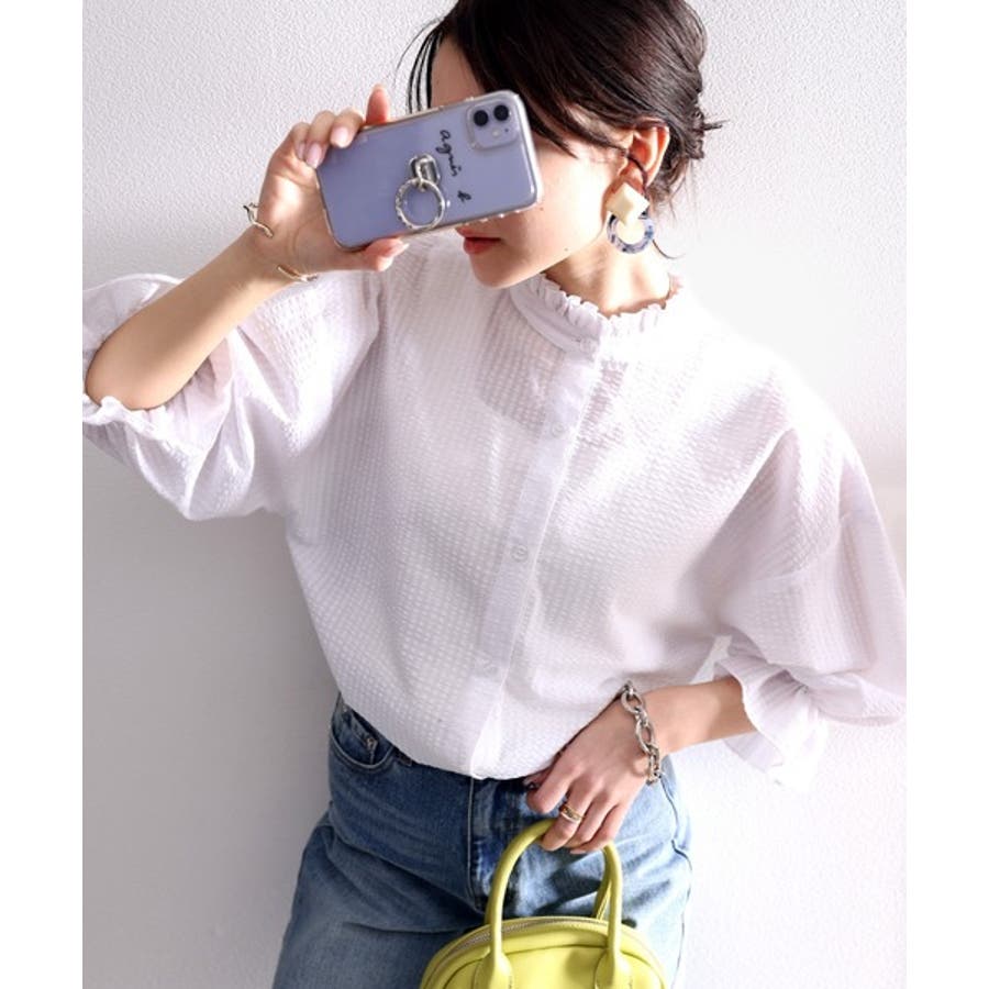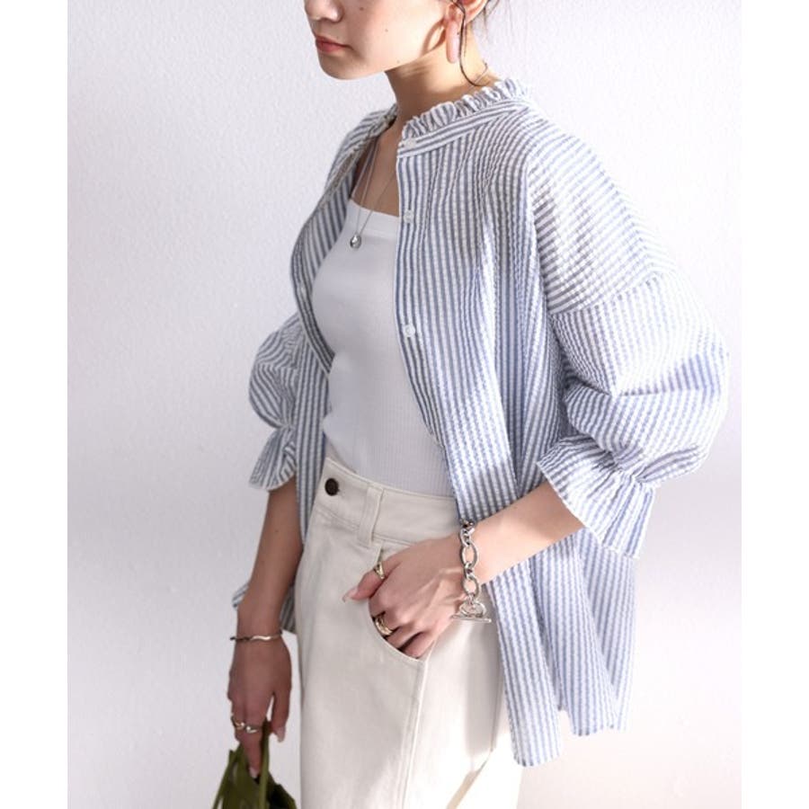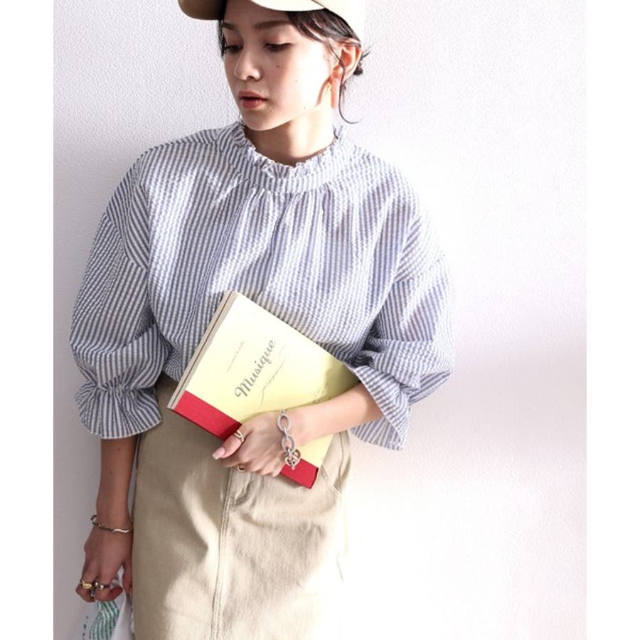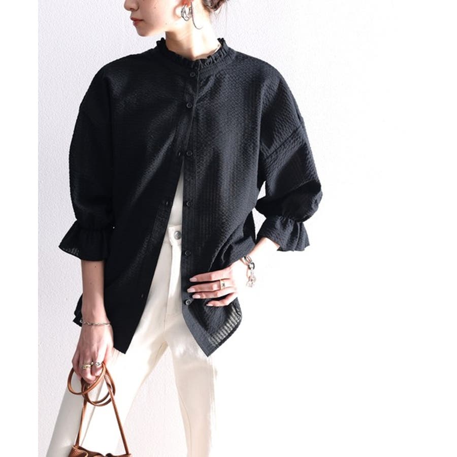 ふんわり軽やか、2wayサッカー素材ブラウス。