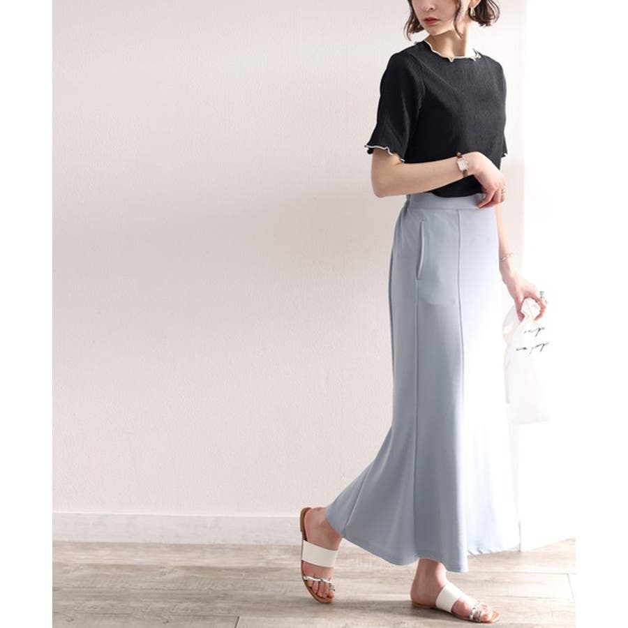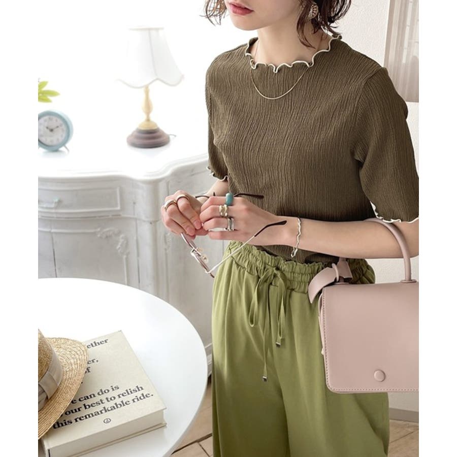 襟ぐり、袖口、裾口の配色メロウ加工がいつもより新鮮!